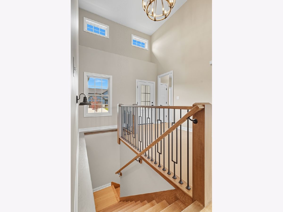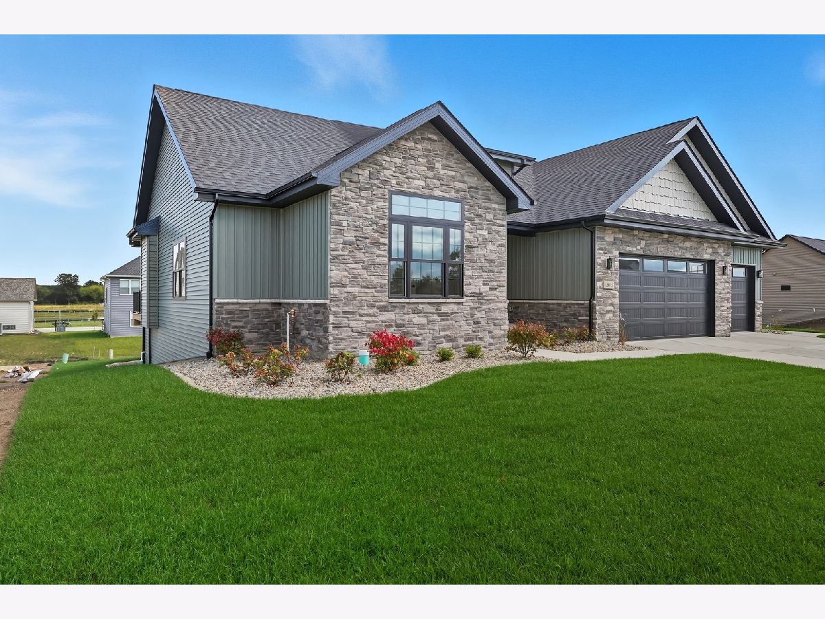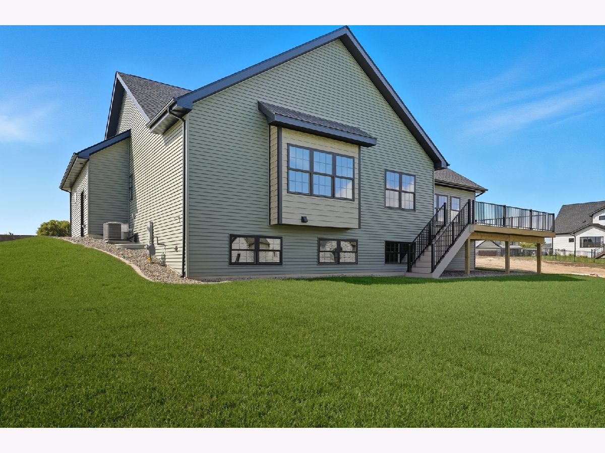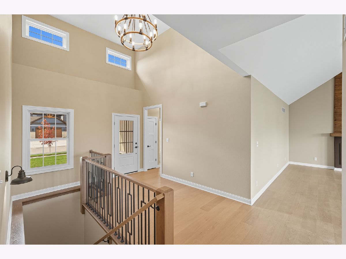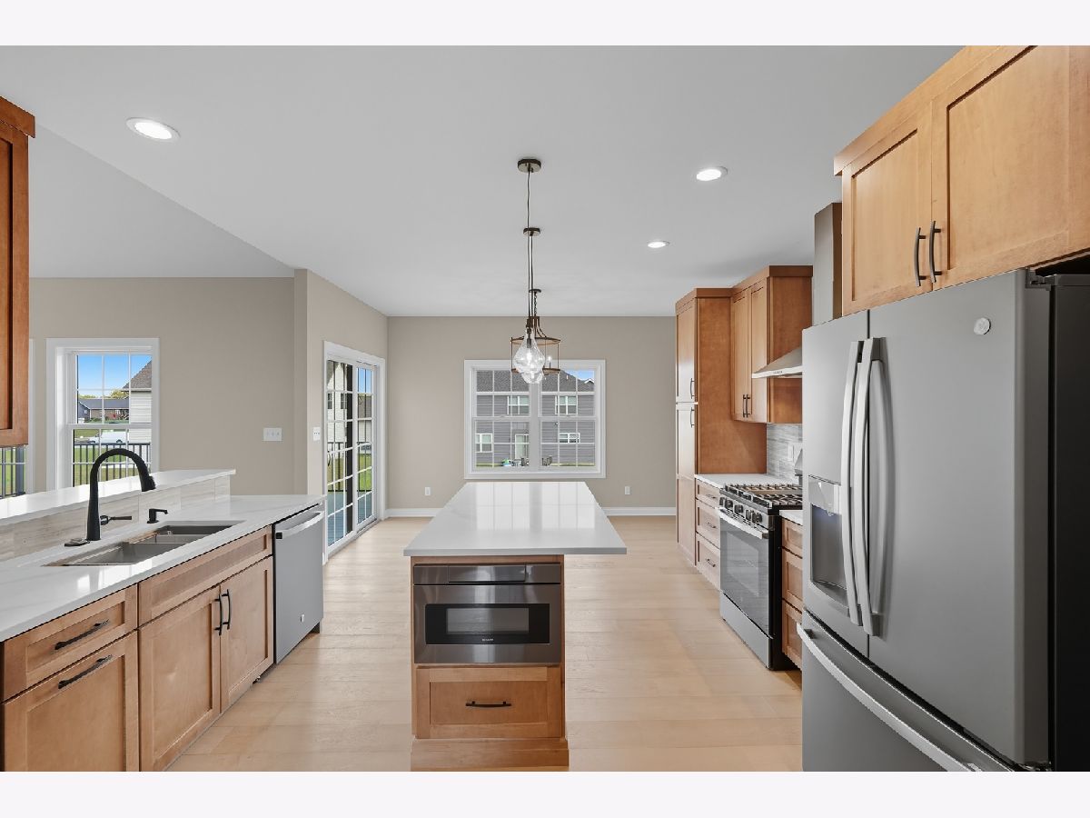 This beautifully crafted new-construction ranch delivers the ease of single-level living paired with elevated design throughout. Offering 1,890 sq. ft. of thoughtfully planned space, the home showcases engineered hardwood floors, a striking two-story foyer with chandelier, and a sun-filled great room with cathedral ceiling and an electric fireplace framed by a wood mantle. Oversized Andersen windows with black exterior trim bring in abundant natural light, creating bright, inviting spaces from room to room. The kitchen is both functional and stylish, featuring quartz countertops, soft-close cabinetry, a GE Slate appliance package, and generous island seating that flows seamlessly into the great room-ideal for entertaining or everyday living. Added conveniences include under-cabinet lighting, a large workstation sink, and a pantry cabinet with pull-out shelving. The adjacent breakfast area opens through sliding glass doors to an oversized composite deck, extending your living space outdoors. Ceiling fans throughout, solid-core doors, and oak stairs with a custom railing add comfort and quality, while the main-level laundry room with sink enhances day-to-day ease. The primary suite is a true retreat, featuring a tray ceiling, custom window storage bench, walk-in closet, and spa-inspired ensuite bath with dual vanities, a deep soaking tub, and a custom-tiled walk-in shower complete with bench, glass doors, and handheld sprayer. Two additional main-level bedrooms offer flexible use, including vaulted ceilings and a walk-in closet, and are served by a second full bath with custom tilework and a quartz vanity top. The daylight basement offers 9-ft walls, is pre-plumbed for a future bathroom, and provides endless potential for added living space. Outside, enjoy a covered front porch, a fully landscaped yard with irrigation, and a finished, insulated three-car garage pre-piped for a heater. A tankless water heater completes this modern, energy-efficient home. Every detail has been carefully selected to blend comfort, craftsmanship, and timeless style-creating a home designed to live beautifully from day one.