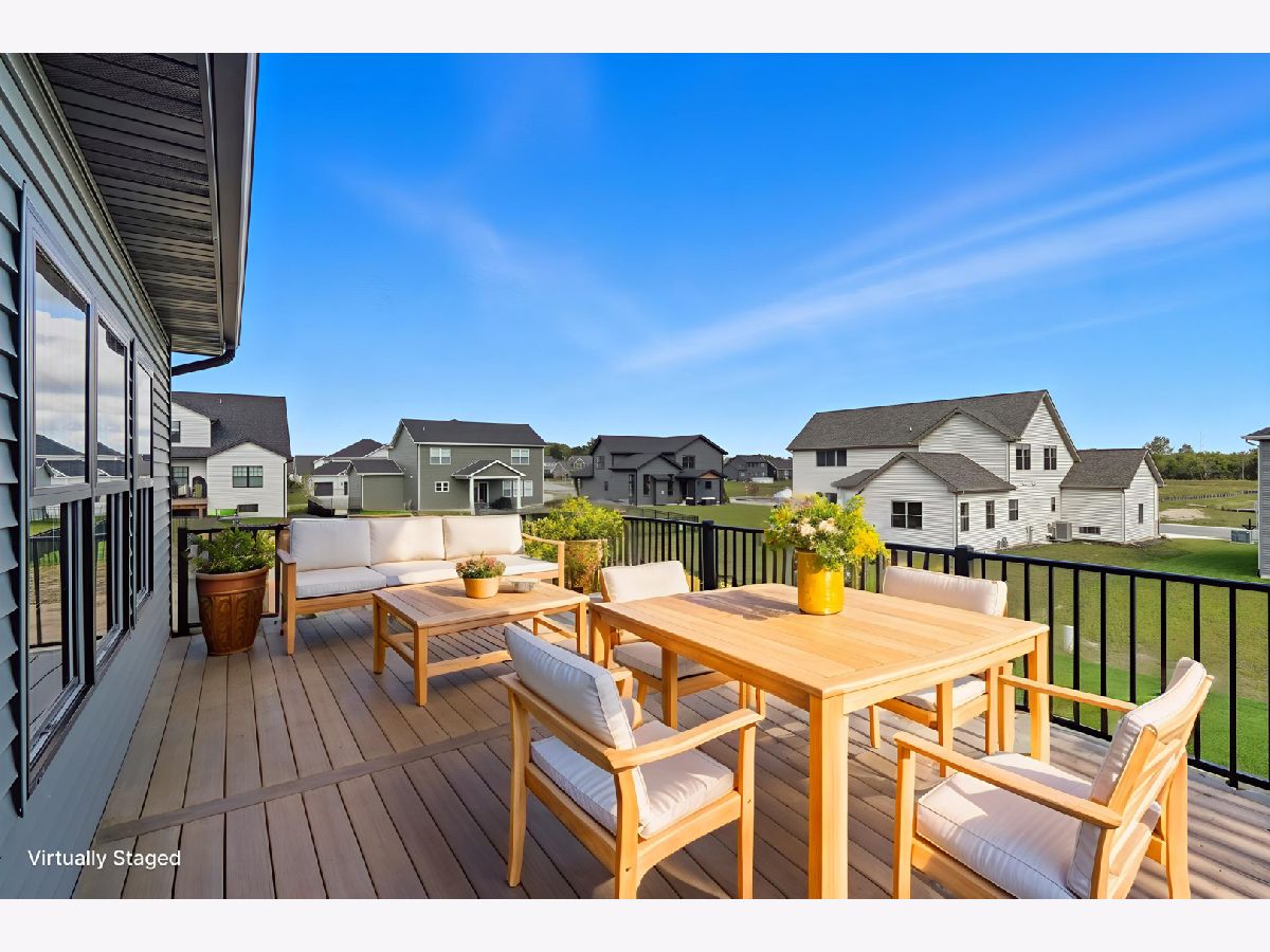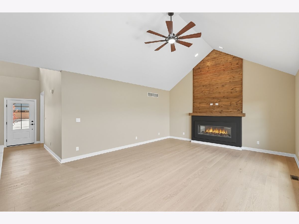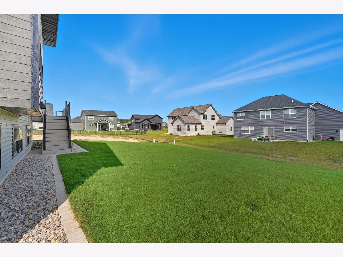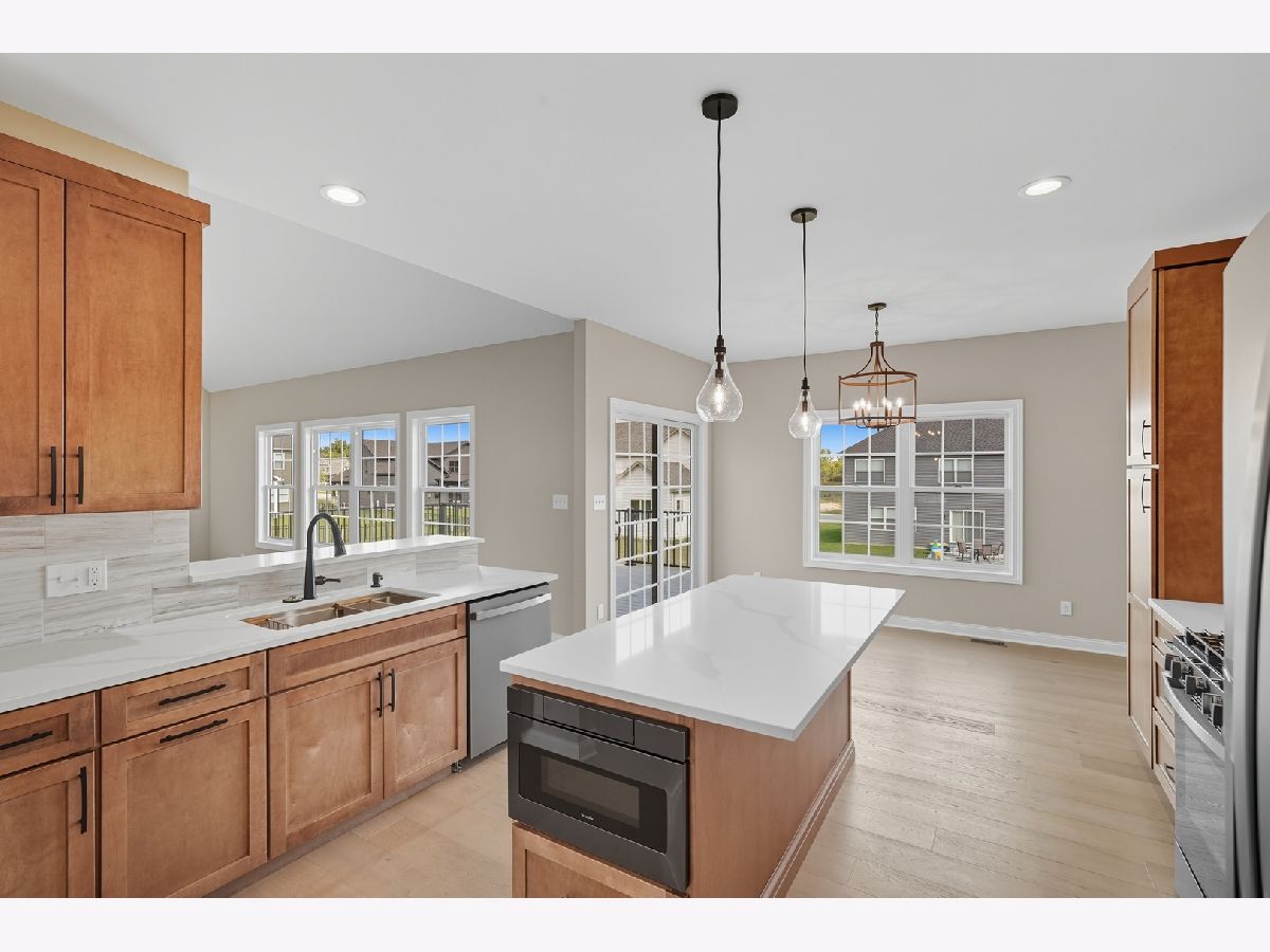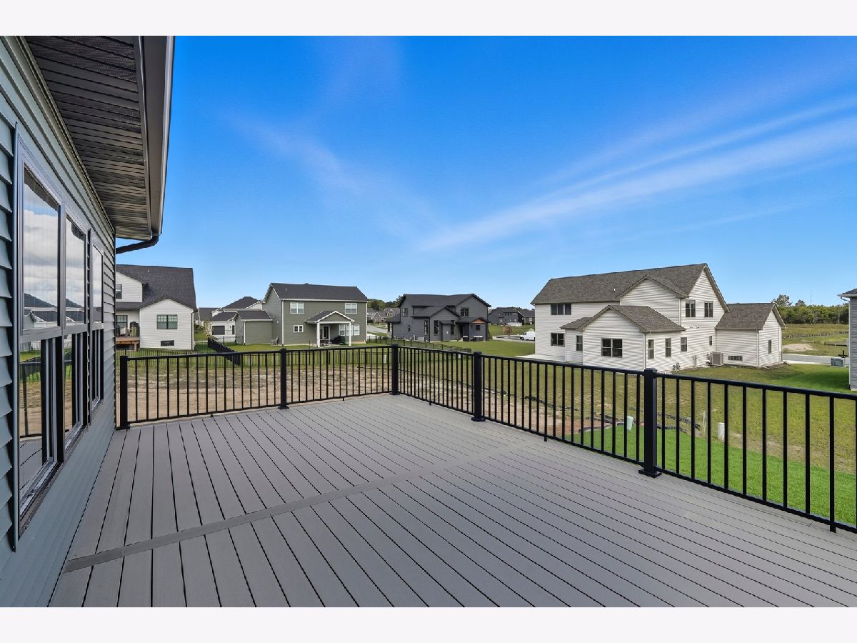 This beautifully crafted new-construction ranch delivers the ease of single-level living paired with elevated design throughout. Offering 1,890 sq. ft. of thoughtfully planned space, the home showcases engineered hardwood floors, a striking two-story foyer with chandelier, and a sun-filled great room with cathedral ceiling and an electric fireplace framed by a wood mantle. Oversized Andersen windows with black exterior trim bring in abundant natural light, creating bright, inviting spaces from room to room. The kitchen is both functional and stylish, featuring quartz countertops, soft-close cabinetry, a GE Slate appliance package, and generous island seating that flows seamlessly into the great room-ideal for entertaining or everyday living. Added conveniences include under-cabinet lighting, a large workstation sink, and a pantry cabinet with pull-out shelving. The adjacent breakfast area opens through sliding glass doors to an oversized composite deck, extending your living space outdoors. Ceiling fans throughout, solid-core doors, and oak stairs with a custom railing add comfort and quality, while the main-level laundry room with sink enhances day-to-day ease. The primary suite is a true retreat, featuring a tray ceiling, custom window storage bench, walk-in closet, and spa-inspired ensuite bath with dual vanities, a deep soaking tub, and a custom-tiled walk-in shower complete with bench, glass doors, and handheld sprayer. Two additional main-level bedrooms offer flexible use, including vaulted ceilings and a walk-in closet, and are served by a second full bath with custom tilework and a quartz vanity top. The daylight basement offers 9-ft walls, is pre-plumbed for a future bathroom, and provides endless potential for added living space. Outside, enjoy a covered front porch, a fully landscaped yard with irrigation, and a finished, insulated three-car garage pre-piped for a heater. A tankless water heater completes this modern, energy-efficient home. Every detail has been carefully selected to blend comfort, craftsmanship, and timeless style-creating a home designed to live beautifully from day one.