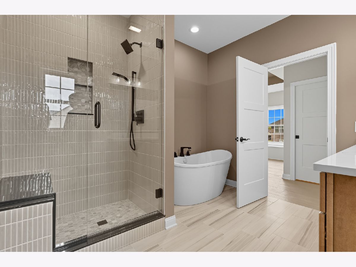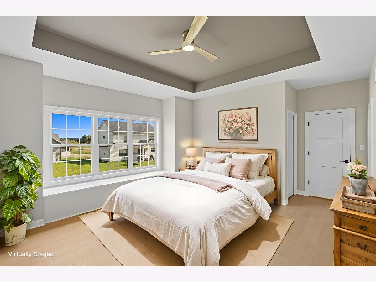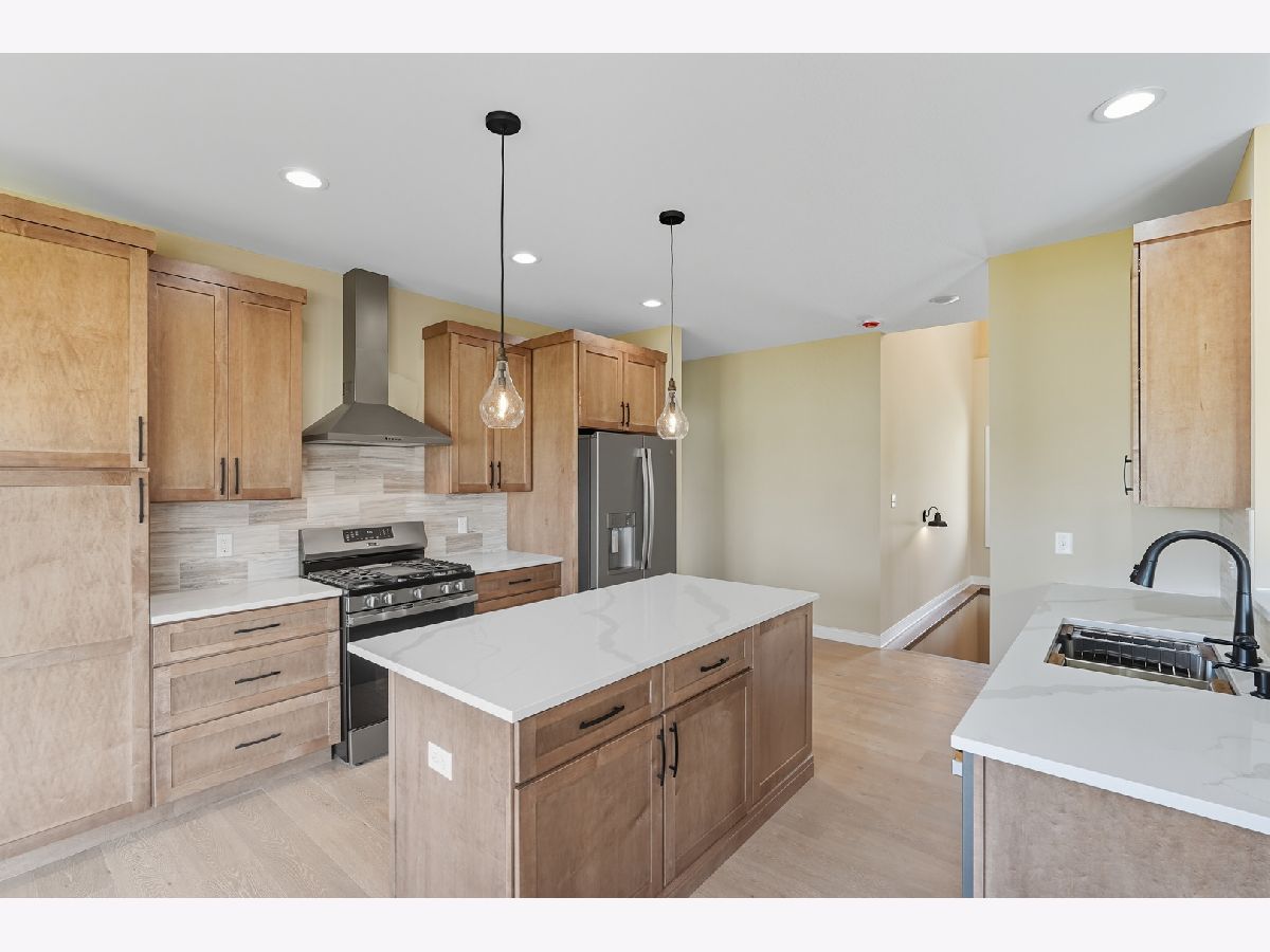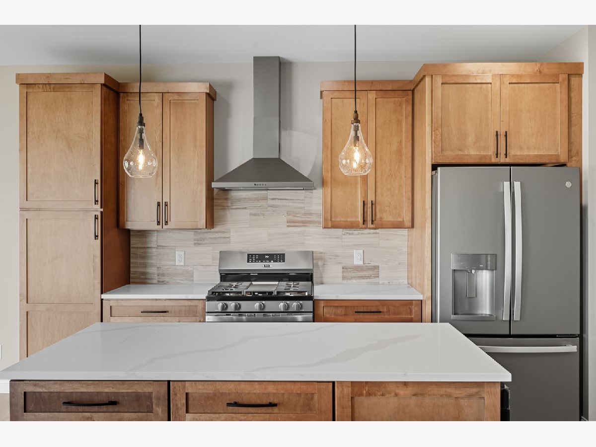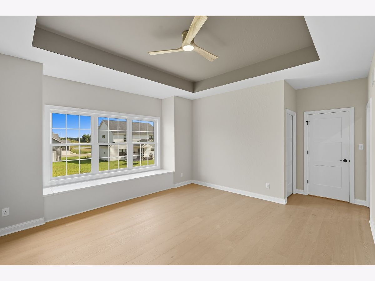 This beautifully crafted new-construction ranch delivers the ease of single-level living paired with elevated design throughout. Offering 1,890 sq. ft. of thoughtfully planned space, the home showcases engineered hardwood floors, a striking two-story foyer with chandelier, and a sun-filled great room with cathedral ceiling and an electric fireplace framed by a wood mantle. Oversized Andersen windows with black exterior trim bring in abundant natural light, creating bright, inviting spaces from room to room. The kitchen is both functional and stylish, featuring quartz countertops, soft-close cabinetry, a GE Slate appliance package, and generous island seating that flows seamlessly into the great room-ideal for entertaining or everyday living. Added conveniences include under-cabinet lighting, a large workstation sink, and a pantry cabinet with pull-out shelving. The adjacent breakfast area opens through sliding glass doors to an oversized composite deck, extending your living space outdoors. Ceiling fans throughout, solid-core doors, and oak stairs with a custom railing add comfort and quality, while the main-level laundry room with sink enhances day-to-day ease. The primary suite is a true retreat, featuring a tray ceiling, custom window storage bench, walk-in closet, and spa-inspired ensuite bath with dual vanities, a deep soaking tub, and a custom-tiled walk-in shower complete with bench, glass doors, and handheld sprayer. Two additional main-level bedrooms offer flexible use, including vaulted ceilings and a walk-in closet, and are served by a second full bath with custom tilework and a quartz vanity top. The daylight basement offers 9-ft walls, is pre-plumbed for a future bathroom, and provides endless potential for added living space. Outside, enjoy a covered front porch, a fully landscaped yard with irrigation, and a finished, insulated three-car garage pre-piped for a heater. A tankless water heater completes this modern, energy-efficient home. Every detail has been carefully selected to blend comfort, craftsmanship, and timeless style-creating a home designed to live beautifully from day one.