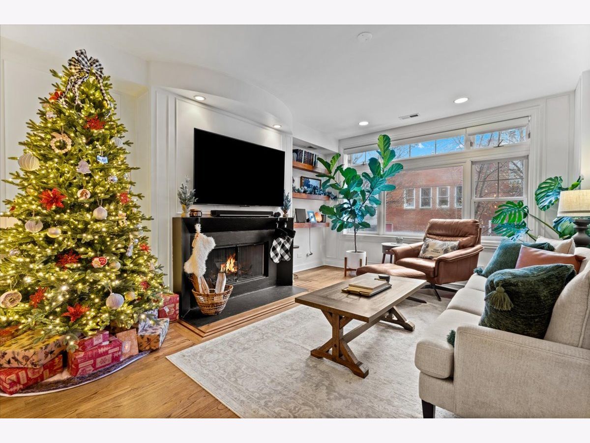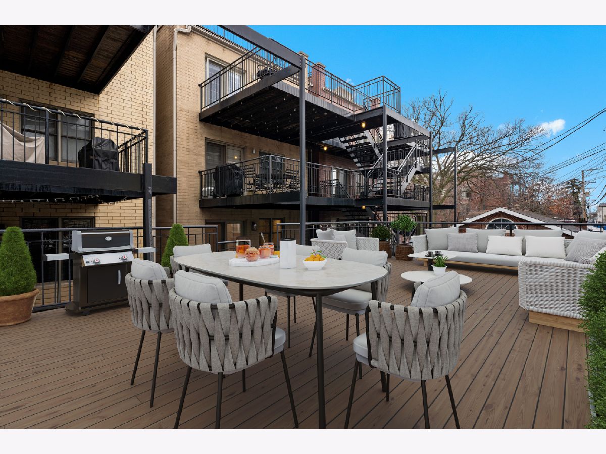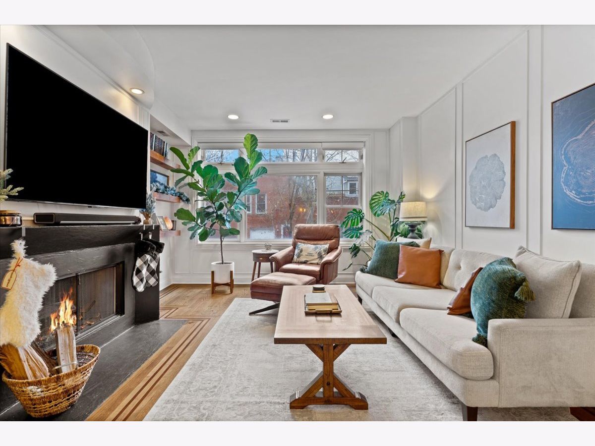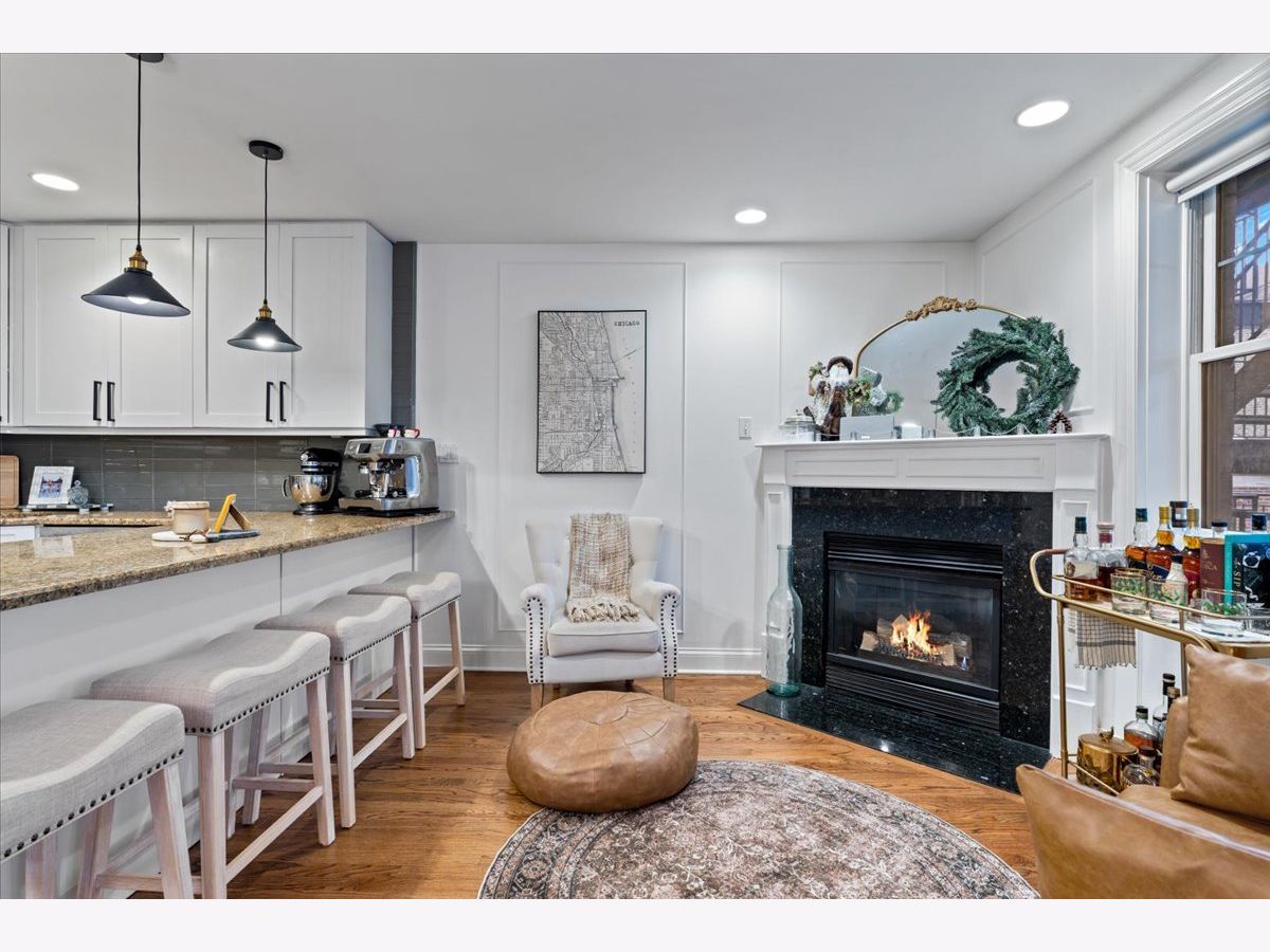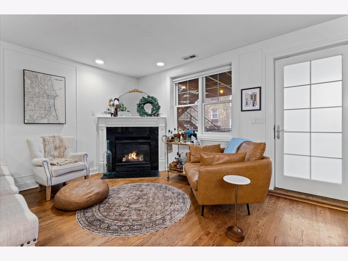 OFFERS RECEIVED. HIGHEST AND BEST DUE MONDAY 1/19 BY 8AM. Welcome home to this rare elevated first floor simplex two-bedroom, two-bath residence in the heart of Lakeview. Refinished oak hardwood floors flow throughout, complemented by a warm wood-burning fireplace in the main living area. The beautifully appointed kitchen features 42" cabinetry, an oversized breakfast bar, designer backsplash, and a full stainless steel appliance package, opening seamlessly to an additional living and dining space with a second fireplace. The primary suite offers a spa-inspired ensuite bathroom with marble tile, dual vanity, whirlpool tub, and a separate glass-enclosed shower. A generously sized second bedroom includes a custom Murphy bed, ideal for flexible living. Both bathrooms have been fully renovated, while the living areas and hallways are enhanced by elegant wainscoting and updated designer light fixtures. Enjoy outdoor living on the private rear deck, along with access to an expansive common garage roof deck. All major mechanicals were replaced in 2021, including furnace, A/C, water heater, and washer/dryer. One outdoor parking space included. Located in a solid brick masonry building within the coveted Burley Elementary district, just steps from Southport Corridor dining, shopping, Whole Foods, and the Brown Line.