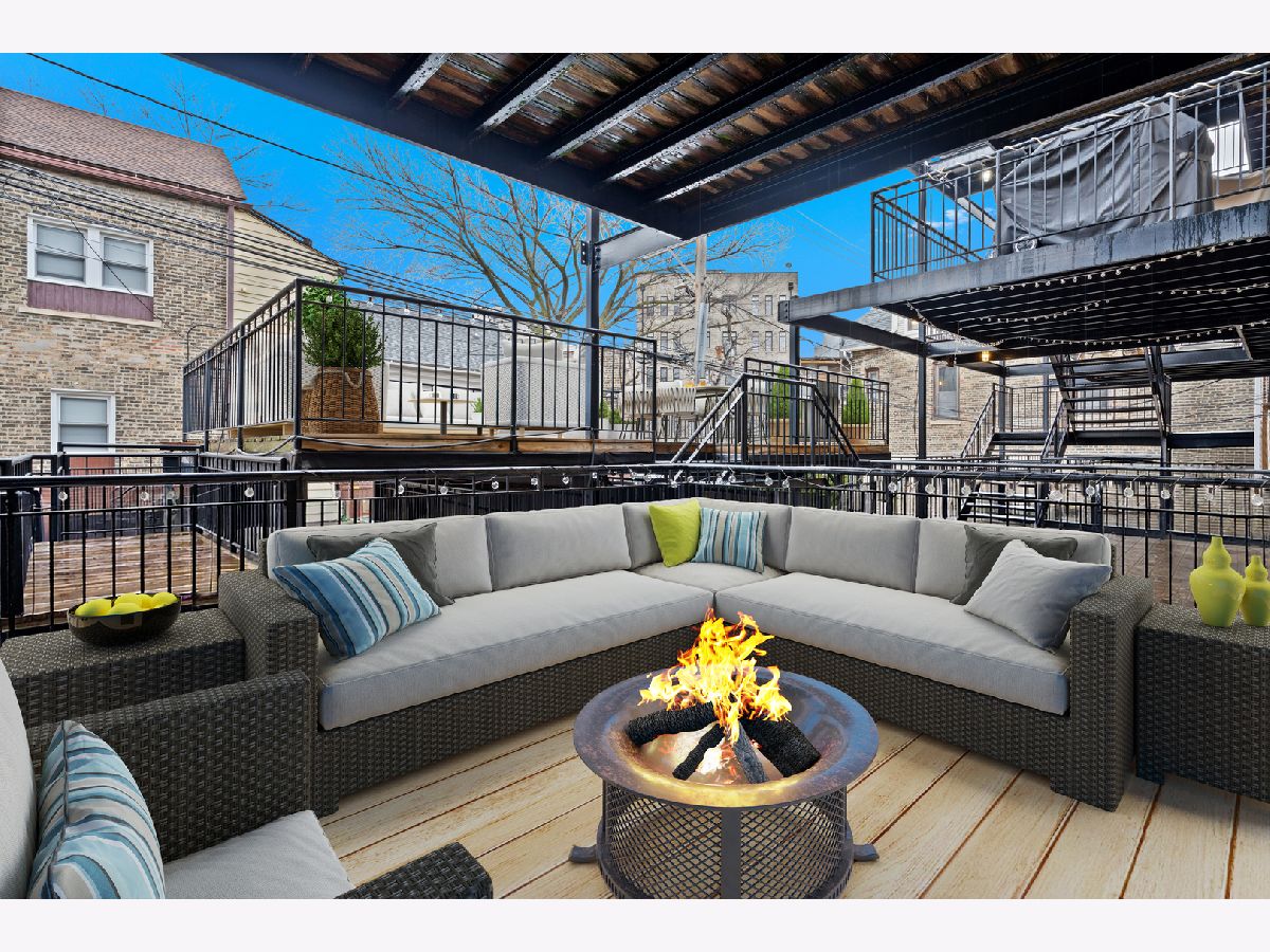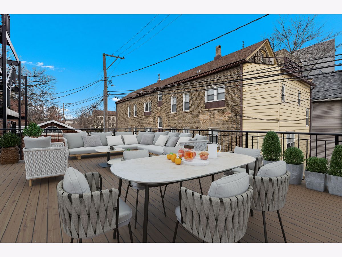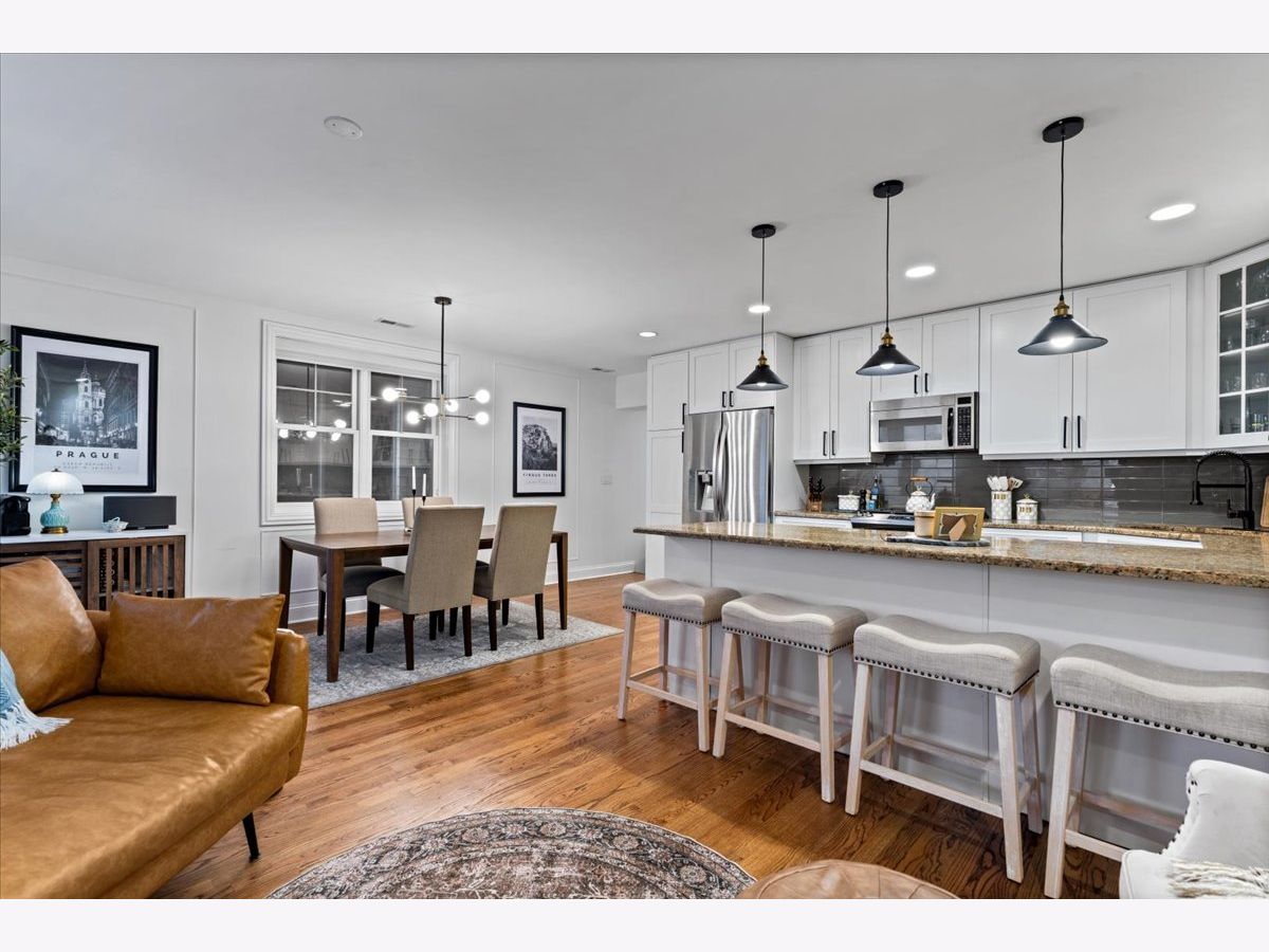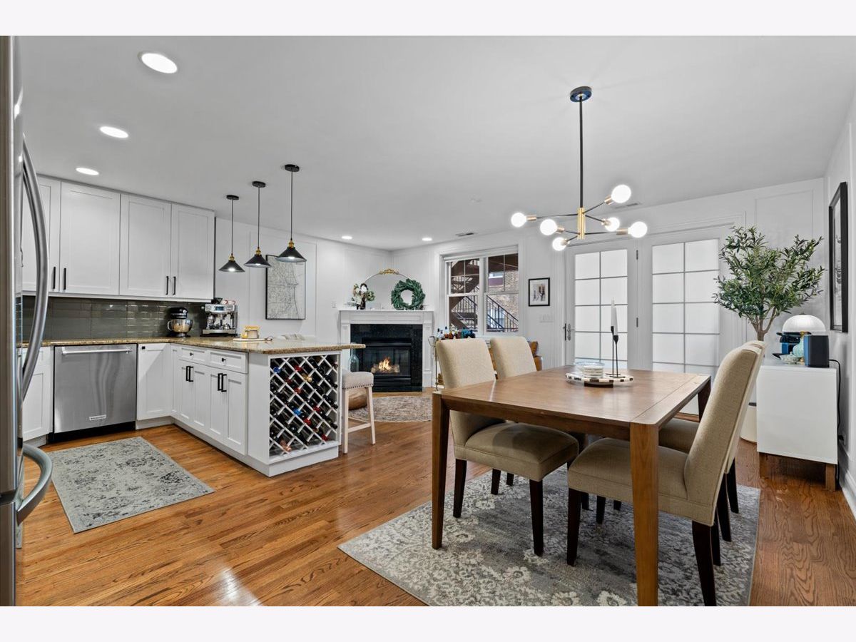 OFFERS RECEIVED. HIGHEST AND BEST DUE MONDAY 1/19 BY 8AM. Welcome home to this rare elevated first floor simplex two-bedroom, two-bath residence in the heart of Lakeview. Refinished oak hardwood floors flow throughout, complemented by a warm wood-burning fireplace in the main living area. The beautifully appointed kitchen features 42" cabinetry, an oversized breakfast bar, designer backsplash, and a full stainless steel appliance package, opening seamlessly to an additional living and dining space with a second fireplace. The primary suite offers a spa-inspired ensuite bathroom with marble tile, dual vanity, whirlpool tub, and a separate glass-enclosed shower. A generously sized second bedroom includes a custom Murphy bed, ideal for flexible living. Both bathrooms have been fully renovated, while the living areas and hallways are enhanced by elegant wainscoting and updated designer light fixtures. Enjoy outdoor living on the private rear deck, along with access to an expansive common garage roof deck. All major mechanicals were replaced in 2021, including furnace, A/C, water heater, and washer/dryer. One outdoor parking space included. Located in a solid brick masonry building within the coveted Burley Elementary district, just steps from Southport Corridor dining, shopping, Whole Foods, and the Brown Line.