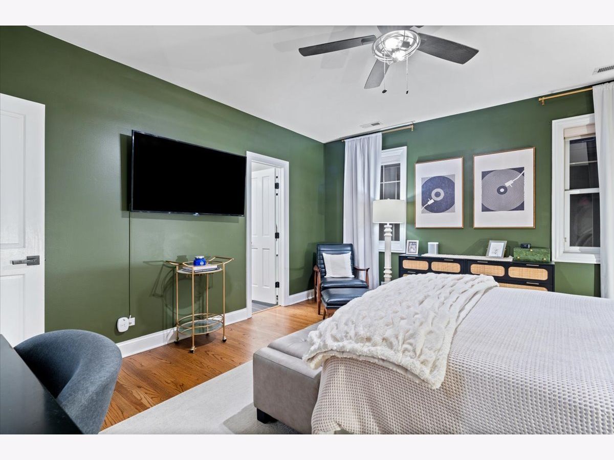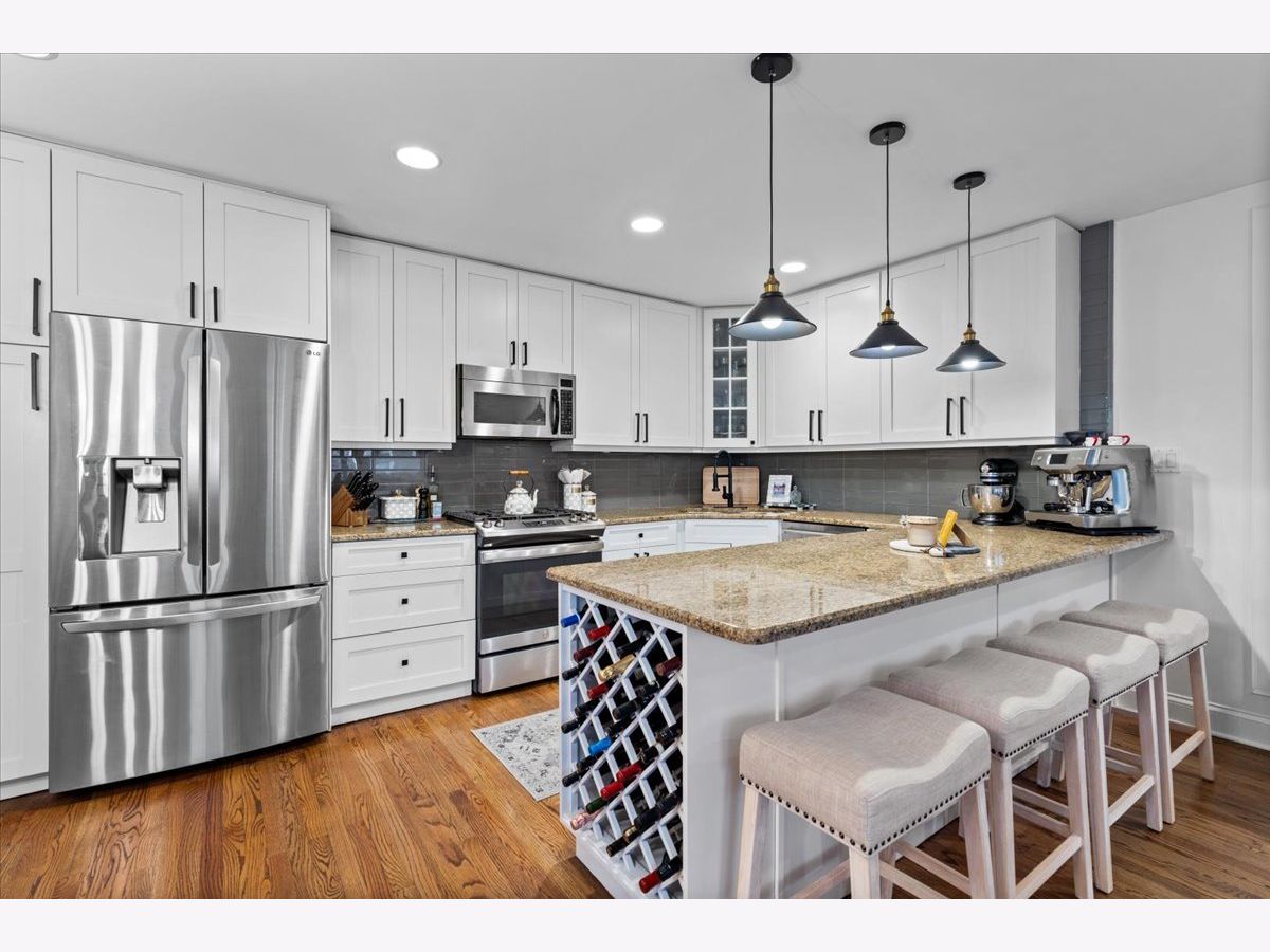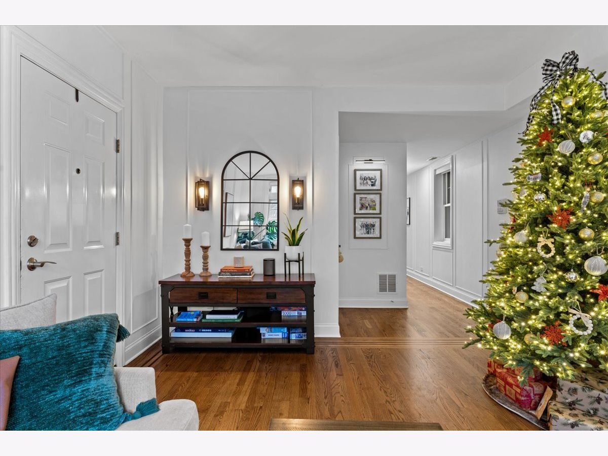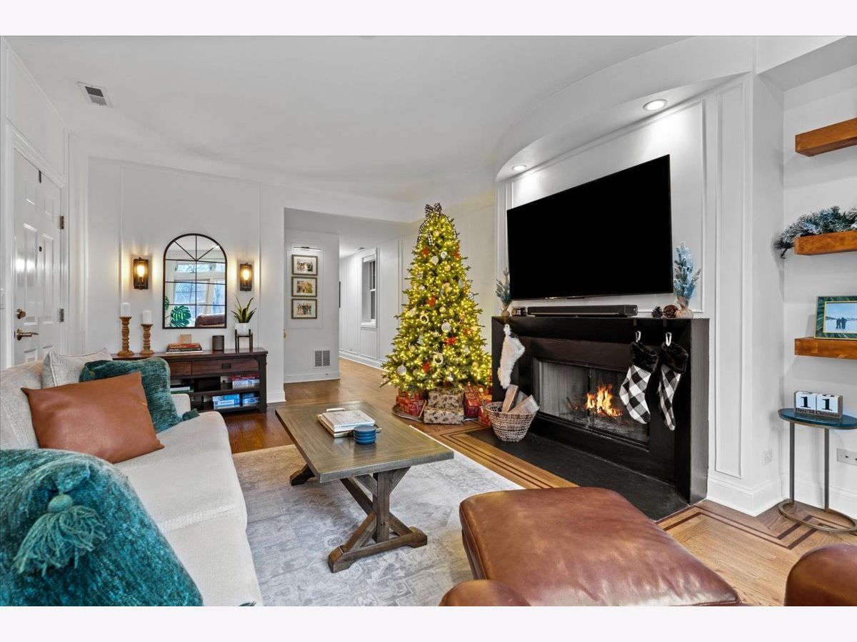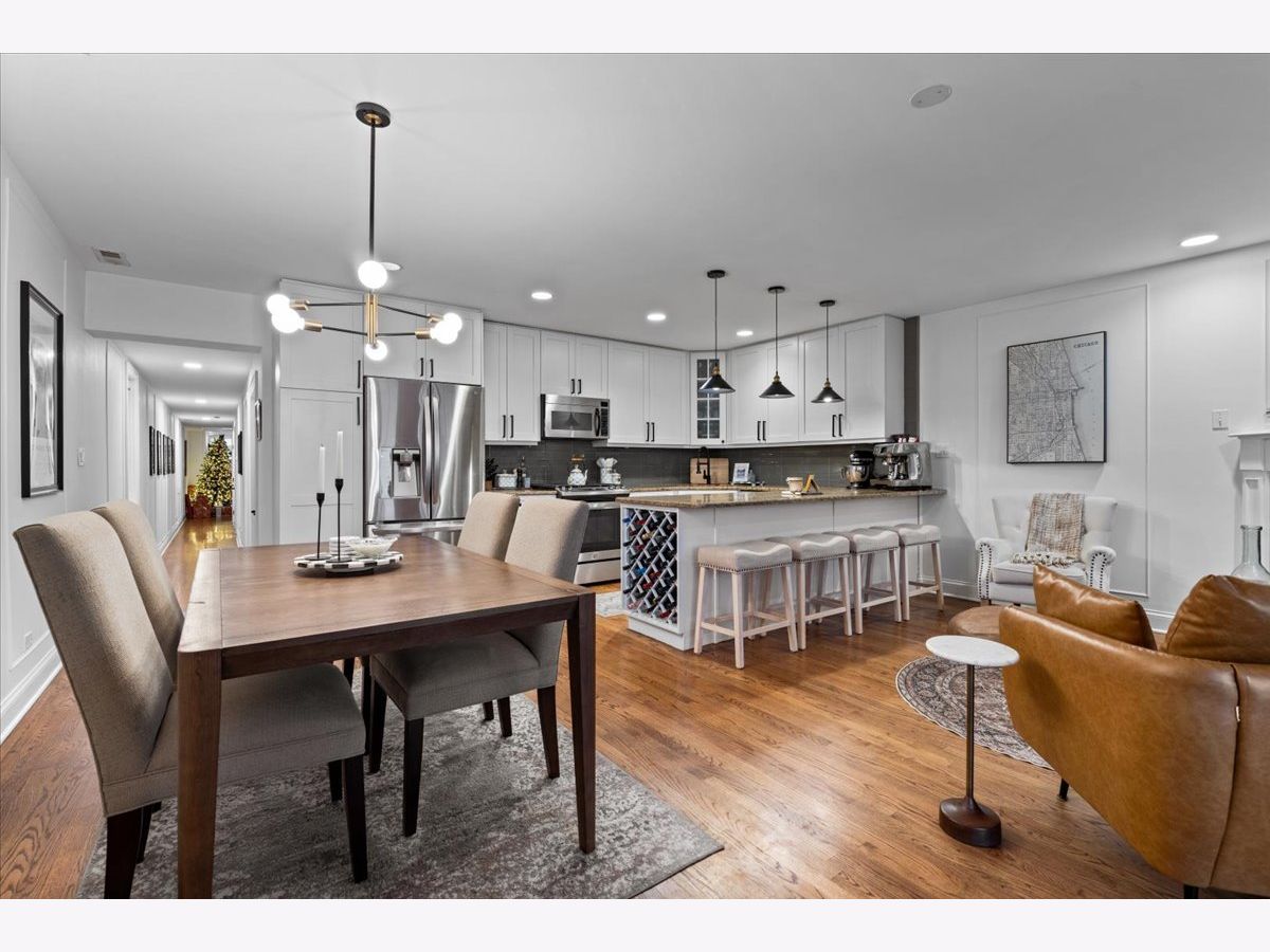 OFFERS RECEIVED. HIGHEST AND BEST DUE MONDAY 1/19 BY 8AM. Welcome home to this rare elevated first floor simplex two-bedroom, two-bath residence in the heart of Lakeview. Refinished oak hardwood floors flow throughout, complemented by a warm wood-burning fireplace in the main living area. The beautifully appointed kitchen features 42" cabinetry, an oversized breakfast bar, designer backsplash, and a full stainless steel appliance package, opening seamlessly to an additional living and dining space with a second fireplace. The primary suite offers a spa-inspired ensuite bathroom with marble tile, dual vanity, whirlpool tub, and a separate glass-enclosed shower. A generously sized second bedroom includes a custom Murphy bed, ideal for flexible living. Both bathrooms have been fully renovated, while the living areas and hallways are enhanced by elegant wainscoting and updated designer light fixtures. Enjoy outdoor living on the private rear deck, along with access to an expansive common garage roof deck. All major mechanicals were replaced in 2021, including furnace, A/C, water heater, and washer/dryer. One outdoor parking space included. Located in a solid brick masonry building within the coveted Burley Elementary district, just steps from Southport Corridor dining, shopping, Whole Foods, and the Brown Line.