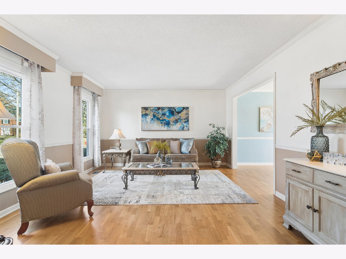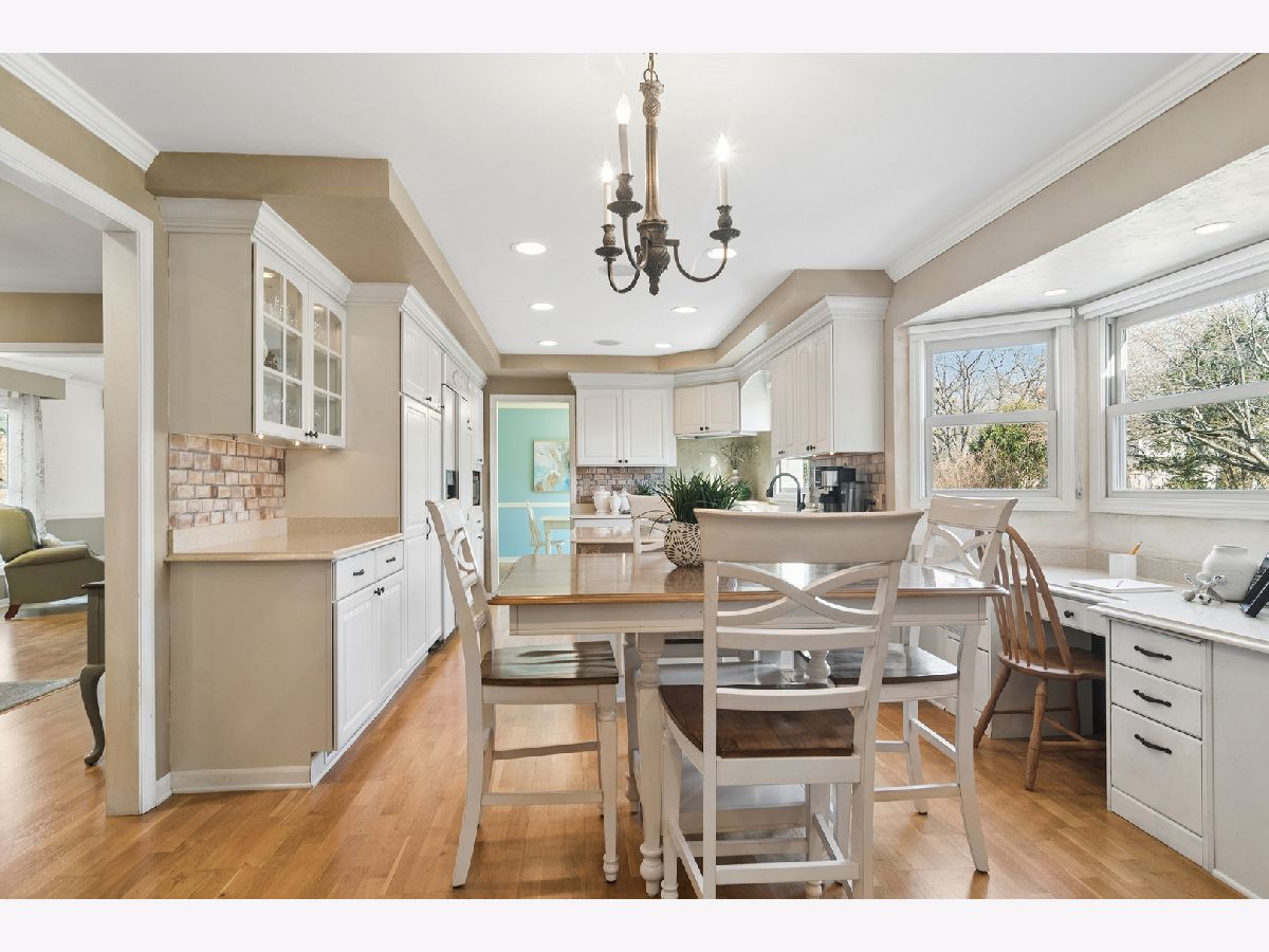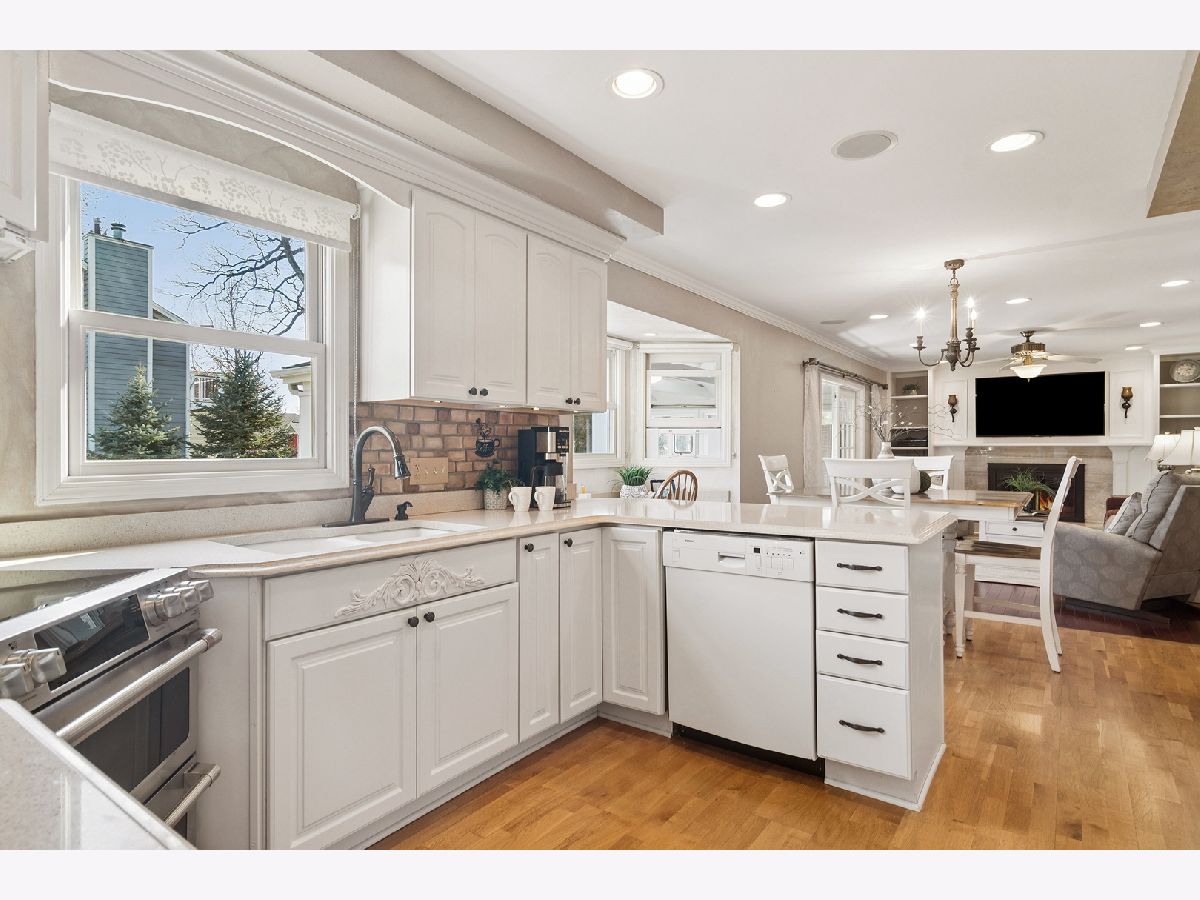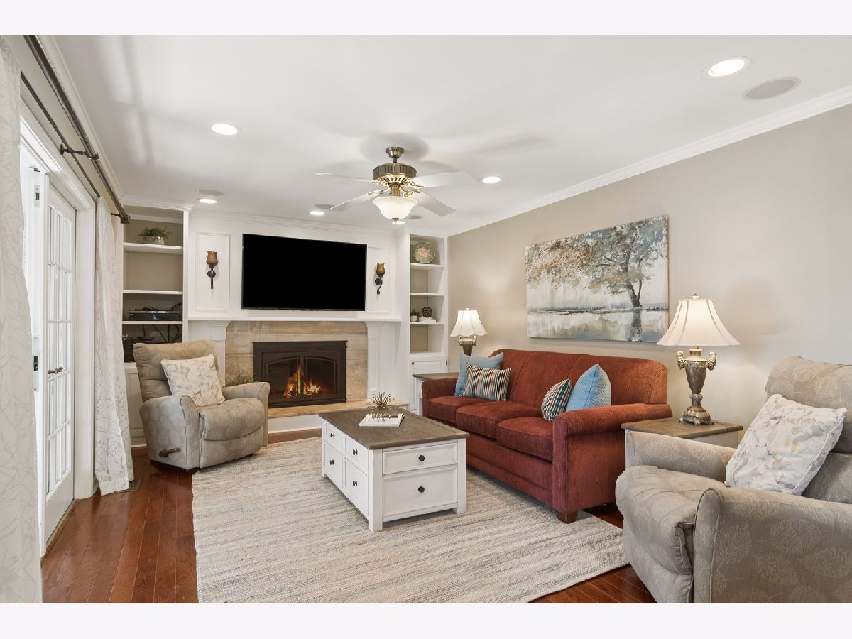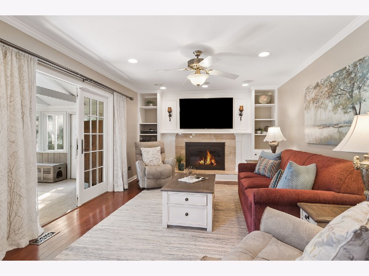 Beautifully updated two-story home ideally located in the heart of Lake Zurich. Just 1/2 mile from downtown Lake Zurich and 1/2 mile from the lake, offering easy access to parks, restaurants, shopping, and more. Situated on a desirable corner lot, this freshly painted home features neutral tones and hardwood floors throughout the main level. The spacious kitchen is appointed with custom cabinetry, an induction cooktop, and dual ovens-perfect for everyday living and entertaining. The inviting family room showcases a cozy wood-burning fireplace with custom built-in shelving, while separate living and dining rooms provide additional gathering space. Double French doors open to a huge, bright, sunroom with tile flooring, creating the perfect spot to relax or entertain year-round. Upstairs you'll find four generously sized bedrooms including the primary suite with its own private bath. The lower level offers a large, finished recreation area, dedicated storage room, a full bath , and a workshop space. Enjoy the expansive backyard with beautiful landscaping and established perennials-ideal for outdoor entertaining or peaceful evenings at home. This well-maintained property combines space, updates, and a prime location in one exceptional offering.