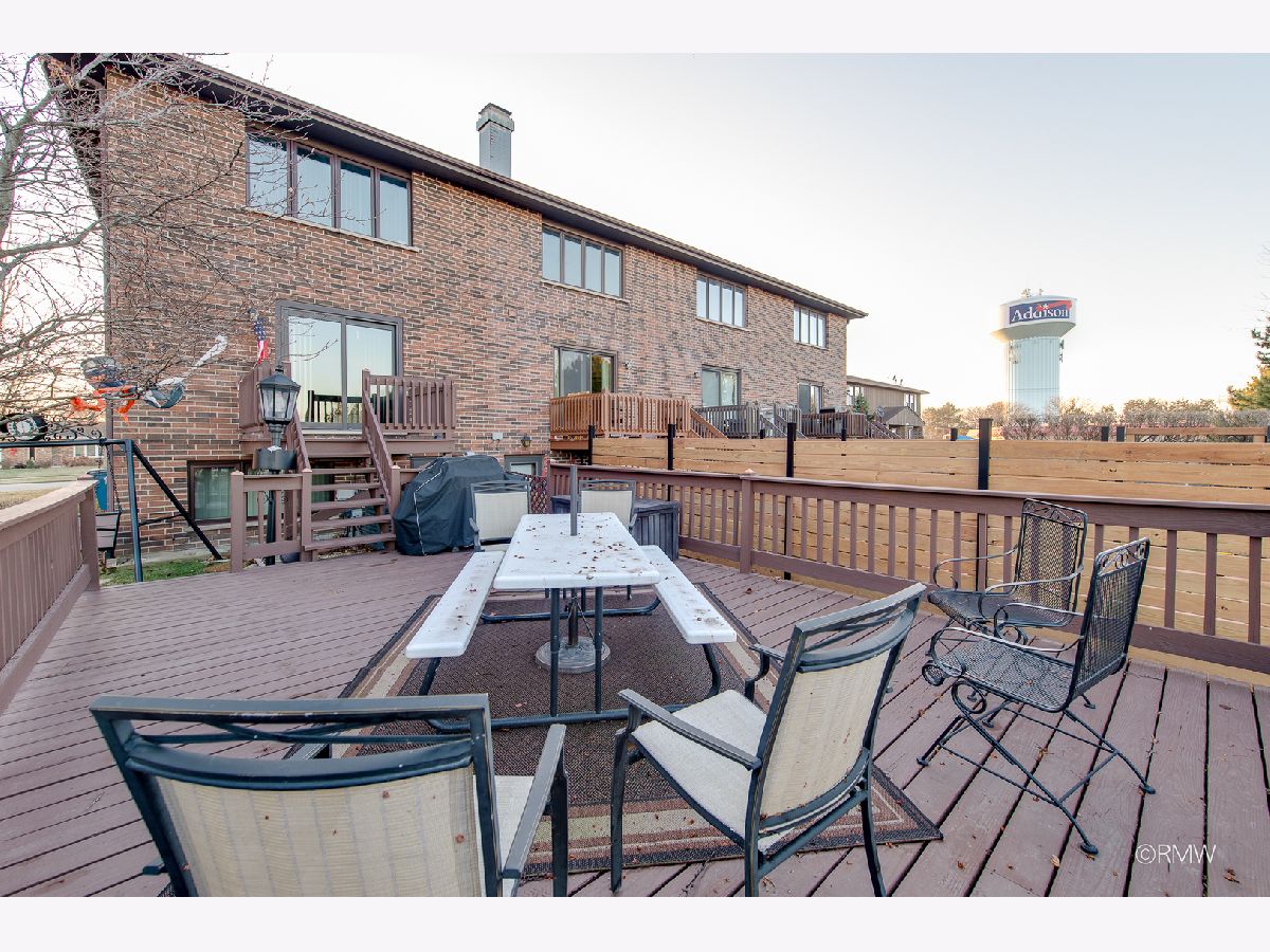 Seldom available town home with approximately 2400 sq. ft of living space! This unit has 3 levels boasting 2 large bedrooms, 2.5 baths and is an end unit, finished walk out basement, is ready for new owners. This spacious brick home offers kitchen overlooking large great room and a separate dining area. Half bath on first floor. Sliding glass doors to very nice wood deck. On 2nd level there are two very large bedrooms with shared bathroom, and many closets. Lower lever has a spacious family room with full bath, plenty of storage space and utility room. Walk out basement to back yard area. Newer central air, furnace and windows.1 car attached garage. New storm door in basement. Great location! Walking distance to theater, centennial park and many fine restaurants! Close to major expressways! One of the best locations in town to get to many amenities that Addison has to offer!