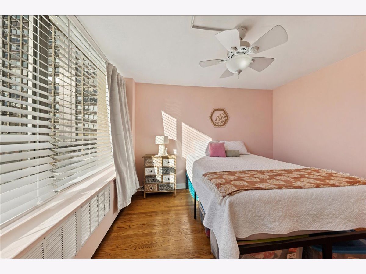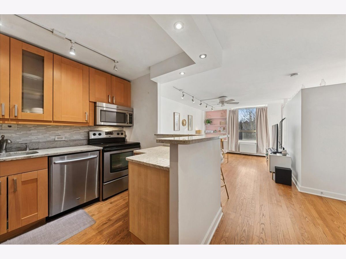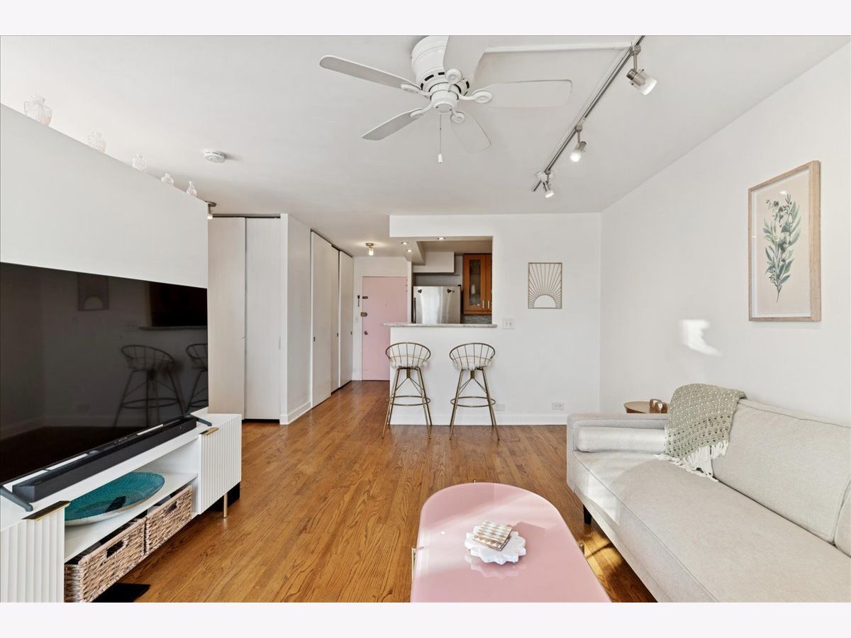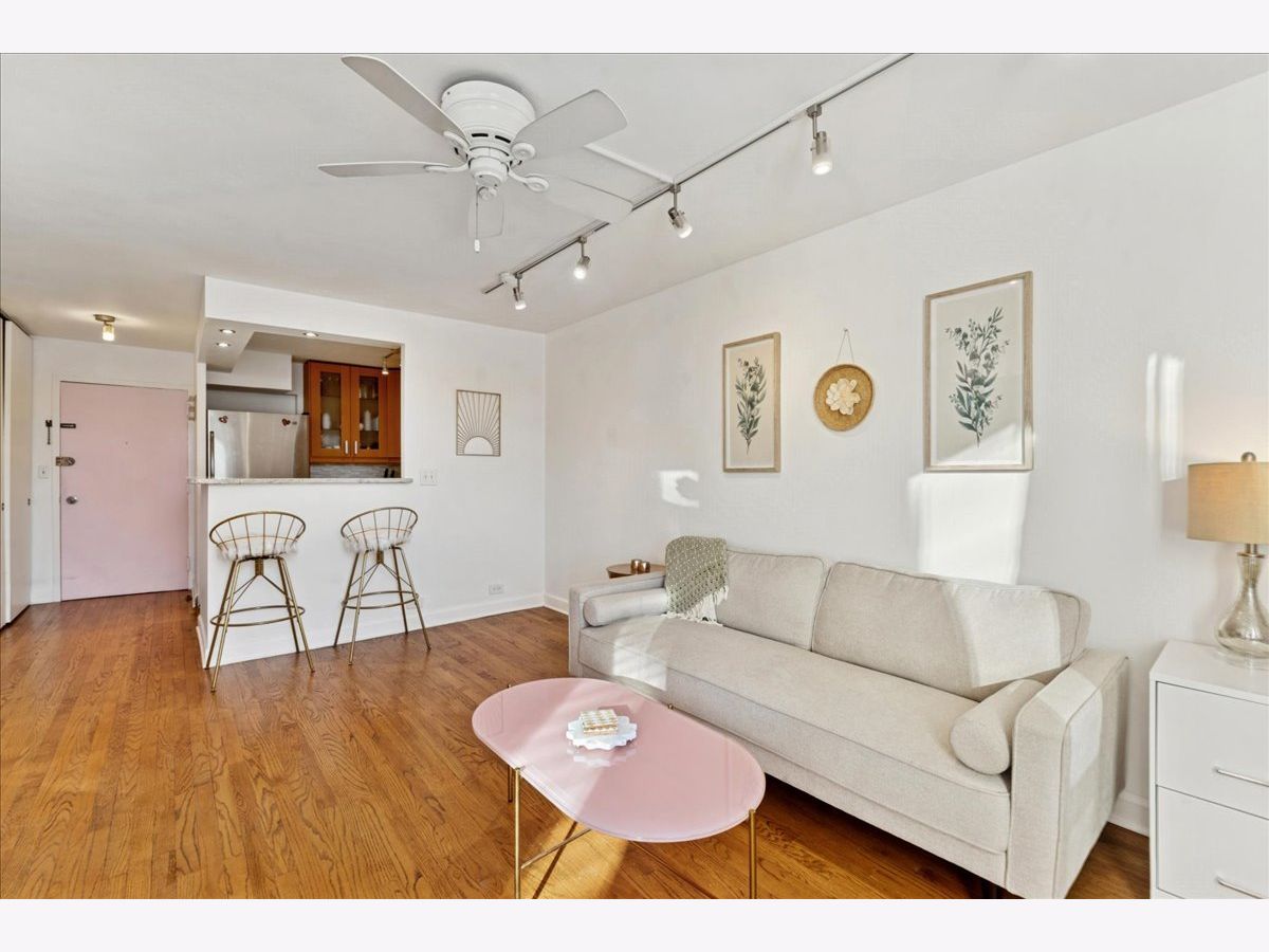 Welcome to one of Chicago's most sought-after locations, where the Gold Coast meets Old Town. This spacious junior one-bedroom is ideally situated in desirable Sandburg Village and offers west-facing views of the beautifully landscaped courtyard and stunning sunsets! Freshly painted in 2025, this move-in-ready home features hardwood floors throughout, a generously sized bedroom with faux wood blinds and blackout window treatments, and a newly updated full bath (2025). The open kitchen is well-appointed with 42" maple cabinetry, stainless steel appliances, a breakfast bar, and generous storage-perfect for both everyday living and entertaining. The unit includes a dedicated additional storage space and access to an array of exceptional amenities, including a rooftop deck, hospitality rooms, a package receiving room, Tide Laundry Service, 24/7 door staff and security, bike room, tennis courts, and two swimming pools. Monthly assessments cover heat, water, cable, and internet. Heated indoor parking is available (subject to wait list) for an additional monthly fee. Pet friendly and investor friendly, this prime location is just steps from public transportation, parks, great restaurants, shopping (Jewel Osco is just two blocks away), Lincoln Park Zoo, and North Avenue Beach. Enjoy quick access to the lakefront with miles of biking and running paths. - Here's your opportunity to live in an unbeatable location-move right in and enjoy the best of city living. Being sold AS IS & $500 Credit at Closing!