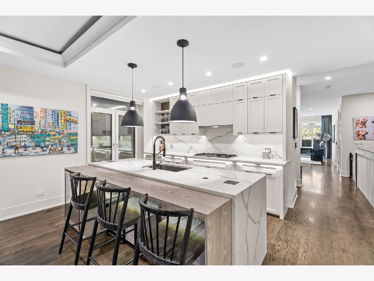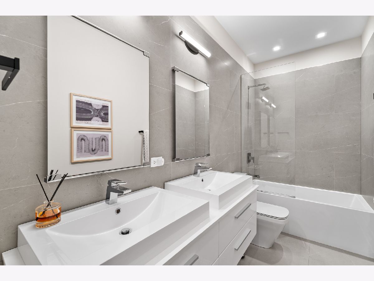 Introducing The Walton, an exceptional new construction residence in the heart of Noble Square/East Village, crafted by award-winning Noah Properties in collaboration with Axios Architects. This extra-wide, luxury duplex delivers the feel of single-family home living with unmatched design, craftsmanship, and outdoor space, all without the single-family price tag. Step inside to a sun-filled, expansive open-concept layout highlighted by floor-to-ceiling windows, designer lighting, and curated finishes throughout. The chef-inspired kitchen boasts custom cabinetry, quartz countertops, a premium appliance package, ice machine, microwave, and a spacious island perfect for entertaining and everyday living. Flow seamlessly from the kitchen and living area to your front and rear covered balconies, ideal for indoor/outdoor enjoyment year-round. The front deck is fully turfed for low-maintenance outdoor living. Wall covering accents enhance the living room, kitchen, powder room, stairway, master bedroom, and master bathroom, adding depth and sophistication. Custom stair runner, living and dining room drapery, and a master bedroom chandelier elevate the interiors with refined, designer-level details. The luxurious primary suite offers two walk-in closets and a spa-caliber bath with dual vanity, steam shower, and standalone soaking tub. Additional bedrooms are generously sized, providing flexible space for guests, an office, or fitness. Lower level features Radiant-heated floors with expansive family room, and thoughtful storage throughout. Mechanical upgrades include an upgraded 1HP sump pump motor, ensuring reliability. Enjoy unparalleled outdoor living with a massive garage rooftop deck, in addition to both balconies, perfect for hosting, relaxing, and taking in city views. One garage parking space included. Two fireplaces, wide-plank flooring, and meticulous attention to every detail make this home truly stand out. All this in an unbeatable location, walk to local dining, boutique shopping, nightlife, parks, and the Blue Line, with quick access to the expressway for easy commuting. A rare opportunity to own a residence that offers the space and presence of a single-family home, without the single-family cost. Simply extraordinary.