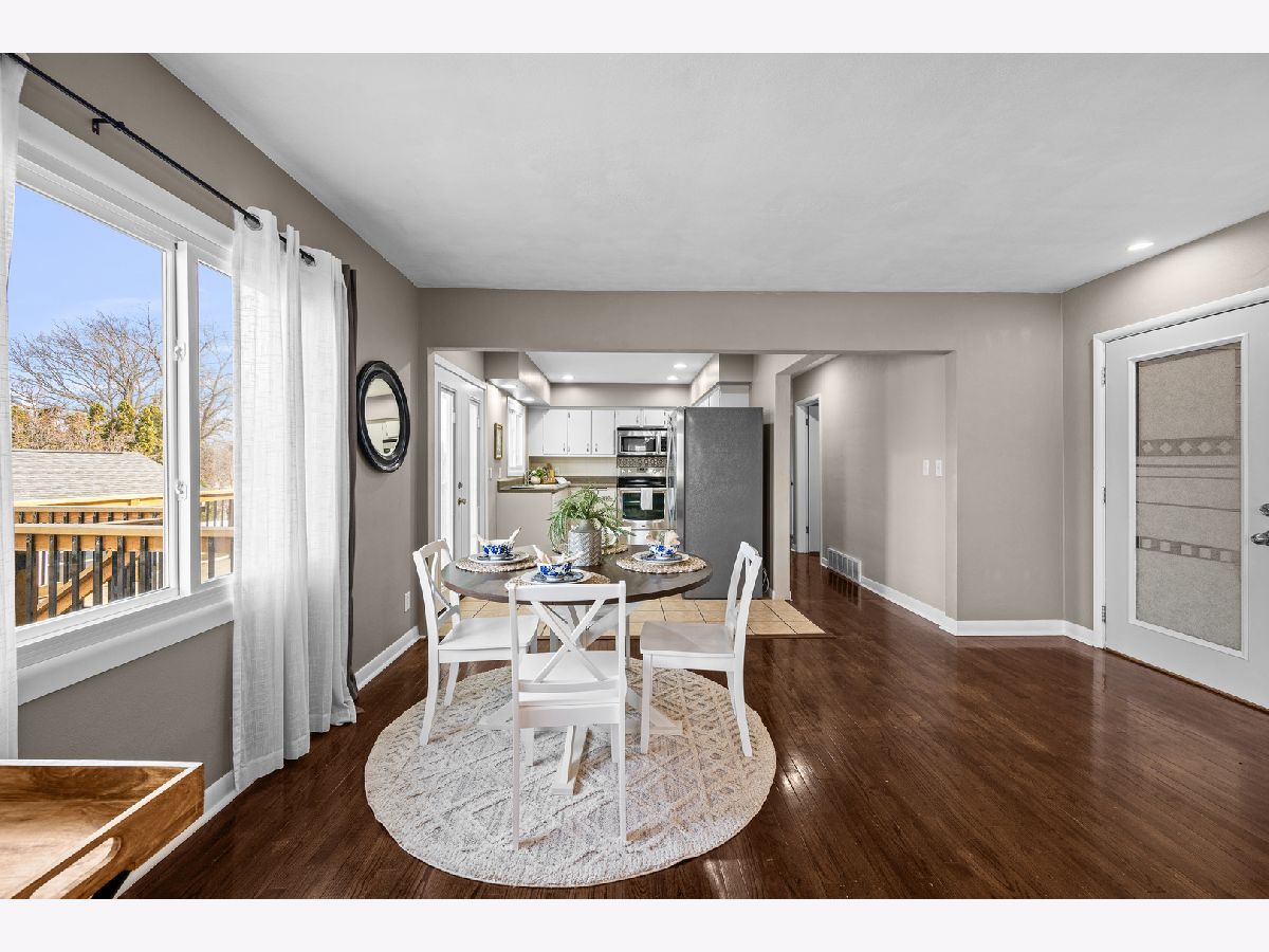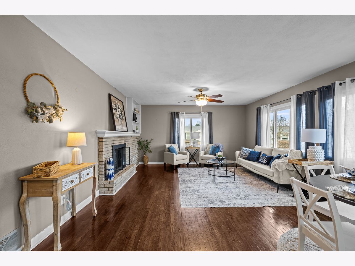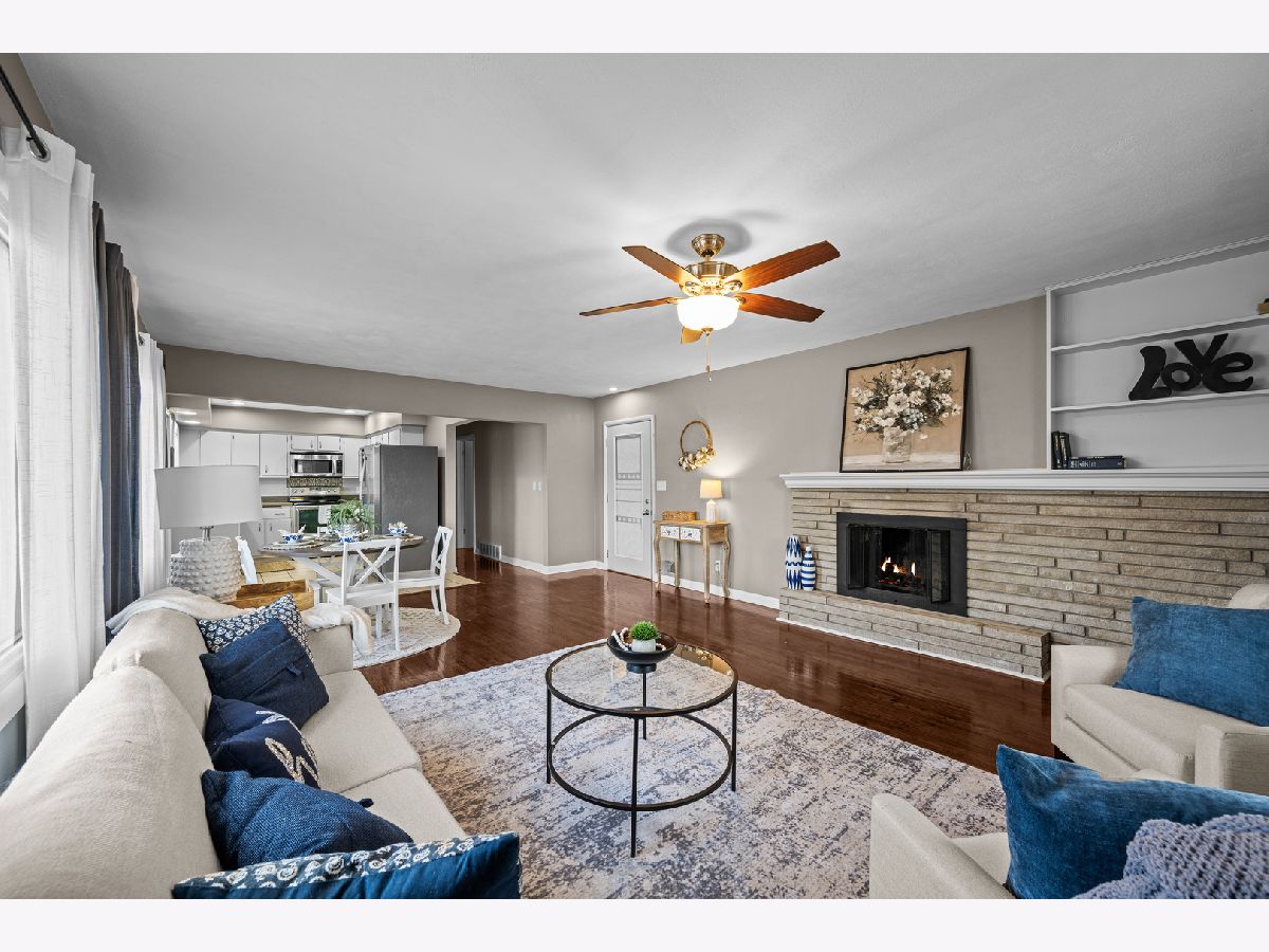 Beautifully maintained three-bedroom, two-bath residence offers timeless comfort . The home is truly move-in ready and showcases two fireplaces along with a sun-filled walkout basement that enhances both functionality and natural light. Three bedrooms on main have custom built in closets. The lower level features a non-conforming fourth bedroom with a generous walk-in closet, ideal for guests, a private home office, or refined flex space. Outdoor living is effortlessly elevated with a private deck overlooking a fully fenced yard, perfect for entertaining or quiet relaxation. A spacious three-season room just off the garage provides an additional retreat-like living area, while a large patio, fully finished basement, storage shed, and extra parking slab add both convenience and versatility. Extensive recent upgrades ensure peace of mind and lasting value, including all new windows, fence, deck boards and stairs, and French patio doors (2022), water heater and furnace (2023), and A/C (2024).