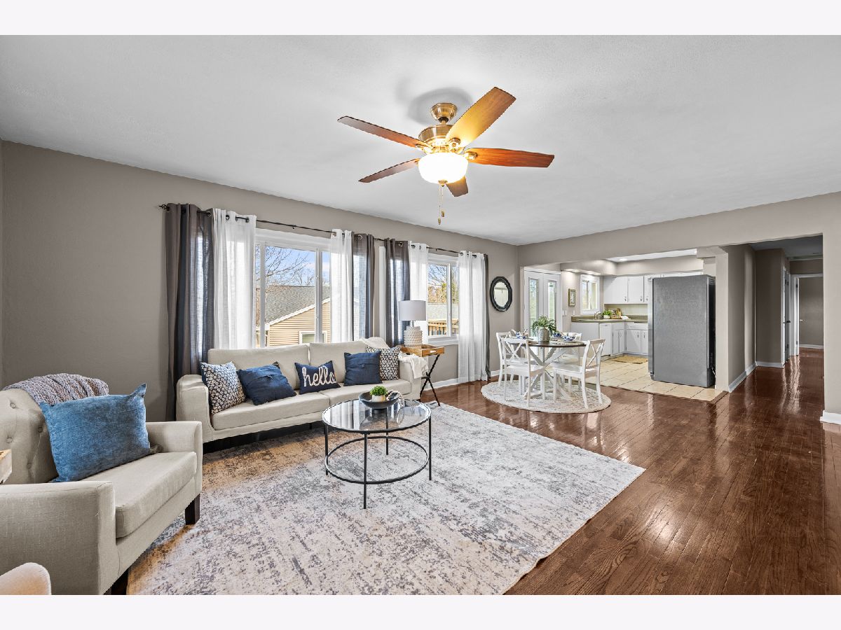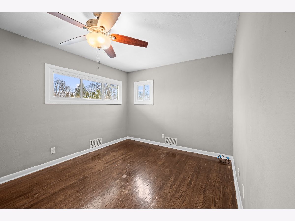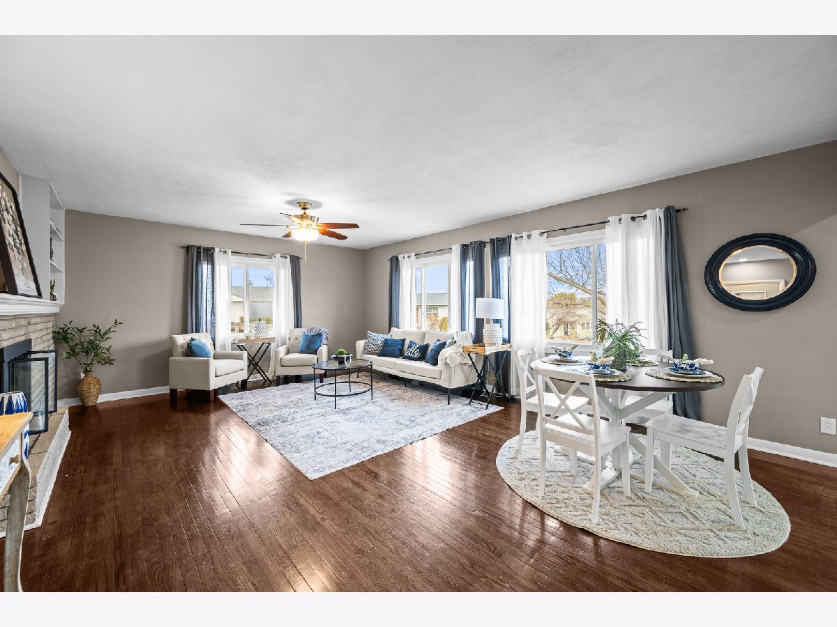 Beautifully maintained three-bedroom, two-bath residence offers timeless comfort . The home is truly move-in ready and showcases two fireplaces along with a sun-filled walkout basement that enhances both functionality and natural light. Three bedrooms on main have custom built in closets. The lower level features a non-conforming fourth bedroom with a generous walk-in closet, ideal for guests, a private home office, or refined flex space. Outdoor living is effortlessly elevated with a private deck overlooking a fully fenced yard, perfect for entertaining or quiet relaxation. A spacious three-season room just off the garage provides an additional retreat-like living area, while a large patio, fully finished basement, storage shed, and extra parking slab add both convenience and versatility. Extensive recent upgrades ensure peace of mind and lasting value, including all new windows, fence, deck boards and stairs, and French patio doors (2022), water heater and furnace (2023), and A/C (2024).