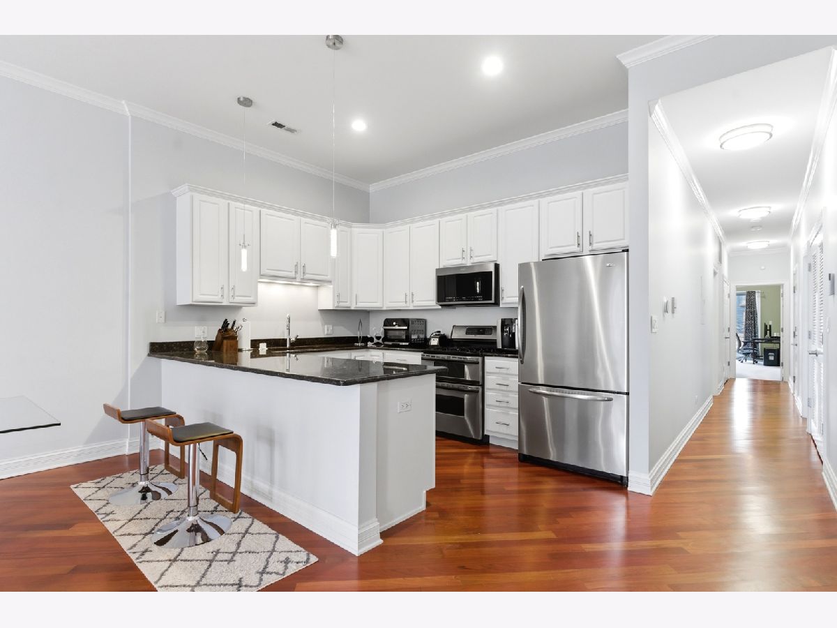 Rare find on West Town's extra-wide commercial stretch of Grand. Soaring 12-ft ceilings, oversized windows, and a sun-drenched open layout. 2 beds, 2 full baths, chef-ready kitchen, spacious primary with walk-in, in-unit laundry, 2 private outdoor balconies and exceptional PRIVATE ROOF TOP DECK. Designated large storage room included. Garage parking is included, pre-wired for EV charger install. Step outside to the Blue Line at Grand, Eckhart Park, and the best of River West, East Village, and Fulton Market dining all within walking distance. Minutes to the Loop, I-90/94, and Metra. Perfect for the first-time buyer ready to level up, the downtown professional trading commute for lifestyle, or the investor chasing a blue-chip rental in one of Chicago's fastest-appreciating corridors. Big ceilings. Wide block. EV-ready garage. Unbeatable location. Come see it before it's gone. Building is walk up.
