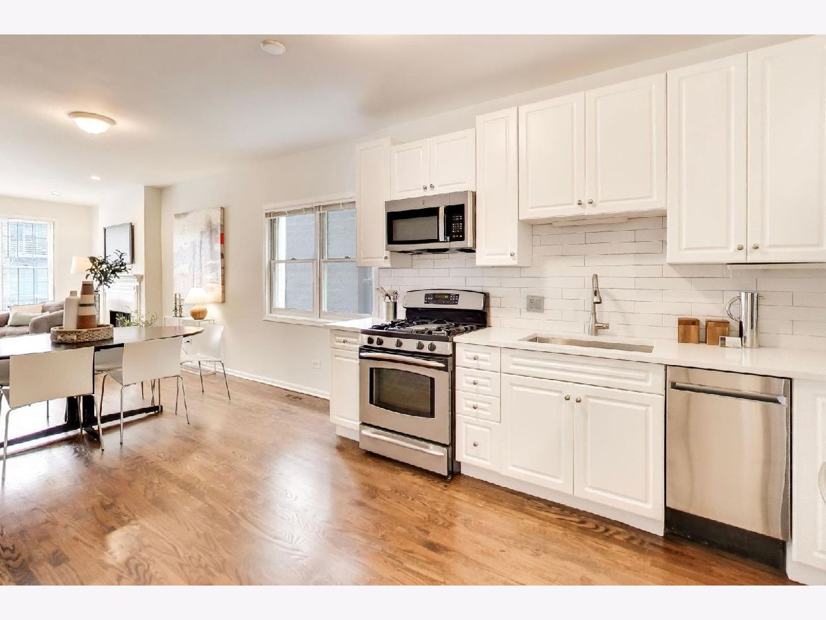 Spacious and upgraded 3 bed, 3 full bath duplex down apartment in ideal West Town Location. Recent updates throughout the property including refinished hardwood floors on main level, fresh paint throughout and brand new LVP flooring in lower level. Main floor features 2 bed 2 bath with open living, dining kitchen floorplan. Kitchen features white quartz tops, stainless steel appliances, white cabinets and subway tile backsplash. Spacious master bedroom with updated bath, deep closet space and rear exit to large back deck. Lower level features family room plus office/den nook. 3rd bedroom and full bath fully renovated in 2019. Hardwoods on main level, with a bright, open plan living / dining / kitchen. Great storage, including large closet under stairs, and bike storage in common area basement. New, in unit full size stacked wash/dryer. 1 exterior parking space included. Conveniently located between Fulton Market and Wicker Park neighorhoods, in booming West Town. Short walk to Blue and Green line El, and a multitude of restaurants and shops on Grand Avenue.