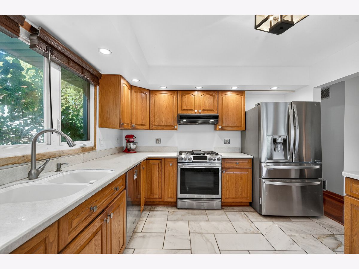 Great opportunity in Hoffman Estates' High Point subdivision with this outstanding raised ranch! With large English windows on the lower level, the house functions more like a 2-story property, including walk-out sliders in the lower level family room. Large entryway with marble floors provides easy, open access to both the first floor and lower level, also connecting the oversized 2-car garage with added storage. Recently painted, this home is bright and inviting with open living, dining and kitchen spaces on the first floor. Stainless steel appliances and hardtops make the kitchen the ideal work environment. Three bedrooms and two full baths round out the top floor. There are two more bedrooms tucked away from the sprawling family room huge windows & fireplace downstairs. Newer windows are showcased throughout. The lower-level half bath can easily expand to full. The fenced backyard is complete with a detached shed & expansive rebuilt two-tier deck that is recently refinished & brilliant for entertaining.