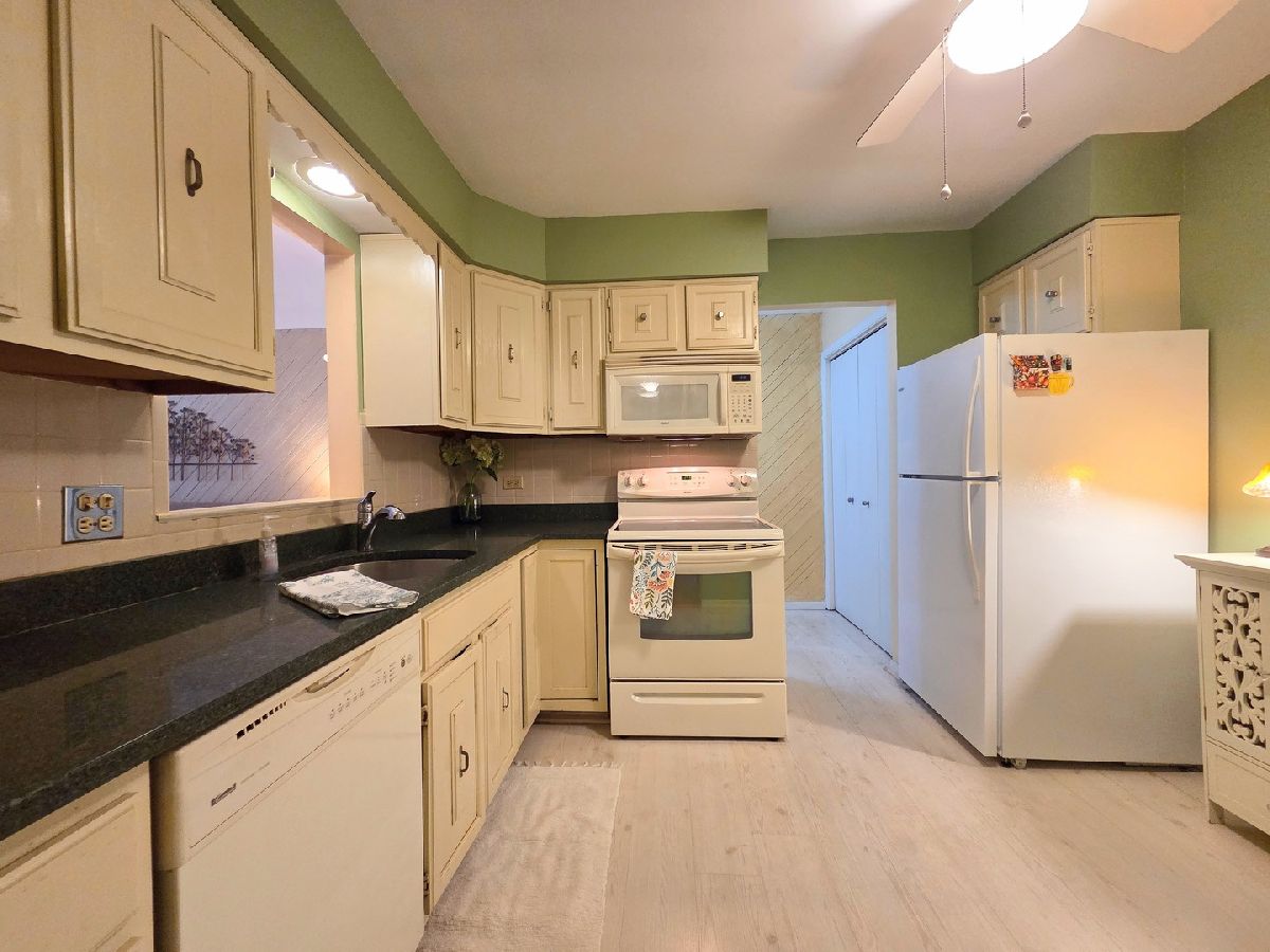 Location, location! This beautifully maintained and charming 2-bedroom, 1-bathroom second-floor gem *WITH CENTRAL AIR/HEAT! *WASHER/DRYER IN UNIT *GARAGE *DESIGNATED PARKING! in the desirable Forest Edge subdivision offers scenic views of lush green space from a terrace-style balcony accessible from both the living room and bedroom. The home features a spacious living room, an eat-in kitchen with granite countertops and a newer refrigerator, two generously sized bedrooms, an in-unit washer and dryer, and both a one-car garage (#7) and an additional outdoor parking space (#28). Nestled across from the Deer Park Nature Preserve and trails, the property combines peaceful surroundings with convenience, just minutes from downtown Palatine and Barrington, Metra, shopping, expressways, and schools. Recent updates include HVAC (approx. 2015), washer/dryer (approx. 2020), and water heater (2022). With a secure building, comfort, and space throughout, this unit feels like home. INVESTORS WELCOME. ESTATE SALE. SOLD AS-IS.