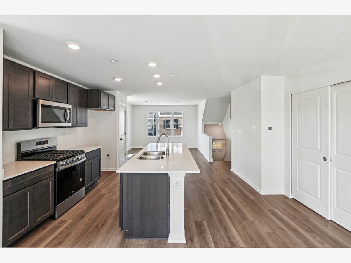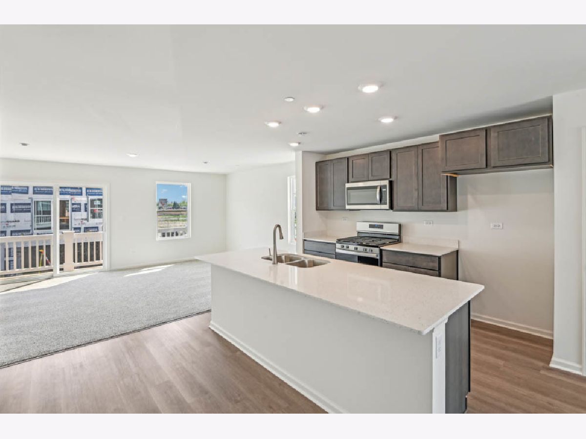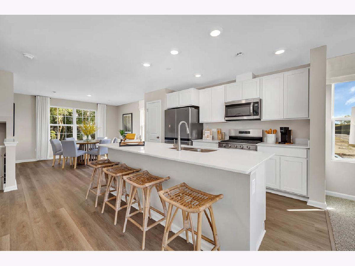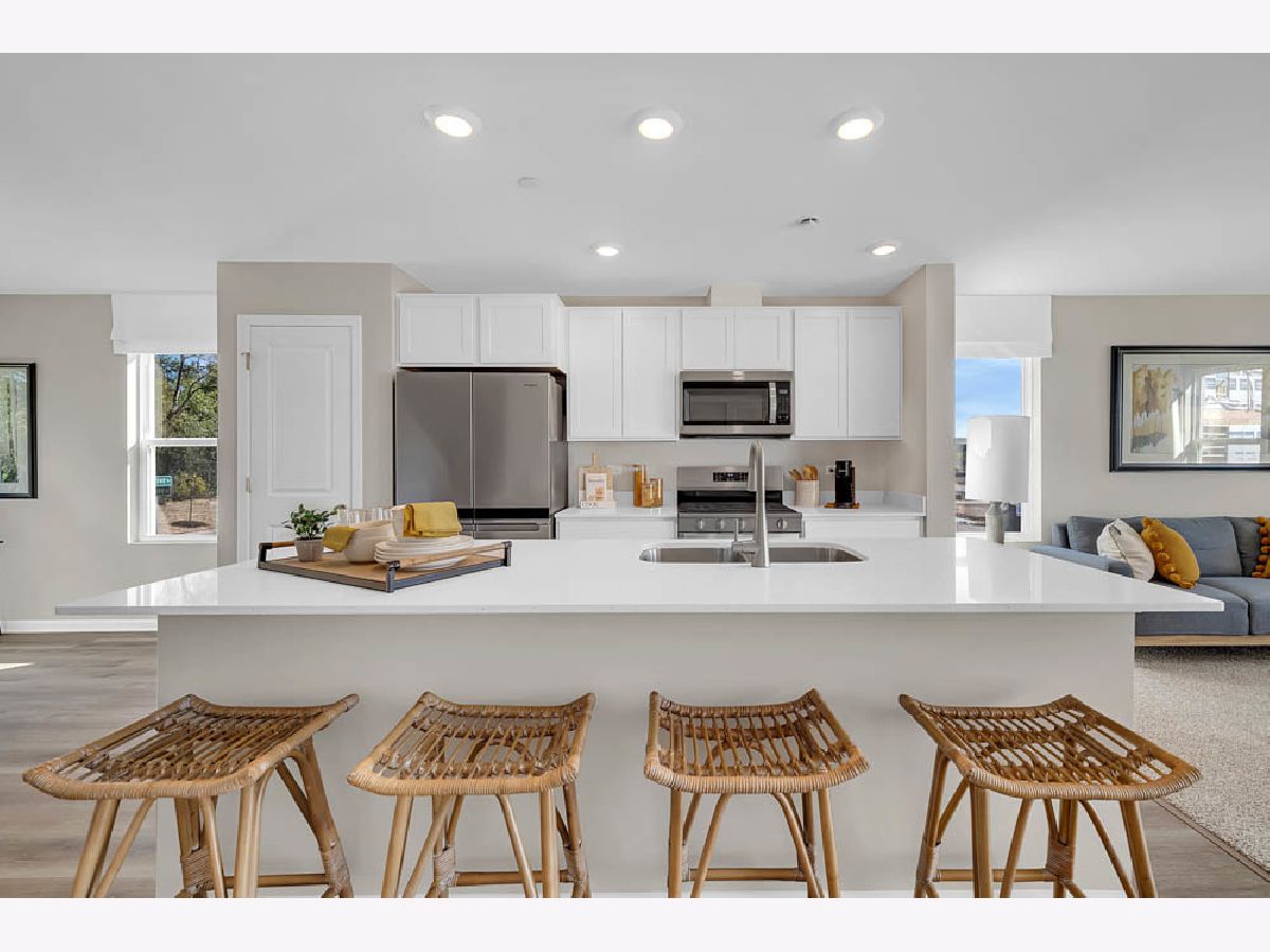 Discover yourself at 1370 Foxglove Dr, a beautiful Townhome in The Grasslands community. This townhome will be ready for a late Summer move-in! Homesite includes a fully sodded yard that is maintained throughout the year, as well as snow removal. This Garfield townhome plan offers a well-designed spacious 1,756 square feet of living space with 3 bedrooms, 2.5 baths, and finished flex room. As soon as you step inside from your spacious two car garage entrance, you'll be greeted by the finished flex room, which is perfect as a den, 2nd living room or playroom. Walking up to the main level, you will find this home's open concept living space. The expansive designer kitchen overlooks both the front dining and back great room areas, making it the ideal space to entertain. Step outside onto your balcony, relax and enjoy your morning coffee. Additionally, your kitchen features Shaker designer cabinetry, a spacious island with QUARTZ countertops, and pantry. Enjoy your large primary bedroom with a walk-in closet and connecting en suite bathroom. The rest of the upper level features a laundry room, secondary bedrooms with a full second bath, and linen closet. You'll also find luxury vinyl plank flooring throughout the main level living space, bathrooms, and laundry. Impressive innovative ERV furnace system and tankless water heater round out the amazing features this home has to offer! All Chicago homes include our America's Smart-Home Technology, featuring a smart video doorbell, smart Honeywell thermostat, smart door lock, Deako smart light switches and more. Photos are of similar homes and model home. Actual home built may vary.
