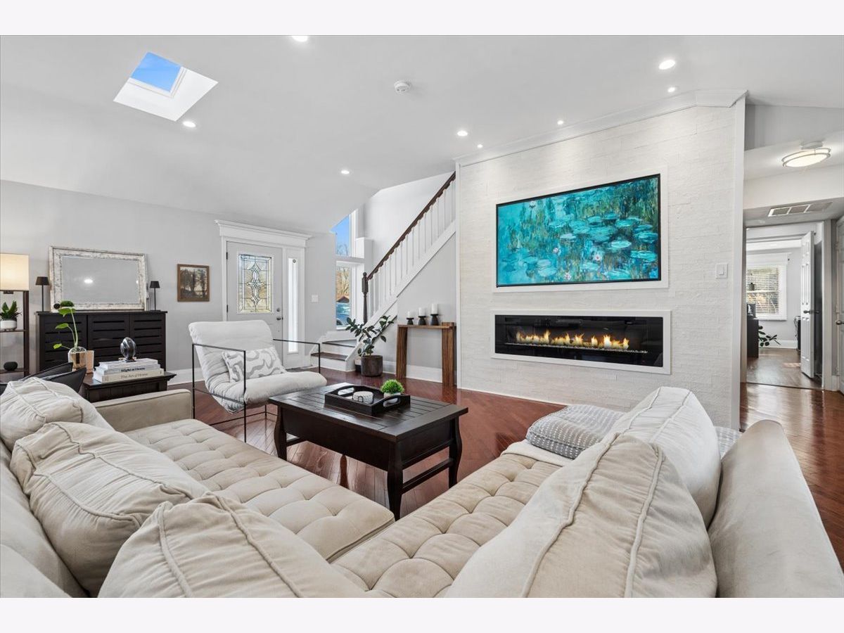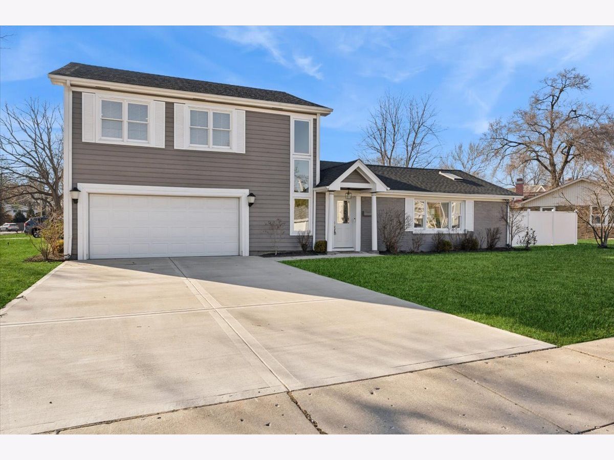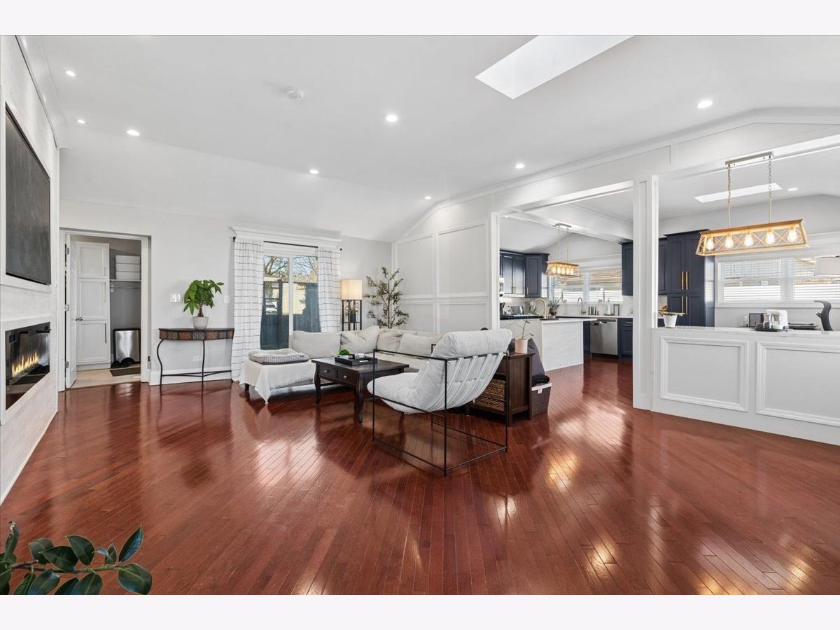 Welcome to 1370 Northmoor Ct, a beautifully renovated split-level home on a quiet Northbrook cul-de-sac. The vaulted family room is filled with natural light from skylights, features a cozy fireplace, and a picture-frame style TV mount. The updated kitchen offers quartz countertops, stainless steel appliances, and ample storage, ideal for everyday living and entertaining. Recent updates include a modern washer and dryer. The garage features a new epoxy floor, and the large concrete driveway provides generous parking. Outside, enjoy a fenced yard and spacious patio perfect for relaxing or hosting guests. Conveniently located near shopping, dining, parks, and within the sought-after Glenbrook North High School district.