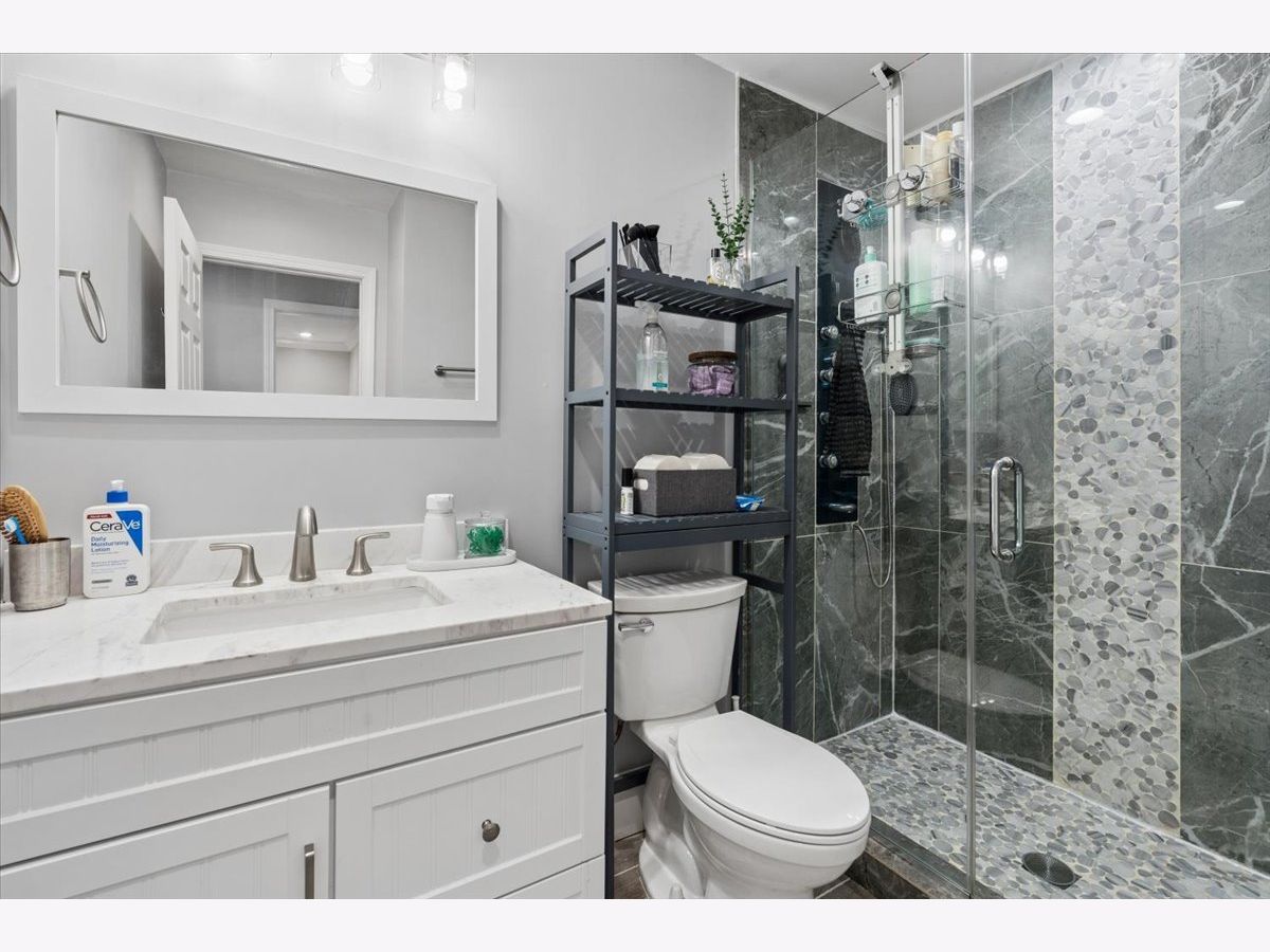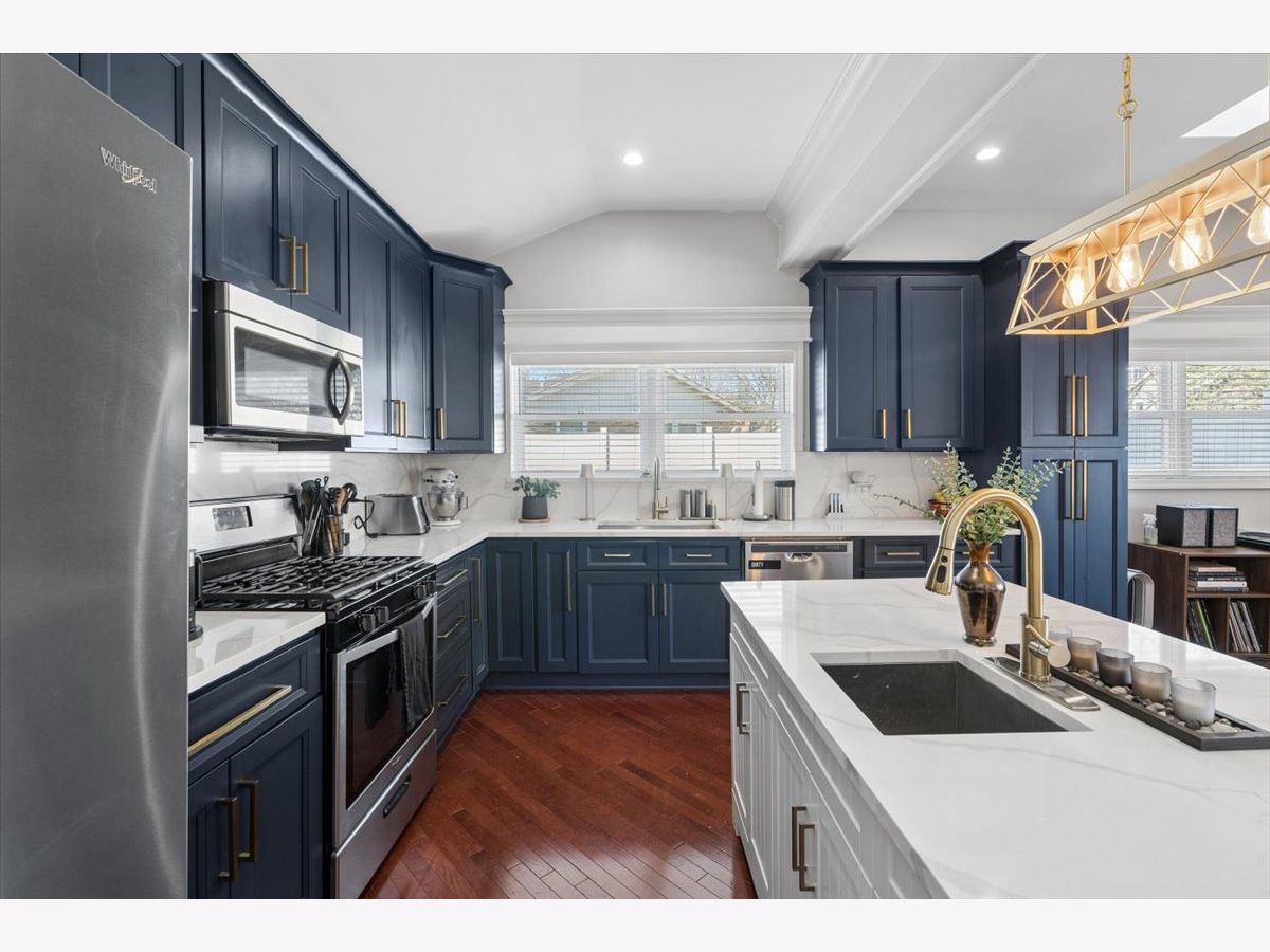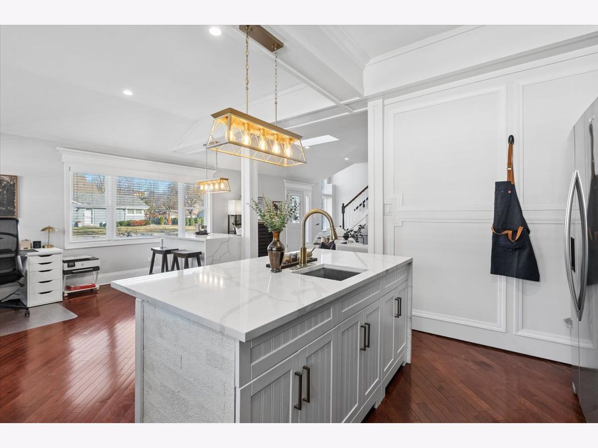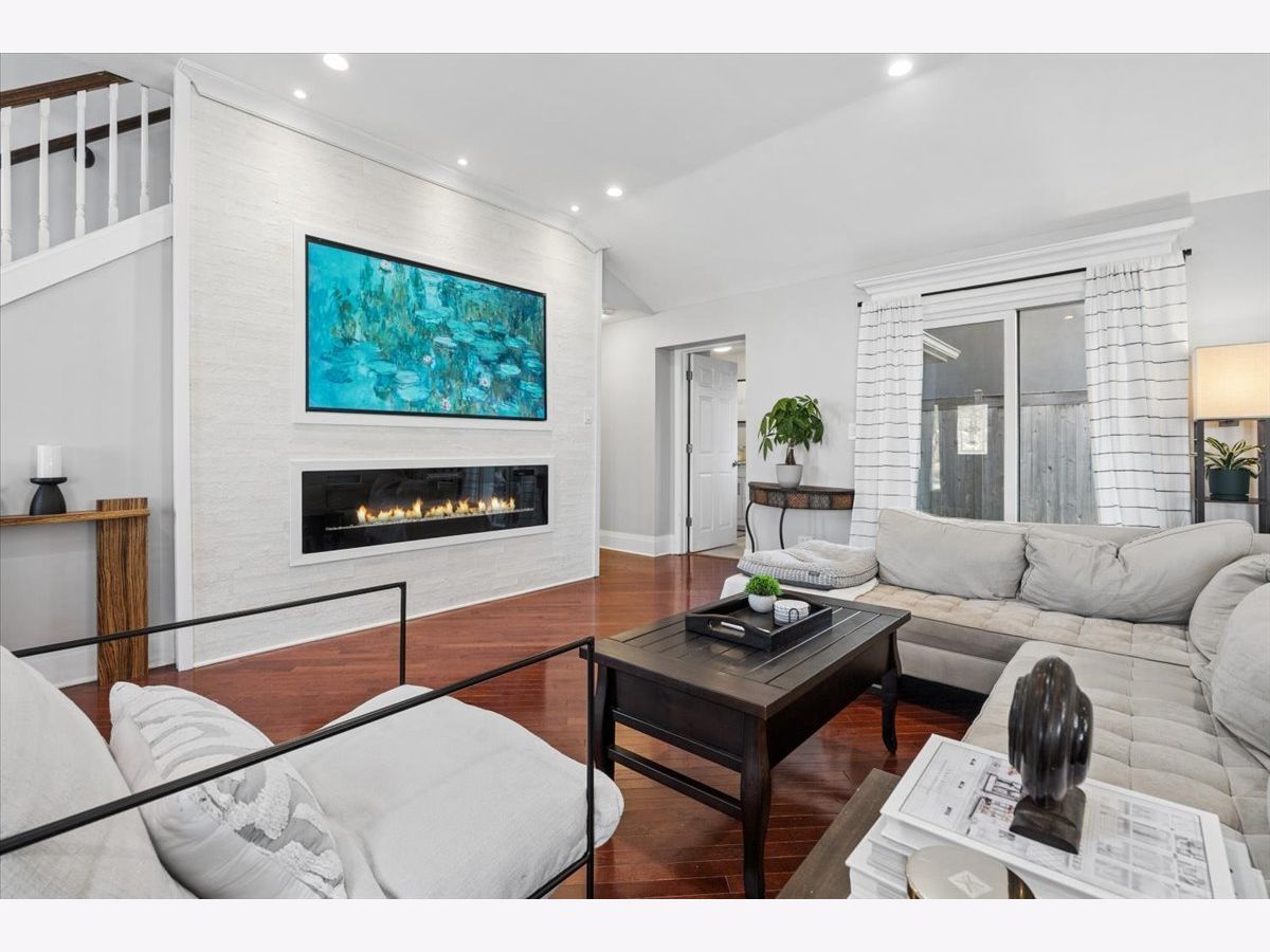 Welcome to 1370 Northmoor Ct, a beautifully renovated split-level home on a quiet Northbrook cul-de-sac. The vaulted family room is filled with natural light from skylights, features a cozy fireplace, and a picture-frame style TV mount. The updated kitchen offers quartz countertops, stainless steel appliances, and ample storage, ideal for everyday living and entertaining. Recent updates include a modern washer and dryer. The garage features a new epoxy floor, and the large concrete driveway provides generous parking. Outside, enjoy a fenced yard and spacious patio perfect for relaxing or hosting guests. Conveniently located near shopping, dining, parks, and within the sought-after Glenbrook North High School district.