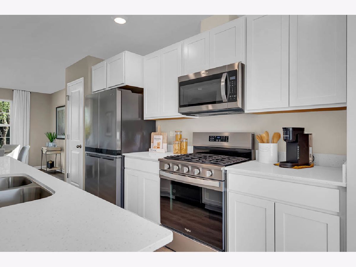 Discover yourself at 1376 Foxglove Dr, a beautiful new END UNIT Townhome in The Grasslands community. This townhome will be ready for a Summer move-in! Homesite includes a fully sodded yard that is maintained throughout the year, as well as snow removal. This Garfield townhome plan offers a well-designed spacious 1,756 square feet of living space with 3 bedrooms, 2.5 baths, and finished flex room. As soon as you step inside from your spacious two car garage entrance, you'll be greeted by the finished flex room, which is perfect as a den, 2nd living room or playroom. Walking up to the main level, you will find this home's open concept living space. The expansive designer kitchen overlooks both the front dining and back great room areas, making it the ideal space to entertain. Step outside onto your balcony, relax and enjoy your morning coffee. Additionally, your kitchen features Shaker designer cabinetry, a spacious island with QUARTZ countertops, and pantry. Enjoy your large primary bedroom with a walk-in closet and connecting en suite bathroom. The rest of the upper level features a laundry room, secondary bedrooms with a full second bath, and linen closet. You'll also find luxury vinyl plank flooring throughout the main level living space, bathrooms, and laundry. Impressive innovative ERV furnace system and tankless water heater round out the amazing features this home has to offer! All Chicago homes include our America's Smart-Home Technology, featuring a smart video doorbell, smart Honeywell thermostat, smart door lock, Deako smart light switches and more. Photos are of similar homes and model home. Actual home built may vary.