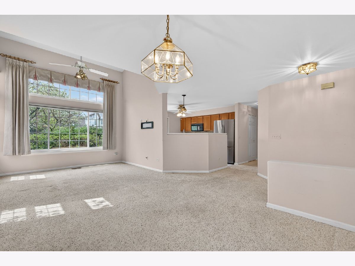 Wow, this is what you've been searching for! You will be impressed by this rarely available, ground floor ranch-style townhome with a private entry. The light floods into the spacious living and dining rooms, which feature soaring cathedral ceilings that create a grand and open feel. The kitchen offers a phenomenal amount of cabinet and counter space, under-cabinet lighting, and a brand-new refrigerator (2024). Doors from the kitchen leads directly out to your private patio, situated in a peaceful neighborhood setting that is perfect for sitting outside and enjoying the sounds of spring. This home features two bedrooms and one full bathroom, with the ultimate convenience of single-level living-no more going up and down stairs! You will appreciate the peace of mind that comes with the recent updates, including a newer furnace and A/C (2017) and replacement windows throughout (2018). For those who love the outdoors, the pond is just a short walk away to enjoy the ducks and nature as well as a playground. Complete with a one-car attached garage, everything you need for a maintenance-free lifestyle is right here. Don't delay-this one won't last!