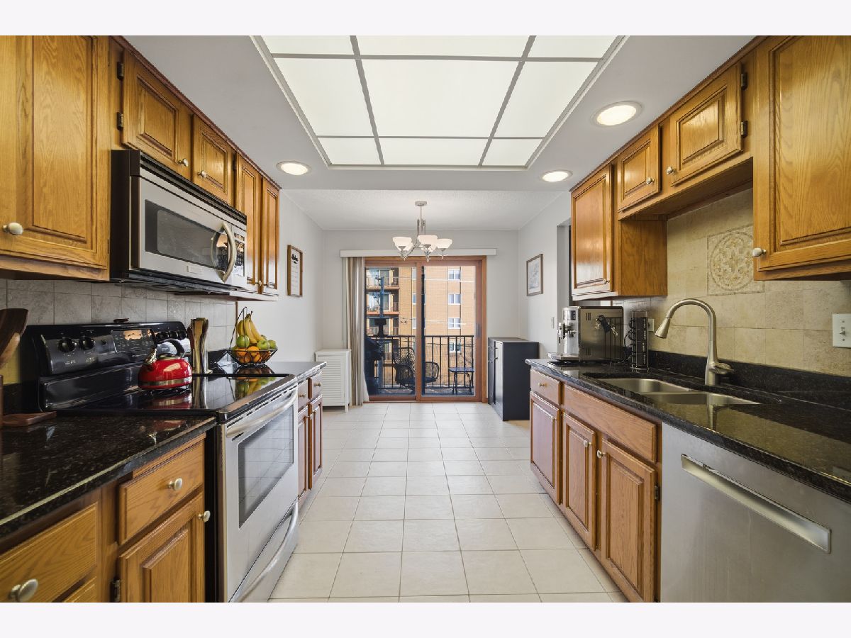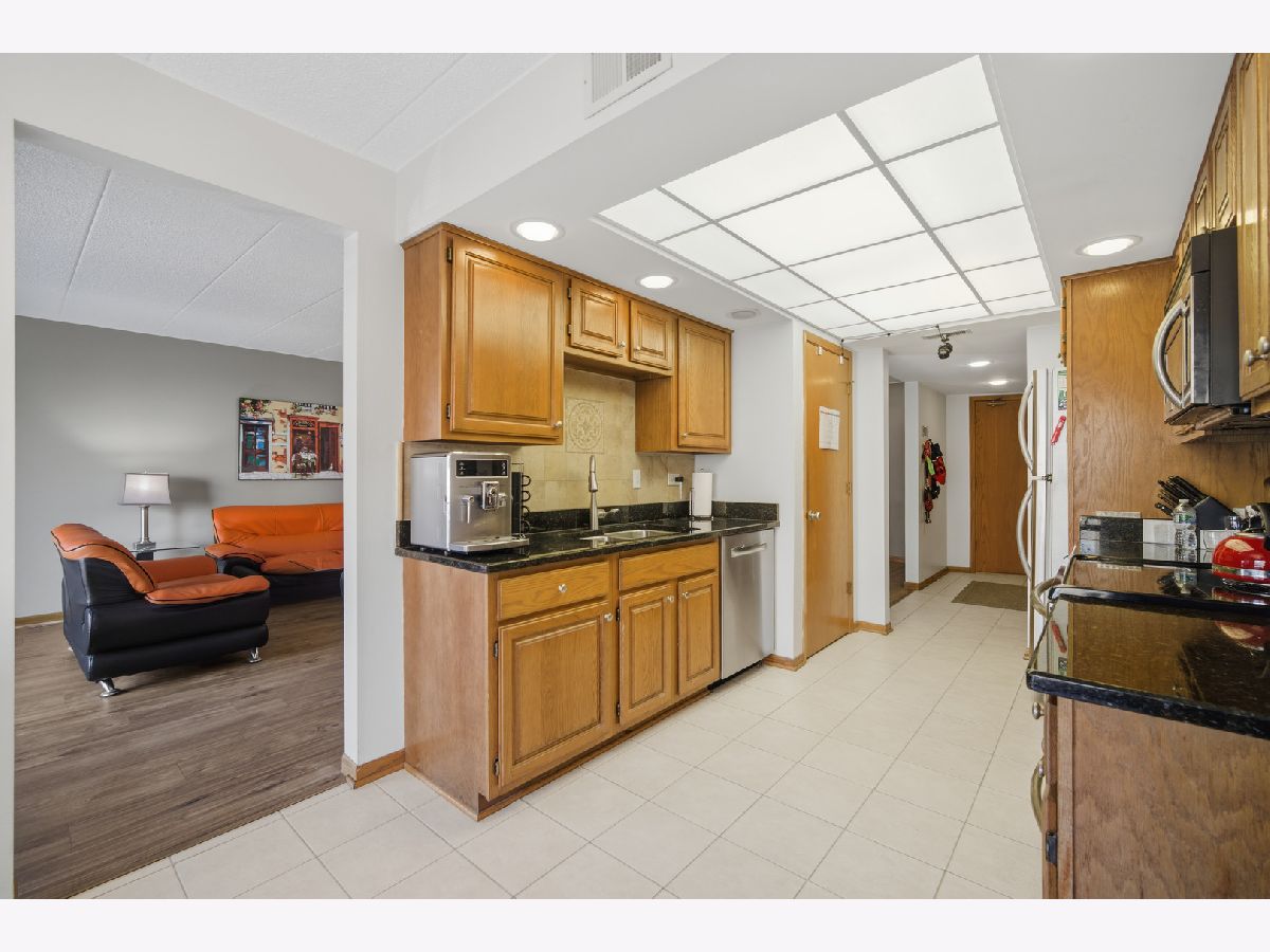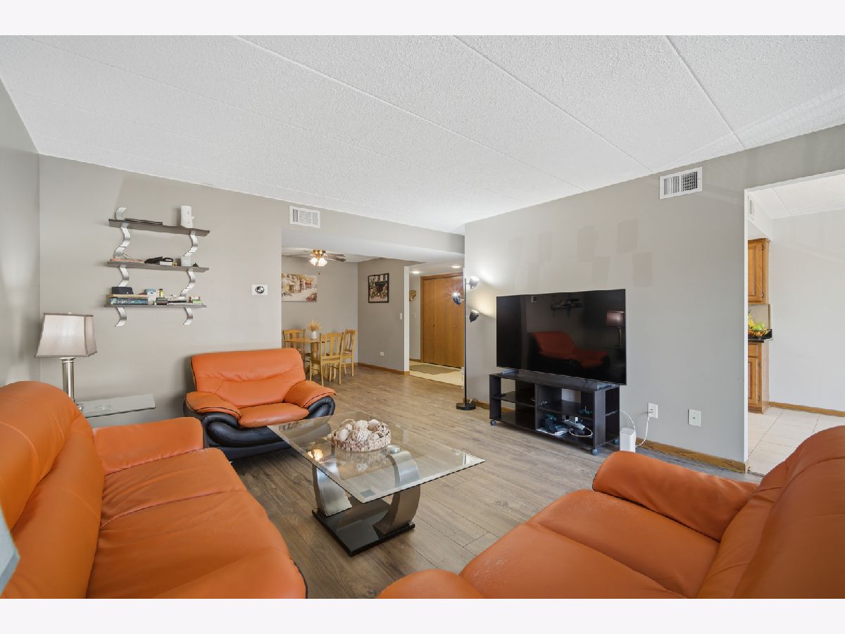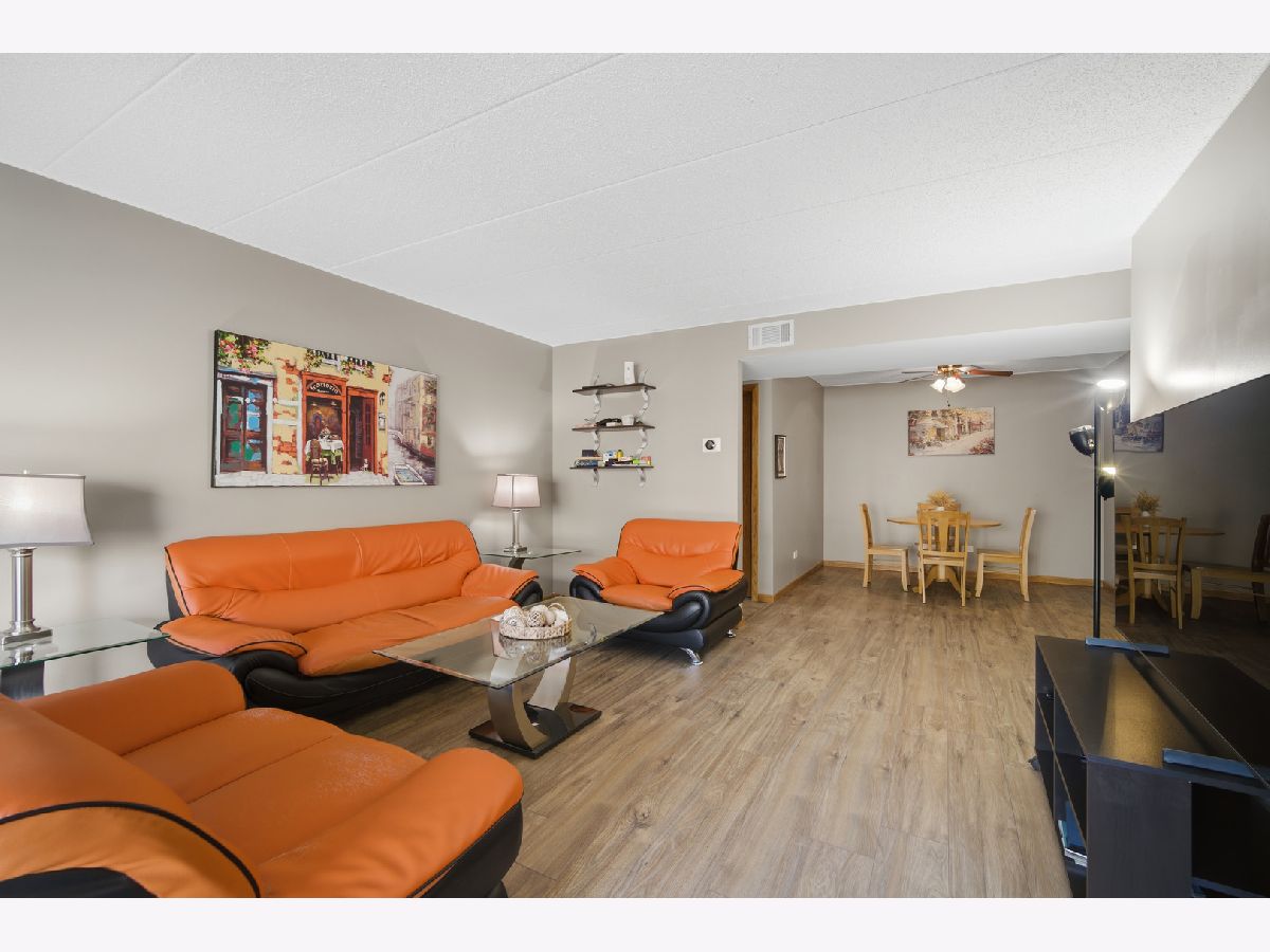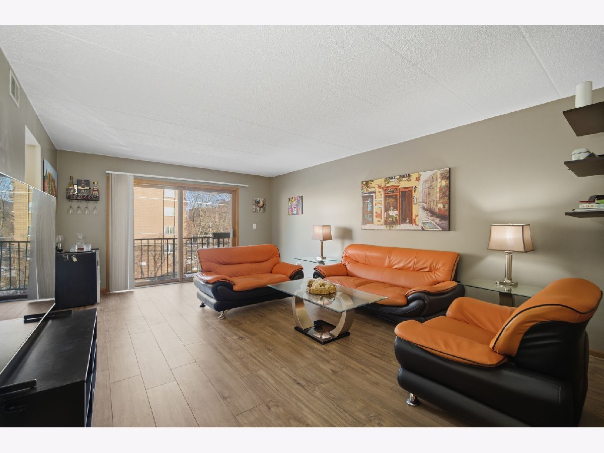 Welcome to this stunning two bedroom, two bathroom condo offering spacious, modern living in the heart of Des Plaines. Enjoy brand-new flooring throughout and a bright, open layout designed for both comfort and convenience. The primary suite features a private en-suite bathroom, creating a peaceful retreat with excellent privacy. The large chef's kitchen impresses with ample cabinetry, granite countertops, stainless steel appliances, and a charming eating area-perfect for both everyday meals and entertaining. The kitchen and living room flow seamlessly onto an extra-large balcony, ideal for relaxing or enjoying morning coffee. Oversized windows flood the home with natural light, and the versatile dining area can easily double as a home office. Additional highlights include an in-unit laundry room with abundant oak cabinetry, central air, heated floors, plus one premium heated garage parking space and a storage unit. The building is well-maintained, secure, and pet-friendly, offering amenities such as an elevator and strong resident services. Located in a prime area, this home is a commuter's dream-just moments from public transportation, the Metra station, expressways, restaurants, parks, schools, grocery stores, and the library.