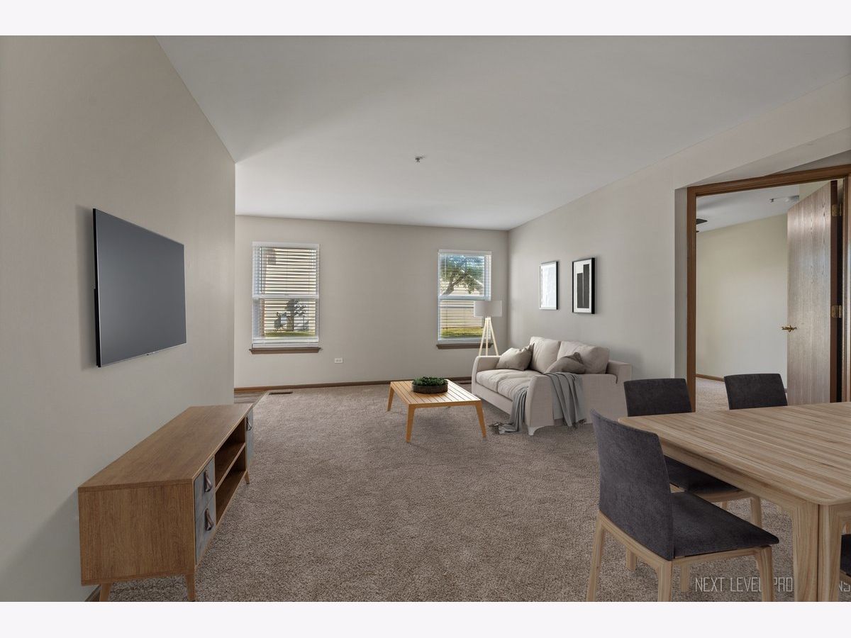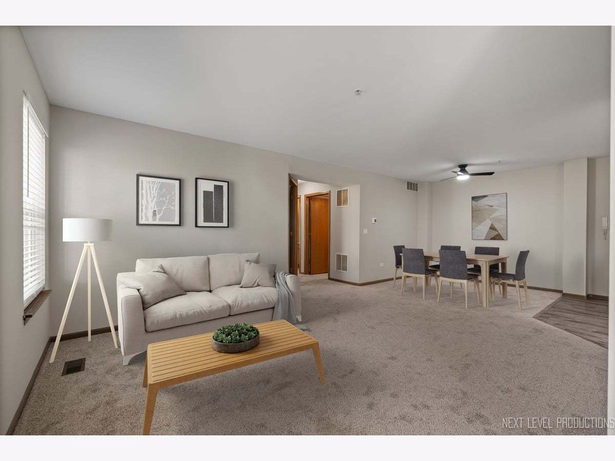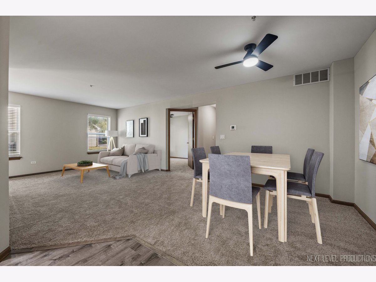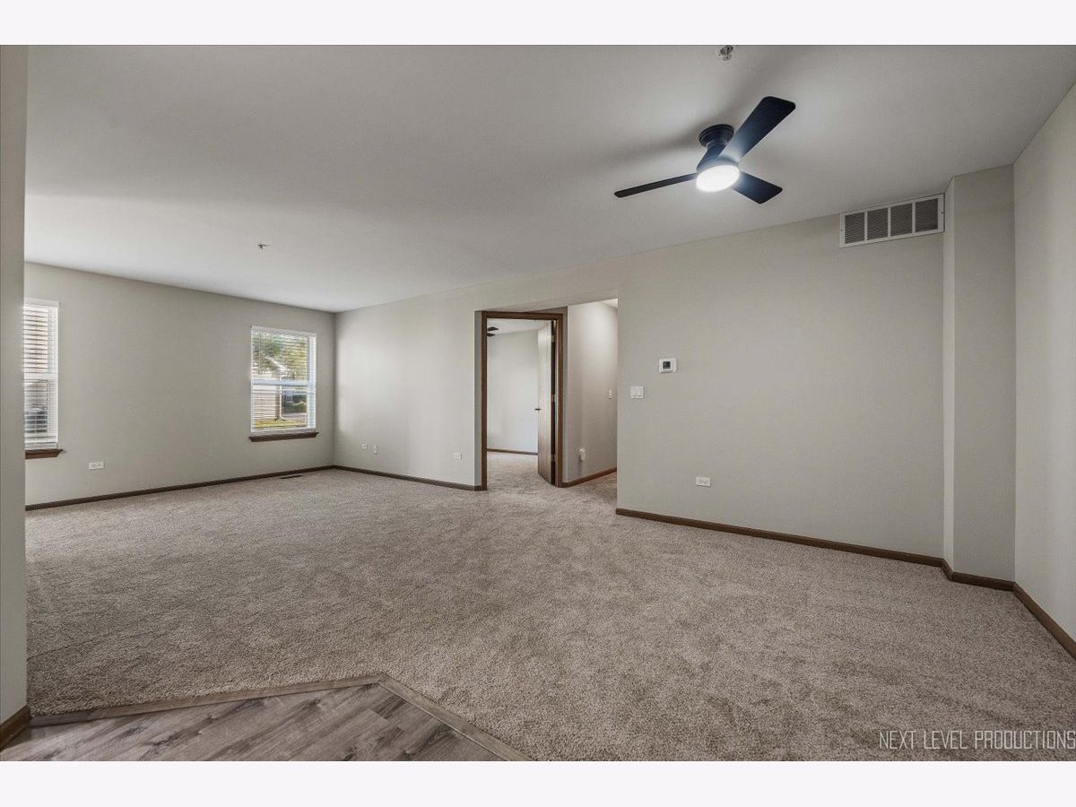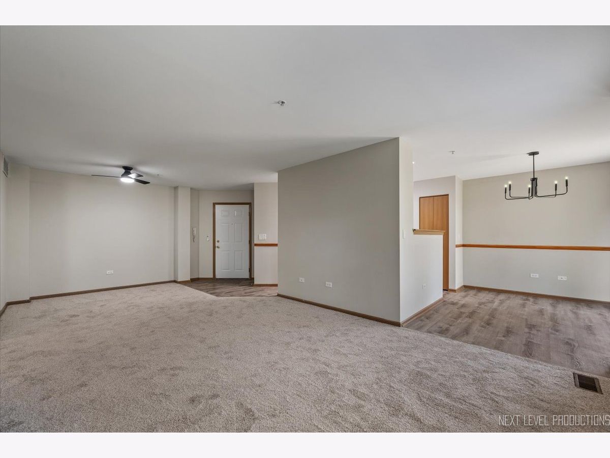 Welcome to Carillon of Plainfield! Fabulous main level ranch-style unit with two bedrooms and two full baths located in an ELEVATOR building with a spacious open layout! This building is conveniently situated near the clubhouse, pool and tennis club! This first floor location provides easy access to you one car interior garage private entrance with storage. Your primary suite has a large walk-in closet and private bath, with an additional full bath for guests and the second bedroom. Laundry has a full-sized washer and dryer. Your kitchen and foyer area enjoys newer luxury vinyl plank flooring, NEW carpet and FRESHLY PAINTED throughout. Carillon is a 55+ active adult GATED community with 24 hour security, new tennis and pickleball courts, updated clubhouse, two outdoor pools, one indoor pool, hot tubs, lovely walking path, (3) 9-hole golf courses with an on-site restaurant, Talk of the Town monthly newsletter, and so much more! Close to I 55, restaurants, shopping and all the area has to offer. Contact me today to schedule your private showing. Happy to Help!
