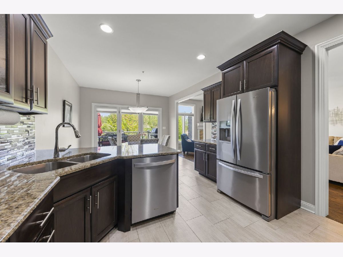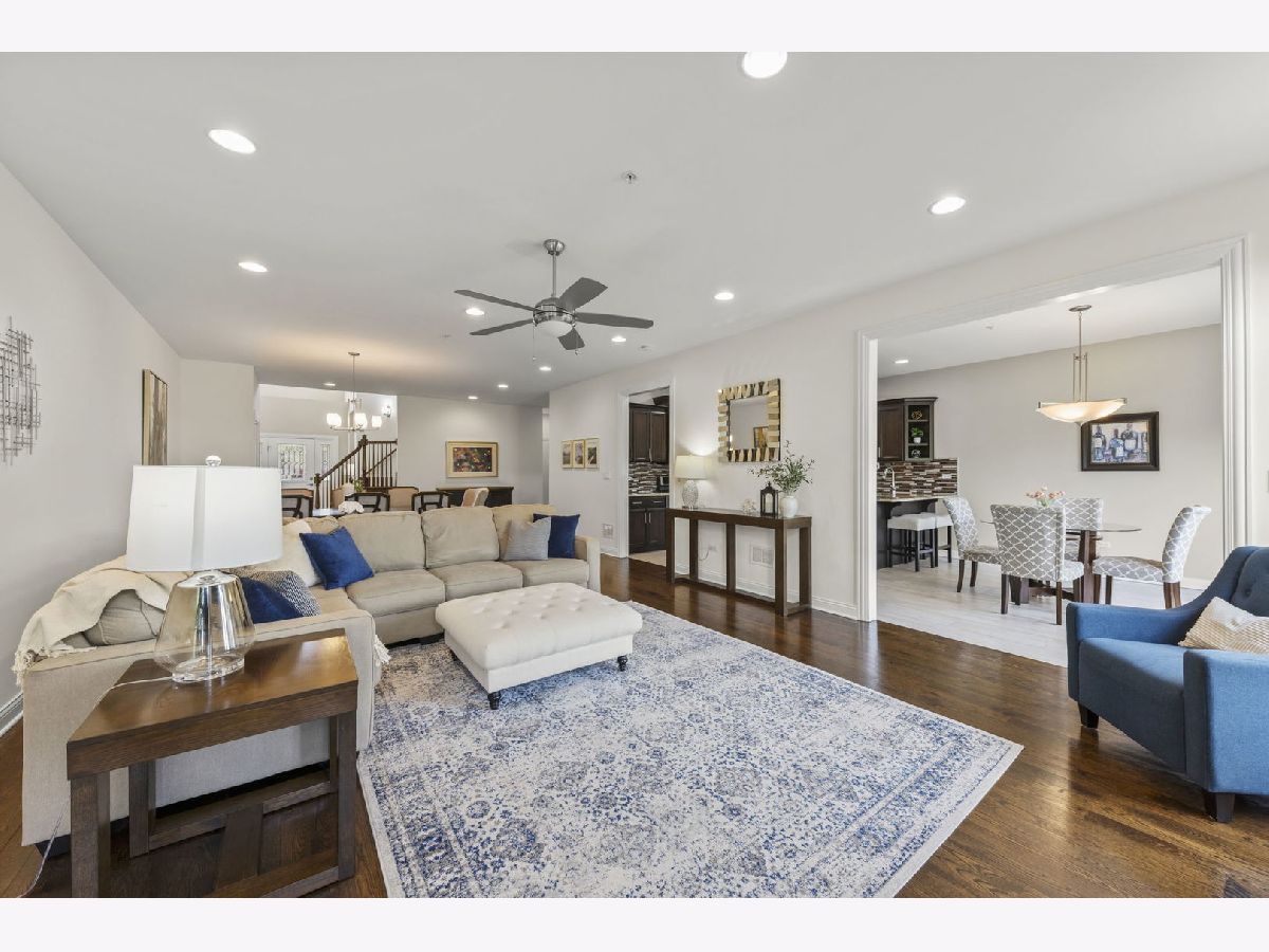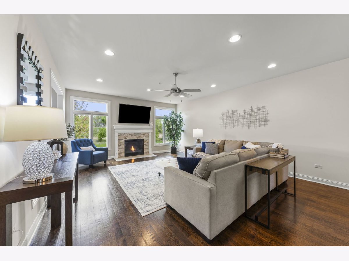 Discover space, serenity, and exceptional craftsmanship in this beautifully maintained 4 bedroom, 3.5 bathroom townhouse offering 4,000 square feet of bright, open living space. Perfectly positioned in a peaceful setting with tranquil water views, this home delivers both luxury and comfort in one of Homer Glen's most desirable communities. Step inside the impressive two-story foyer, where tall ceilings, recessed lighting, and abundant natural light create an immediate sense of openness. The main level features an open concept layout perfect for entertaining, with hardwood flooring throughout and a cozy family room anchored by a striking stone fireplace. The chef-inspired eat-in kitchen features custom cabinetry, granite countertops, and a stunning glass backsplash. Upstairs, a huge loft offers flexible space for work, play, or relaxation, smartly separating the bedrooms for added privacy. Retreat to the massive master suite, complete with vaulted ceilings and a generous walk-in closet. The spa-like master bathroom includes double sinks, a deep soaking tub, and a separate shower. The full walkout basement expands your living space even further. It includes plush carpeting, luxury vinyl tile in the bar area, an oak wood bar with quartz countertops, a dedicated storage room, and a fourth bedroom with a full bathroom that is ideal for an in-law suite, guests, or private living quarters. This home is part of a quiet, friendly neighborhood known for its annual community party with live music and its efficient, well managed homeowners association. Buyers are welcome to review the financials to appreciate the strength of the association. Stonebridge Woods offers exceptional amenities including tennis courts, a park, basketball courts, a softball field, a pavilion, scenic ponds, and miles of bike trails. The location is outstanding. You are minutes from Interstates 355, 55, and 80, only ten minutes from the Orland Park 153rd Metra station, and served by award winning schools. This rare combination of space, views, community, and convenience creates a home that truly stands out.