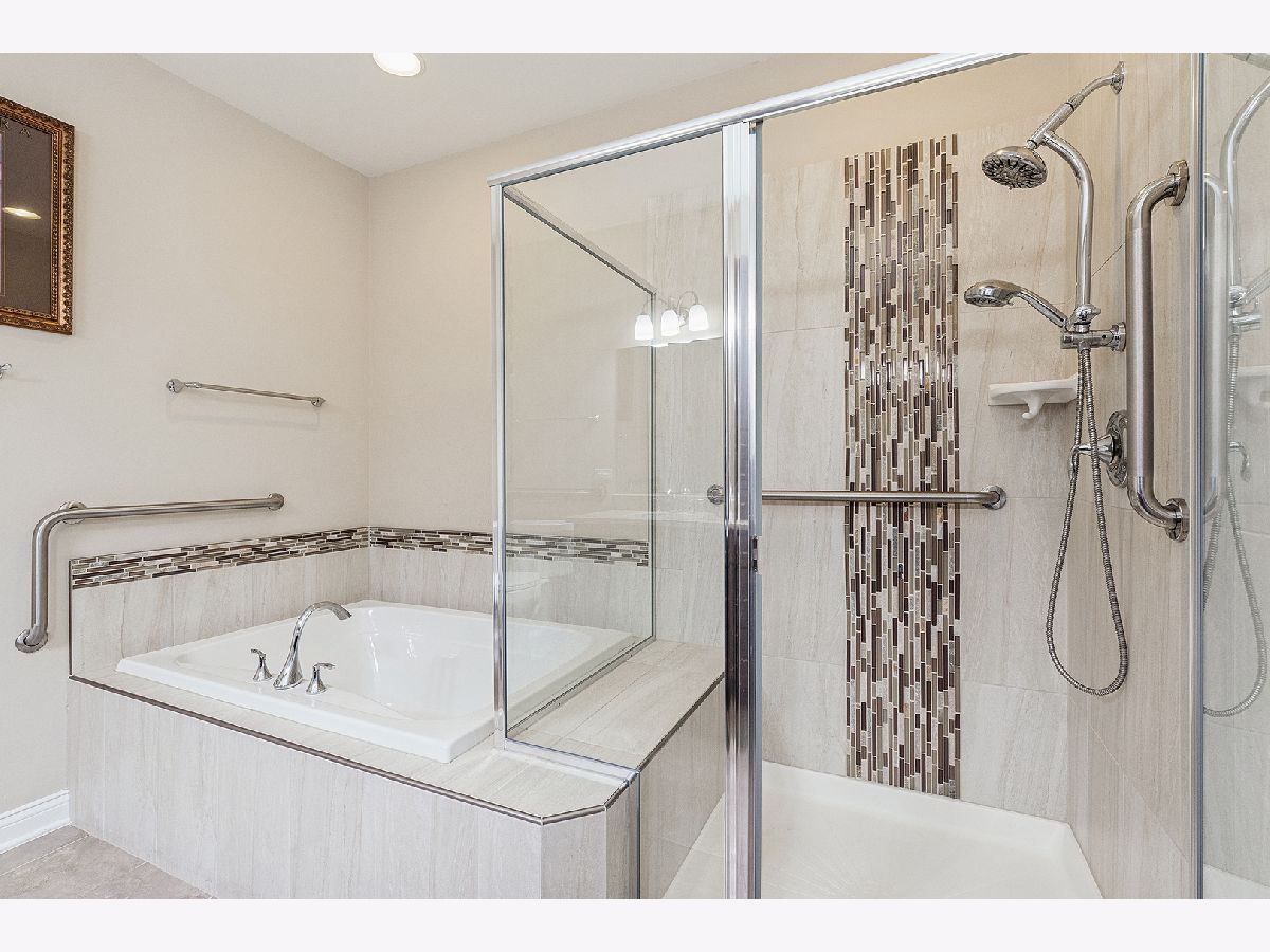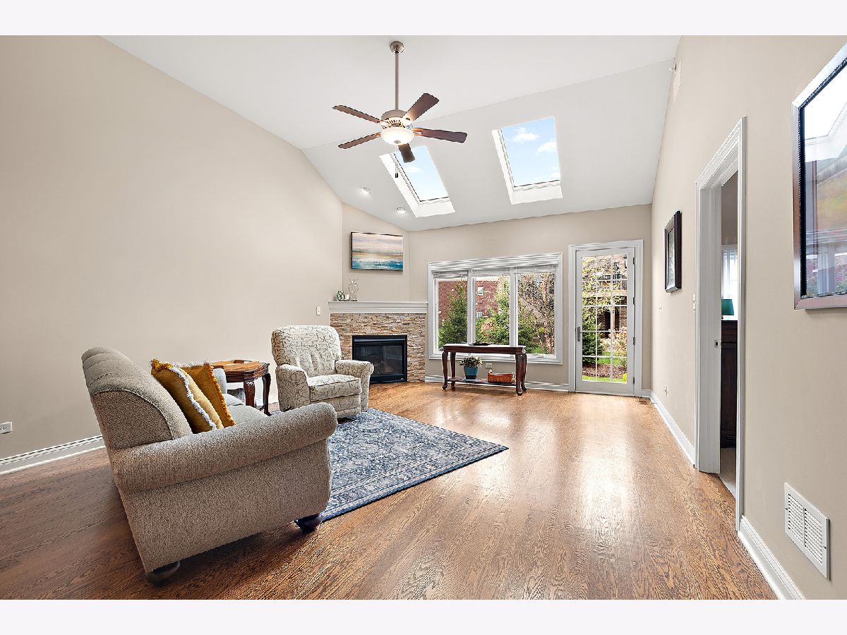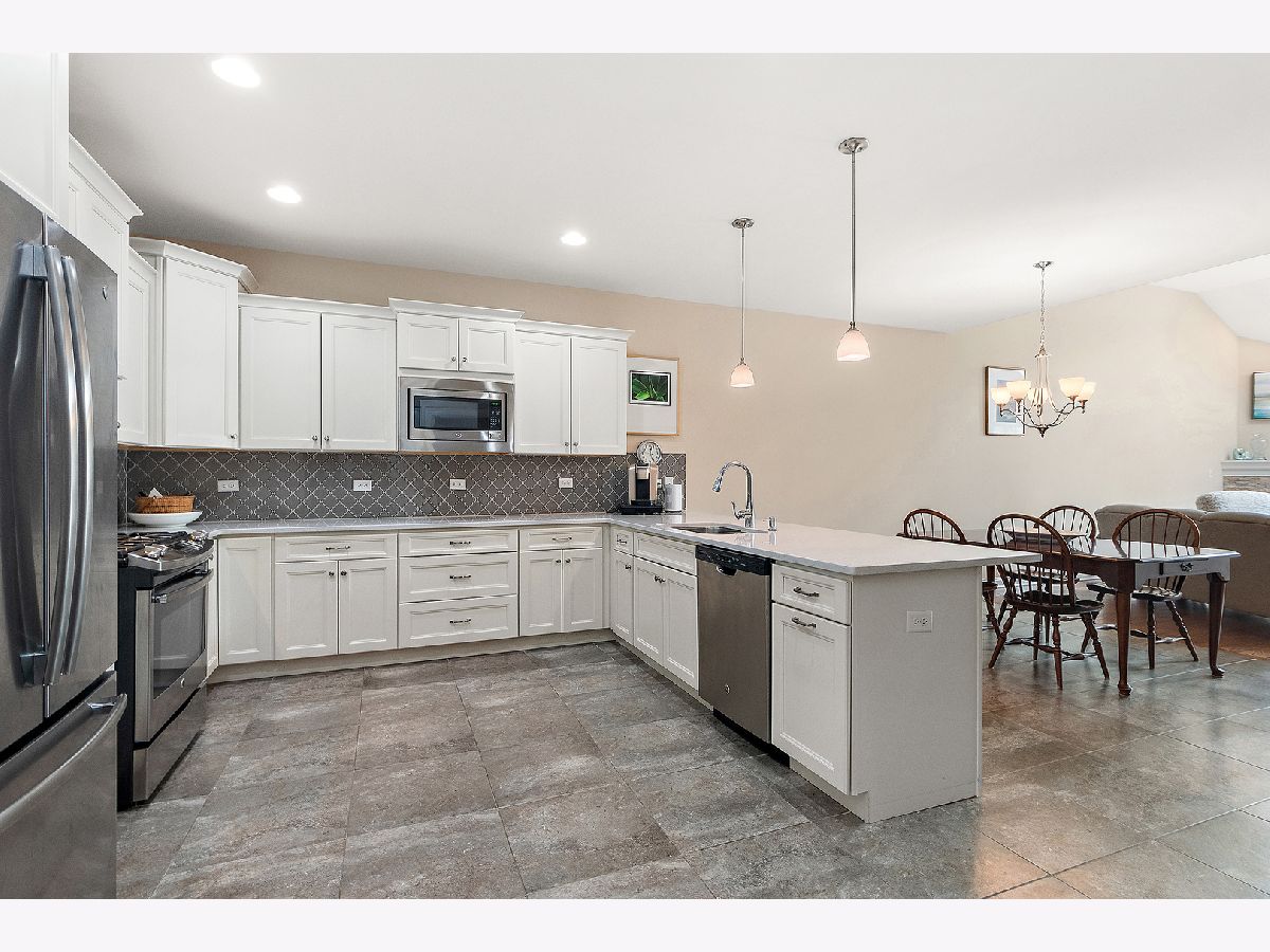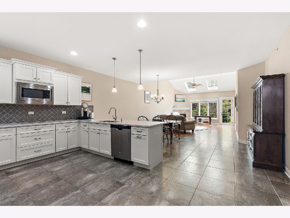 Welcome to this beautiful ranch townhome in the highly sought-after Stonebridge Woods Villas of Homer Glen. Truly move-in ready and like new! Step into a bright, spacious foyer that opens to an inviting floor plan filled with natural light. Vaulted and 9ft ceilings, and white trim and doors throughout. The stunning kitchen features crisp white cabinetry, granite countertops, breakfast bar, and stainless-steel appliances, seamlessly connecting to the main living space-perfect for everyday living and entertaining. The living room features hardwood floors, vaulted ceilings, skylights, a cozy corner fireplace, and direct access to patio. The spacious primary suite offers vaulted ceilings, a walk-in closet, and an en-suite bath complete with dual sinks, a walk-in shower, and separate soaking tub. Convenient first-floor laundry room with utility tub and cabinetry for additional storage. The fully finished basement expands your living space with a large recreation area, wet bar with refrigerator, and a full bathroom featuring an American Standard walk-in tub and large walk-in shower. Two car garage. Just steps away, you'll find a scenic pond with fountain, walking trails, a park, ball field, tennis courts, and a pavilion. This home combines comfort, style, and convenience in a beautiful community. A must see!