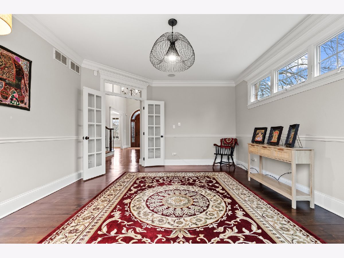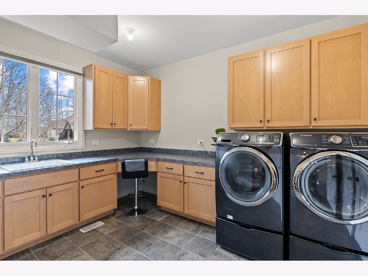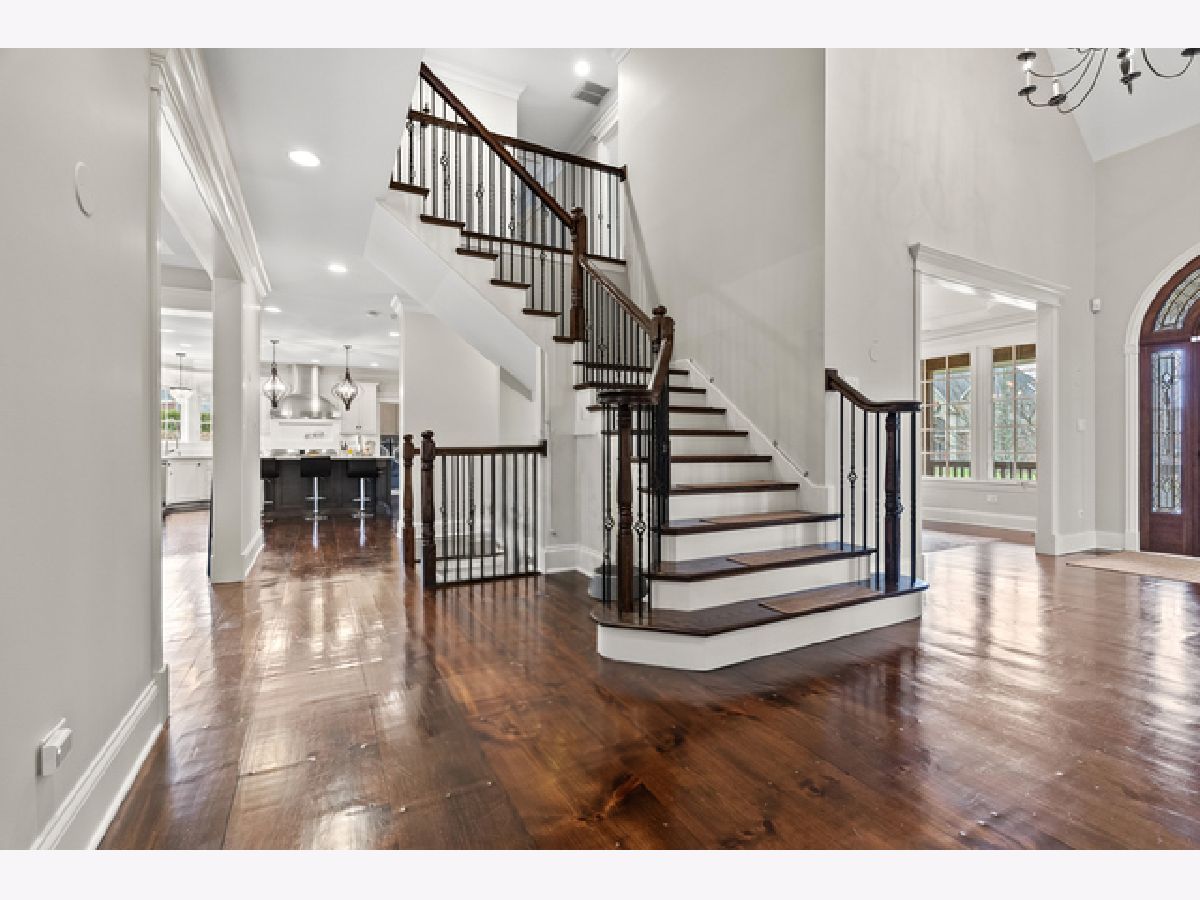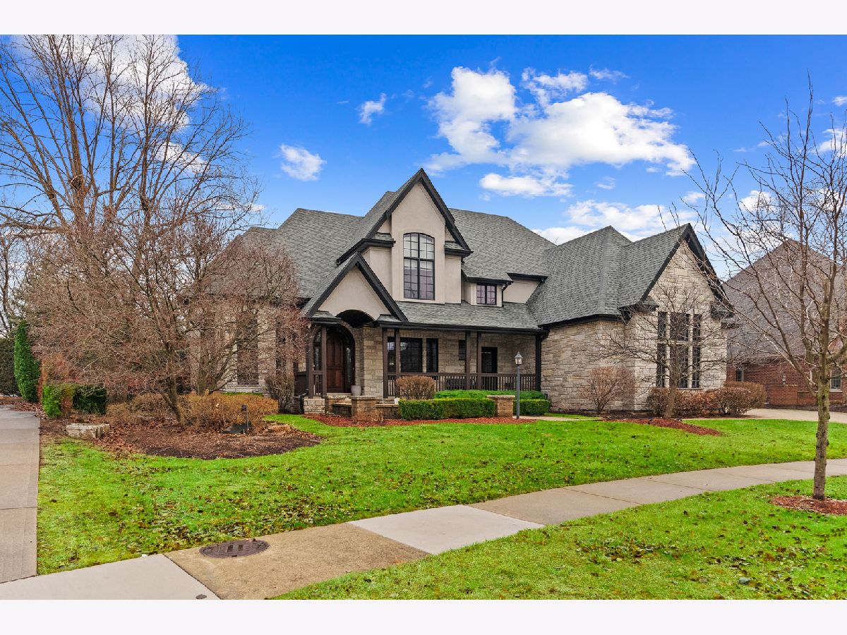 Extraordinary custom home - situated in highly sought-after Bunratty Estates of Orland Park - is the definition of refined luxury and timeless design. Truly impeccably maintained, this home offers the look and feel of quality new construction. Stunning brick exterior, enhanced by custom stonework, a full paver driveway, and a beautiful covered front porch lead you to the custom front door, which opens to a dramatic two-story foyer. The living room is awe-inspiring with oversized windows bringing in the beauty of the outdoor landscape. The spacious dining room exudes elegance and features a tray ceiling. Throughout the home, there are wide knotted hardwood floors, 10-foot ceilings on the main level, designer lighting and high-end finishes that reflect thoughtful craftsmanship and superior quality. Every space feels intentional and welcoming in this home! The gourmet kitchen features custom white cabinetry, quartz and quartzite countertops, a large center island with sink, a walk-in pantry, and an exceptional suite of premium appliances including a Wolf range, large Sub-Zero refrigerator, built-in Miele coffee system, wine refrigerator, warming drawer and new Bosch dishwasher (2025). The adjoining breakfast room is light and bright with a patio door to a lovely backyard retreat. The family room is warm and inviting with a statement stone fireplace and tray ceiling - perfect for everyday living and entertaining. The very spacious main floor office is also suitable for a 6th bedroom! A large, well-designed laundry room with sink and abundant cabinetry, along with a separate spacious mudroom with access from both the garage and front porch, provide everyday functionality. A grand staircase with wrought iron railings leads to the second level, where all five bedrooms are spacious and feature hardwood floors. The primary suite is a private sanctuary with two walk-in closets including a California Closet, and a luxurious spa-inspired bath with vaulted ceilings, double vanity, oversized walk-in shower and freestanding soaking tub. Two additional bedrooms share a beautifully appointed attached bath, each with their own separate vanities, with one offering an exceptionally large bonus room ideal for even more storage, additional living space, den and more. Another bedroom features vaulted ceilings and a private en-suite bath. A convenient 9' x 5' hall closet completes the upper level. The full basement, with rough-in plumbing for a full bath and direct access to the heated garage (also equipped with a Tesla charger that is included), offers endless possibilities. Additional features include: dual HVAC systems, Nest thermostats, sump pump with battery backup and lawn irrigation system. Outdoor living is elevated in the professionally designed backyard featuring a full paver brick patio and custom stone fireplace - an ideal setting for relaxing or entertaining. All of this and a NEW ROOF, gutters and fascia (2025). This sophisticated home, which showcases curated design, is just a short stroll to Bunratty Park and minutes to all the Orland Park area has to offer! View the virtual 3D tour!