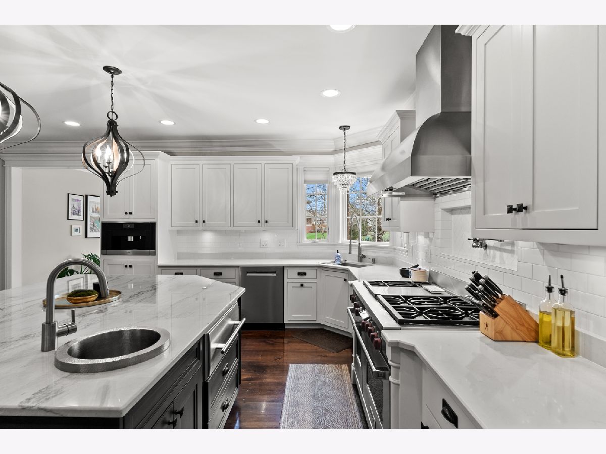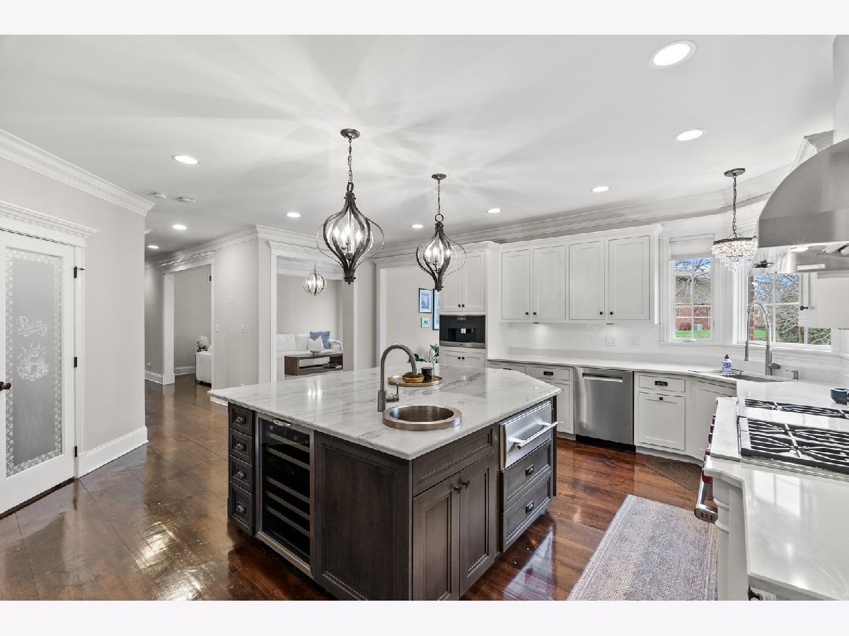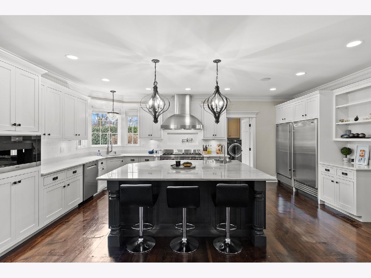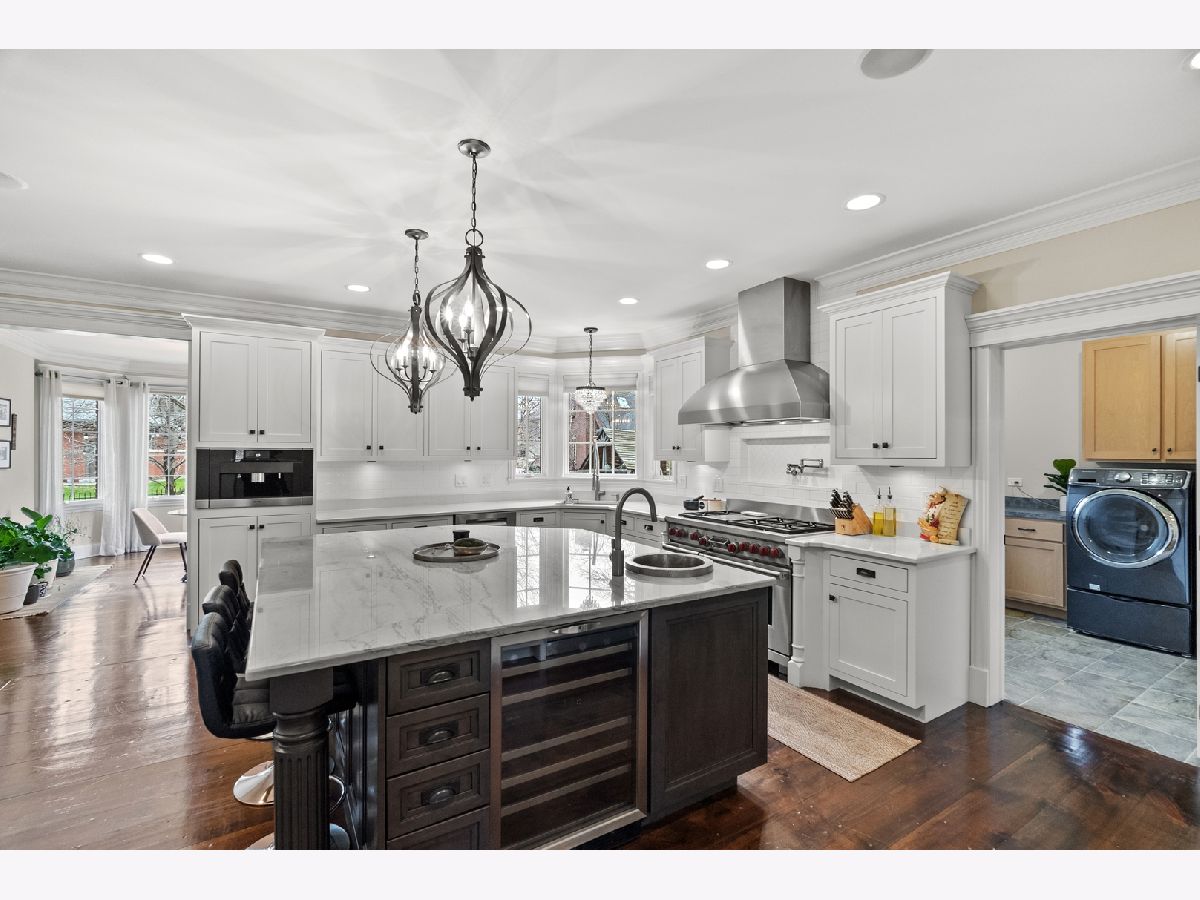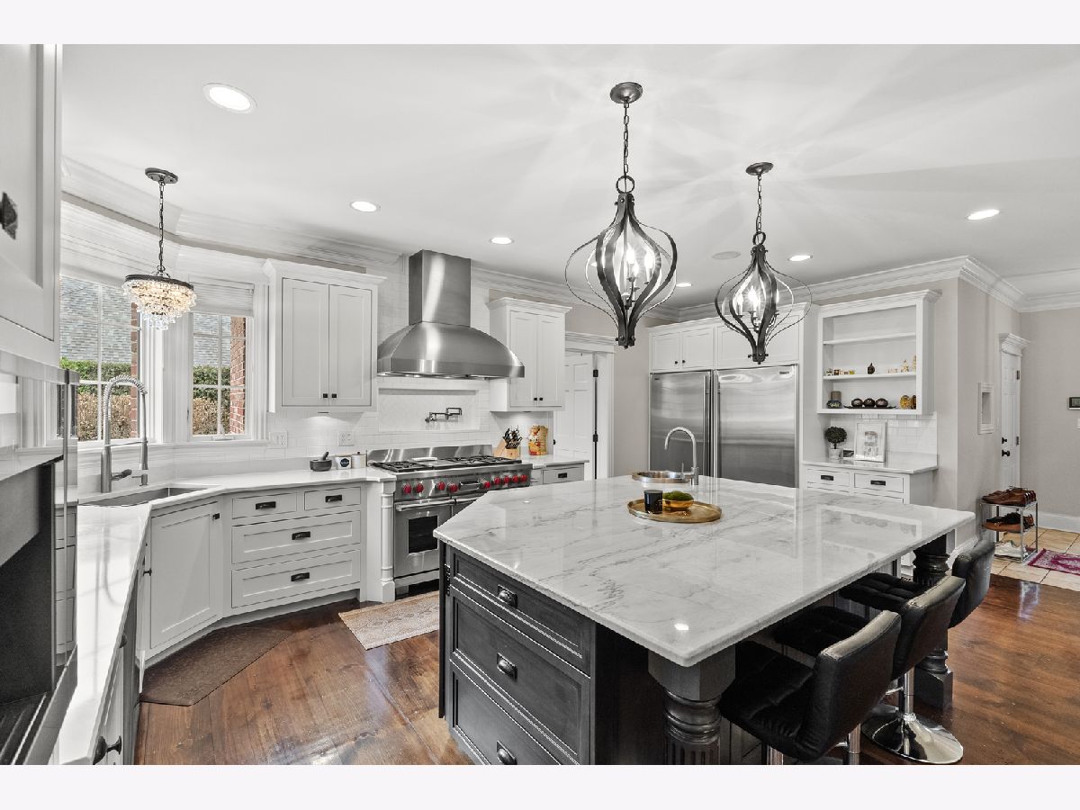 Extraordinary custom home - situated in highly sought-after Bunratty Estates of Orland Park - is the definition of refined luxury and timeless design. Truly impeccably maintained, this home offers the look and feel of quality new construction. Stunning brick exterior, enhanced by custom stonework, a full paver driveway, and a beautiful covered front porch lead you to the custom front door, which opens to a dramatic two-story foyer. The living room is awe-inspiring with oversized windows bringing in the beauty of the outdoor landscape. The spacious dining room exudes elegance and features a tray ceiling. Throughout the home, there are wide knotted hardwood floors, 10-foot ceilings on the main level, designer lighting and high-end finishes that reflect thoughtful craftsmanship and superior quality. Every space feels intentional and welcoming in this home! The gourmet kitchen features custom white cabinetry, quartz and quartzite countertops, a large center island with sink, a walk-in pantry, and an exceptional suite of premium appliances including a Wolf range, large Sub-Zero refrigerator, built-in Miele coffee system, wine refrigerator, warming drawer and new Bosch dishwasher (2025). The adjoining breakfast room is light and bright with a patio door to a lovely backyard retreat. The family room is warm and inviting with a statement stone fireplace and tray ceiling - perfect for everyday living and entertaining. The very spacious main floor office is also suitable for a 6th bedroom! A large, well-designed laundry room with sink and abundant cabinetry, along with a separate spacious mudroom with access from both the garage and front porch, provide everyday functionality. A grand staircase with wrought iron railings leads to the second level, where all five bedrooms are spacious and feature hardwood floors. The primary suite is a private sanctuary with two walk-in closets including a California Closet, and a luxurious spa-inspired bath with vaulted ceilings, double vanity, oversized walk-in shower and freestanding soaking tub. Two additional bedrooms share a beautifully appointed attached bath, each with their own separate vanities, with one offering an exceptionally large bonus room ideal for even more storage, additional living space, den and more. Another bedroom features vaulted ceilings and a private en-suite bath. A convenient 9' x 5' hall closet completes the upper level. The full basement, with rough-in plumbing for a full bath and direct access to the heated garage (also equipped with a Tesla charger that is included), offers endless possibilities. Additional features include: dual HVAC systems, Nest thermostats, sump pump with battery backup and lawn irrigation system. Outdoor living is elevated in the professionally designed backyard featuring a full paver brick patio and custom stone fireplace - an ideal setting for relaxing or entertaining. All of this and a NEW ROOF, gutters and fascia (2025). This sophisticated home, which showcases curated design, is just a short stroll to Bunratty Park and minutes to all the Orland Park area has to offer! View the virtual 3D tour!