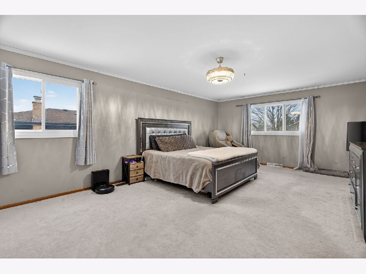 Situated on a spacious .32-acre lot in Old Oak Estates, this home offers 7 bedrooms and 4 full bathrooms with flexible living spaces throughout. The main level features a welcoming living room with French door entry, a formal dining room for entertaining, and a kitchen complete with Corian countertops, stainless steel appliances, a new refrigerator, and a casual eating area for everyday meals. The family room has a cozy fireplace, while a main-level bedroom, full bathroom, and laundry room complete this floor. Upstairs, the primary suite includes two closets, custom built-in storage, and a private bath with a separate tub and shower. An additional upstairs suite offers a shared bathroom and a large seating area, along with another generously sized bedroom. The finished basement provides even more living space with three bedrooms, a full bathroom, and an open area ideal for entertaining or relaxing. The backyard is truly an entertainer's paradise, featuring a large wood deck with pergola, hot tub, heated pool, outdoor sound system, RGB pool lighting, and an outdoor TV that stays with the home. Recent updates include a new deck, hot tub, and pool (2024); pool heater (2025); refrigerator (2025); stove (2024); dishwasher (2023); washer and dryer (2024); fans (2023); light fixtures (2025); interior paint (2024-2025); water main line replacement (2025); sump pump (2024); new door hardware (2025); two solid core doors in the primary bedroom and basement bedroom (2025); new electrical outlets (2024); and direct network lines run to the office and basement (2025). All windows were replaced in 2017, and the roof was replaced in 2012. Ideally located near shopping, I-355, and Old Oak Country Club, this home offers space, comfort, and convenience in a sought-after neighborhood!