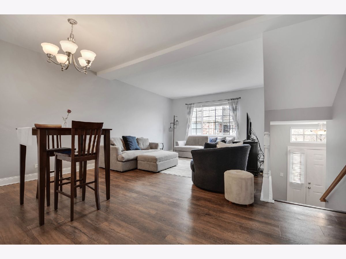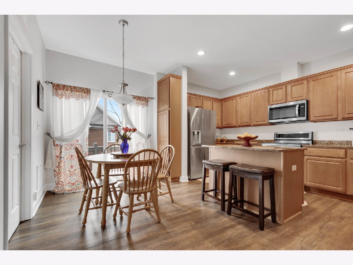 Sunshine's favorite spot in this well maintained, by its current owner, 2-story townhome with basement in a terrific Orland Park Crossing location. Its interior features a gracious & airy step-up main level with 9-foot ceilings. Large living & dining room combo. Spacious eat-in kitchen with plenty of cabinets, granite countertops, hardwood flooring, center island/breakfast bar, casual eating table area, newer stainless steel appliances (dishwasher & microwave 2023), and sliding door to balcony/deck. Convenient main-level laundry room with washing machine (2024) and powder room. Upstairs with master bedroom featuring a walk-in closet and ensuite bathroom remodeled a few years ago with Jacuzzi tub, separate shower, and double-sink vanity. Second bedroom also with walk-in closet and its own private ensuite bathroom. Ground-level lower level with window looking out to quiet grassy courtyard, ideal for extra family room, den, office, or exercise room. Direct access from lower level to 2-car garage in the back.Major mechanical updates provide peace of mind: furnace & AC (2022), water heater (2020). Exterior improvements include new roof, siding, and gutters (2025). Most convenient location within a short 10-minute walking distance to Metra, Mariano's, and nearby shops & restaurants. Loving owner is in the process of moving out of state so seize this opportunity while it lasts!