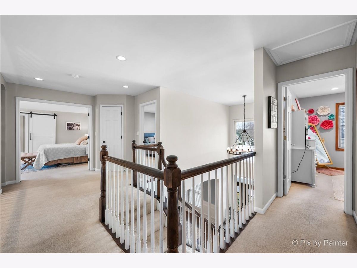 Tucked away on a quiet cul-de-sac in the highly regarded Huntley School District, this beautifully upgraded 4-bedroom, 2.5-bath home is the kind of place where everyday moments turn into lasting memories. At the heart of the home is a stunning, modern kitchen designed for connection and entertaining-featuring quartz countertops, a large island where everyone naturally gathers, marble backsplash, cabinet lighting, soft-close cabinetry, and stainless-steel appliances. Whether it's morning coffee or hosting friends, this space was made to be lived in. Escape to the luxurious primary suite, your own private retreat, featuring a spa-like bathroom with shiplap accents, a soaker tub with a wall-mounted TV, dual vanities, and an extended walk-in shower with multiple heads and surround-sound. The custom-organized walk-in closet adds everyday ease and luxury. Soaring vaulted ceilings, skylights, rich wood floors, and a cozy fireplace anchor the great room, creating a bright, welcoming space to relax and recharge. The finished basement is made for entertaining with a projector, bar, and refrigerator-perfect for movie nights and game days. A charming three-season room offers the perfect spot for morning coffee or evening unwinding, while the cul-de-sac setting provides privacy and peace. Throughout the home, thoughtful upgrades shine-updated light fixtures, recessed lighting, crown molding, board-and-batten accents, custom shelving, and a decorative front door that makes a memorable first impression. This isn't just a home-it's where life happens. Schedule your private showing today before someone else calls it home! ***Showings begin Friday, February 6th at 9am***