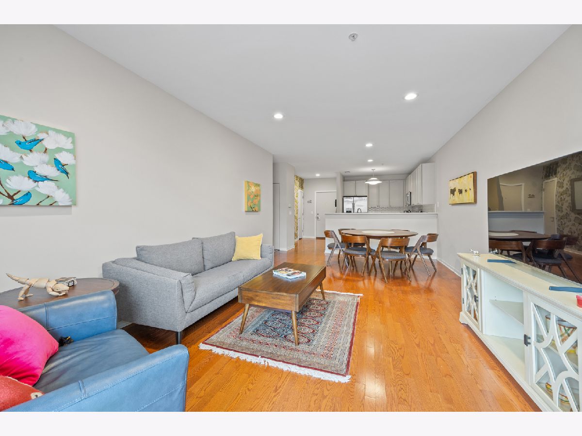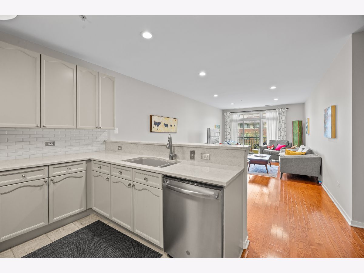 Rare opportunity in the heart of Oak Park-welcome to the Mews. This newer construction 2-bedroom, 2-bath luxury condo puts you right in the middle of it all-just steps to downtown shops, restaurants, the farmers market, Metra/CTA, and everything that makes Oak Park such a great place to live. You're welcomed by a spacious entry foyer that opens into a bright, open-concept living and dining space with hardwood floors throughout. The kitchen is exactly what today's buyers are looking for-quartz countertops, custom cabinetry, stainless steel appliances, a sleek backsplash, and a functional breakfast bar that flows perfectly for everyday living or entertaining. The living area extends out to a private, tree-top balcony-ideal for morning coffee or unwinding at the end of the day. The primary suite features a large layout with an ensuite bath complete with double vanity. A generously sized second bedroom and full guest bath offer great flexibility for guests, work-from-home, or additional living space. In-unit laundry is tucked away for convenience. Additional highlights include elevator access, one indoor garage parking space, a storage unit, and a beautifully maintained common courtyard. HVAC replaced in 2023. Move-in ready and in an unbeatable location-this is one you don't want to miss.