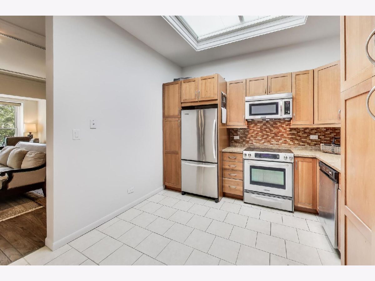 Vintage Penthouse Vibes in Old Town. Move right into this stylish 2 bed / 2 bath top-floor penthouse with a private 351 sqft. deck-your own outdoor oasis for summer hangs, rooftop dinners, or watching those epic Chicago sunsets. Inside, the home feels bright and airy with 12'ft high ceilings, hardwood floors, crown molding, and a cozy wood-burning fireplace. The kitchen is a total vibe-maple cabinets, granite counters, stainless steel electric appliances, and a skylight that floods the space with sunshine. In-unit washer and dryer. The primary suite is spacious with great closets and its own bathroom, while the second bedroom gives you flexibility for guests, a WFH office, or a creative space. Set in a 8-unit boutique vintage building, you'll love the privacy and charm while being right in the heart of Old Town. Walk to your favorite coffee shops, restaurants, nightlife, Second City, the zoo, and even the lake. Easy commuting with the Sedgwick Brown & Purple Line, Redline and bus routes nearby. Rental parking is available across the street. This is a rare chance to snag a character-filled penthouse with all the lifestyle perks-perfect for a first-time buyer who wants location, style, and personality. Investor friendly building rentals allowed.