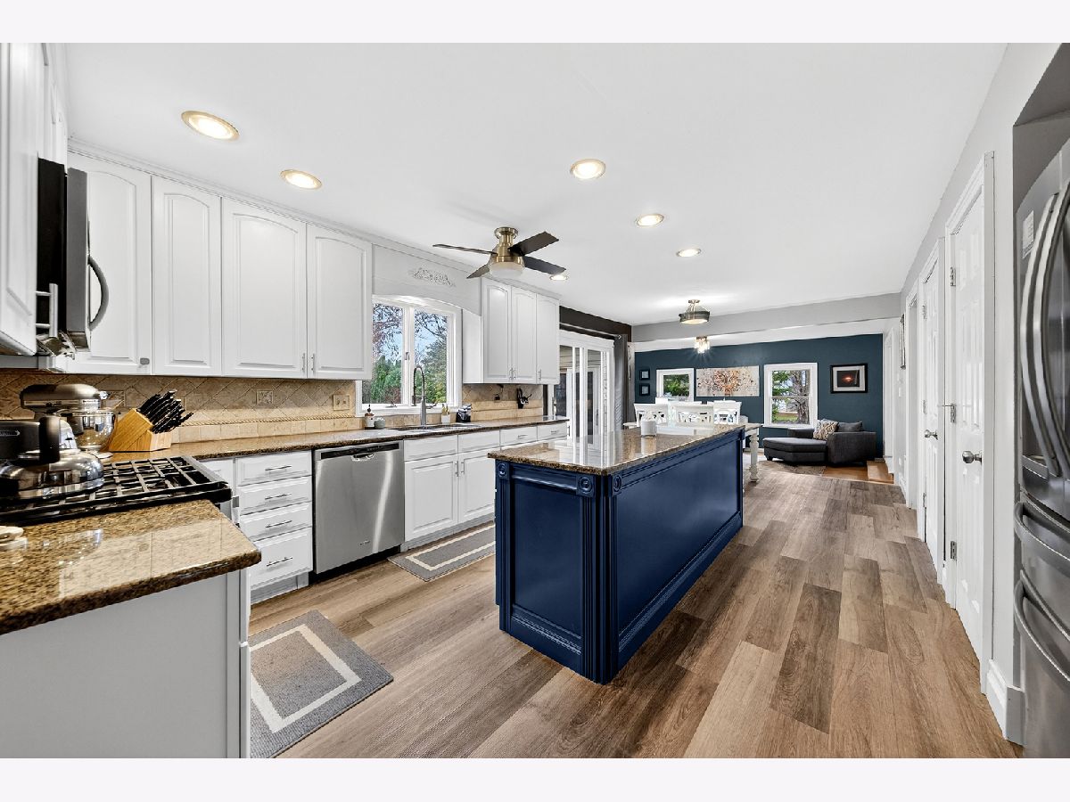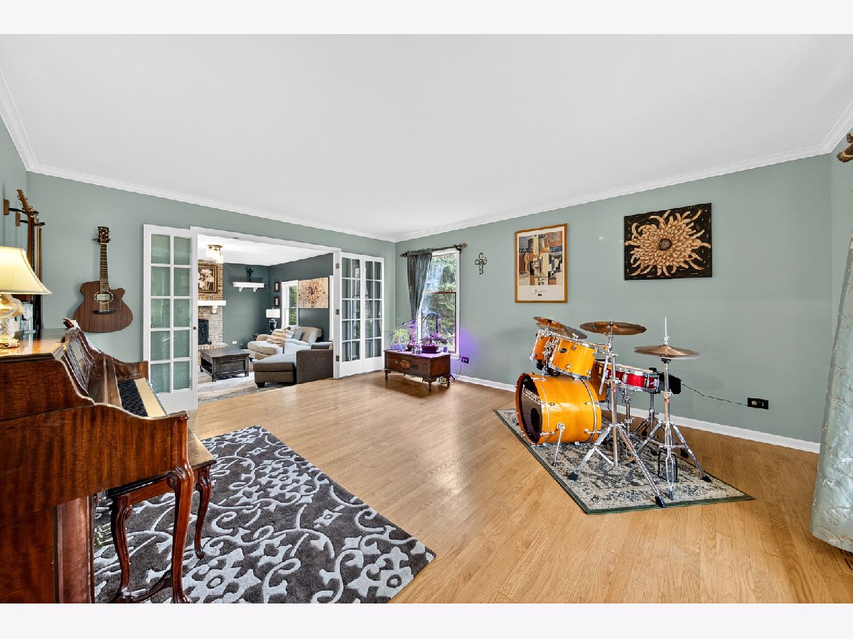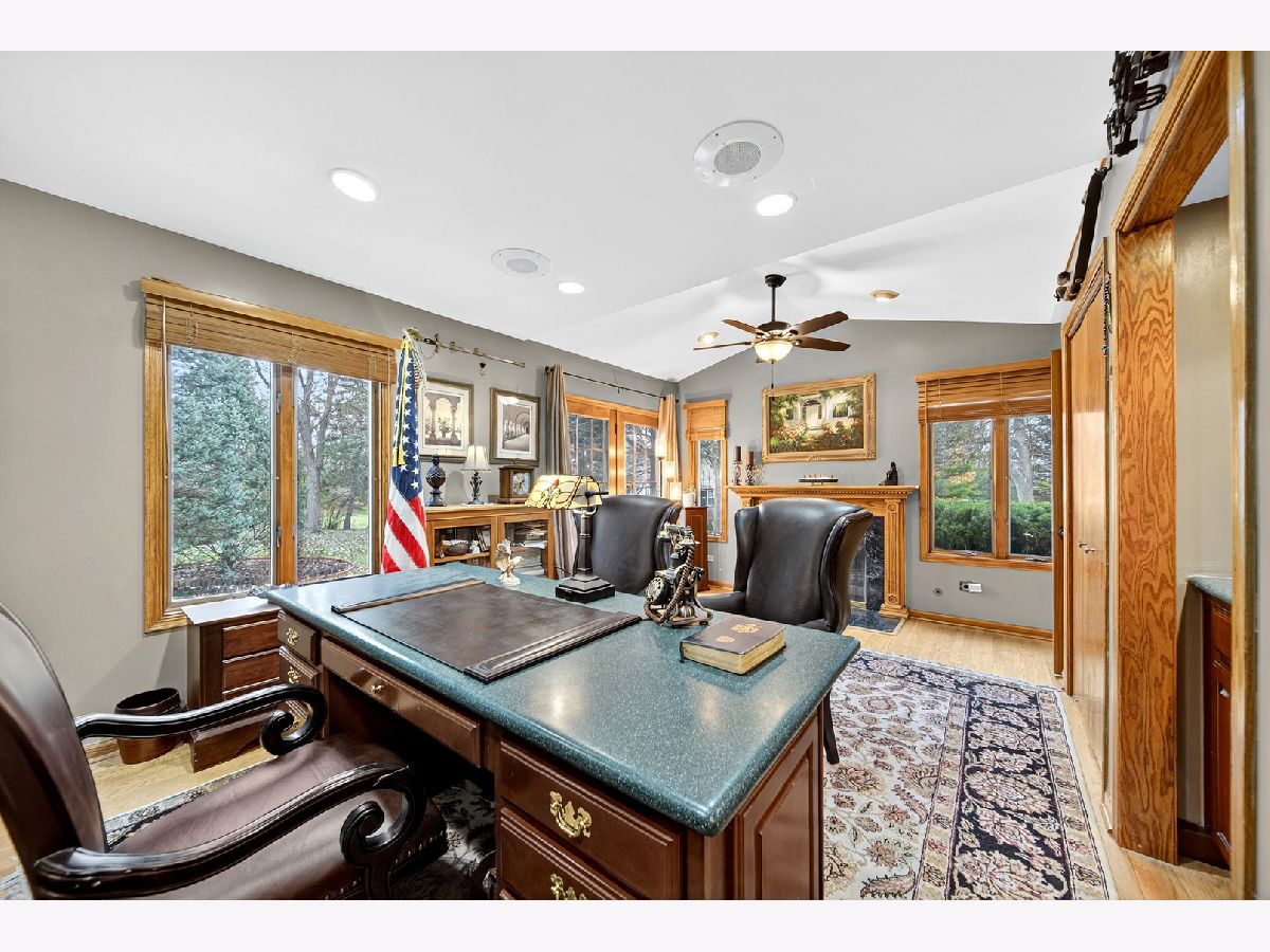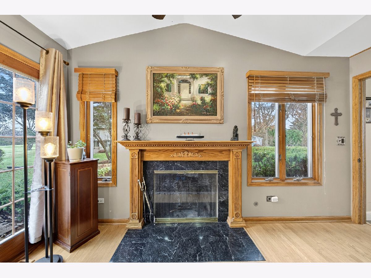 Welcome to Interlaken Meadows - one of Libertyville's most desirable neighborhoods, where timeless Colonial architecture meets modern comfort on a quiet cul-de-sac. This perfectly situated home offers over 3,300 square feet of living space, blending classic character with high-end updates throughout. Enjoy peace of mind with a new front door (2026); Freshly painted front hallway (2026); Andersen windows (2025); serviced chimneys with updated flashing (2024), garage door (2022); light fixtures and recessed lighting (2024) enhance the home's warm, inviting atmosphere, water heater (2025); AC system (2024), & a refinished brick patio (2024). Spacious kitchen-the true heart of the home-includes luxury vinyl plank flooring (2024), stainless-steel appliances (2022), an oversized island, and ample space for gathering and entertaining. Mechanicals are in excellent condition, including an Airease furnace (2015 & recently serviced 2025) with humidifier, water softener (2013). The main level welcomes you with slate-tile entryways (2025), original hardwood floors throughout the living, dining, and family rooms, and two wood-burning fireplaces-one in the family room and another in a versatile bedroom-turned-office (convertible with included parts). Two convenient half baths complete the first floor, and the piano remains, adding a distinctive focal point. Upstairs, four spacious bedrooms provide comfortable living space. The expansive 4-room primary suite with a massive, newly renovated en-suite bath (2025 - final phase of renovation to be completed by close) features a high-end Thomasville vanity with double sinks, Moen fixtures, and three sunlit windows facing east for beautiful morning light. A thoughtfully expanded walk-in closet provides direct access to the laundry area, complete with washer, dryer, and utility sink-a rare and convenient layout blending comfort and functionality. The 2nd full bath is fully renovated featuring modern Italian tile, a Moen deep-soak tub & fixtures, and an inch-and-a-quarter Italian granite vanity top-a perfect blend of style and durability. The full, partially finished basement expands your living options, ideal for recreation, storage, etc. Outside, enjoy the charming front porch for sunset views and a private backyard retreat with open porch, brick patio, perfect in summer & early fall for outdoor entertaining. Classic brick and aluminum siding complement the home's timeless curb appeal. Convenient bus stop right next door, located within the highly acclaimed Libertyville School Districts and close to downtown Libertyville shops, parks, dining, and commuter routes. This Interlaken Meadows Colonial offers a perfect combination of elevated living, everyday comfort, and can't-beat location. Homes in this sought-after subdivision rarely stay on the market long, and this one is strategically priced for today's market.