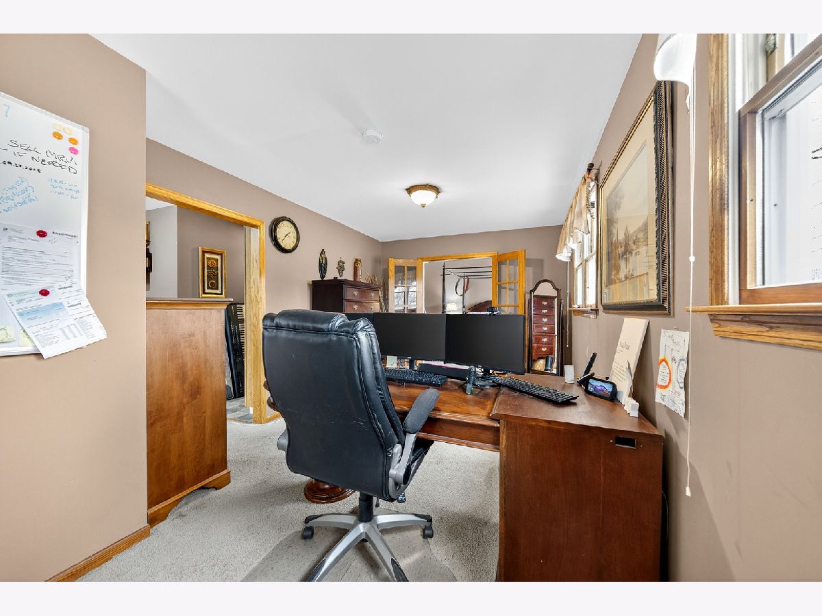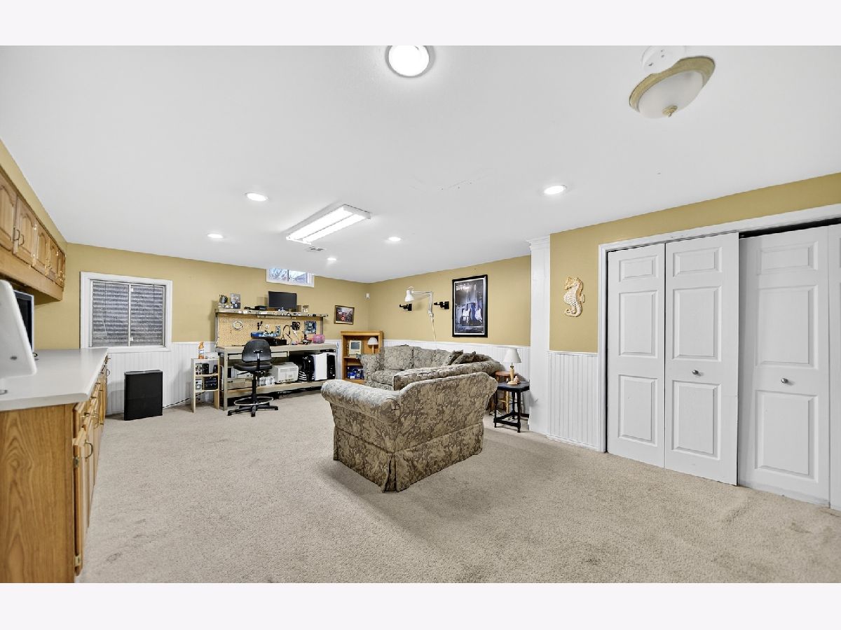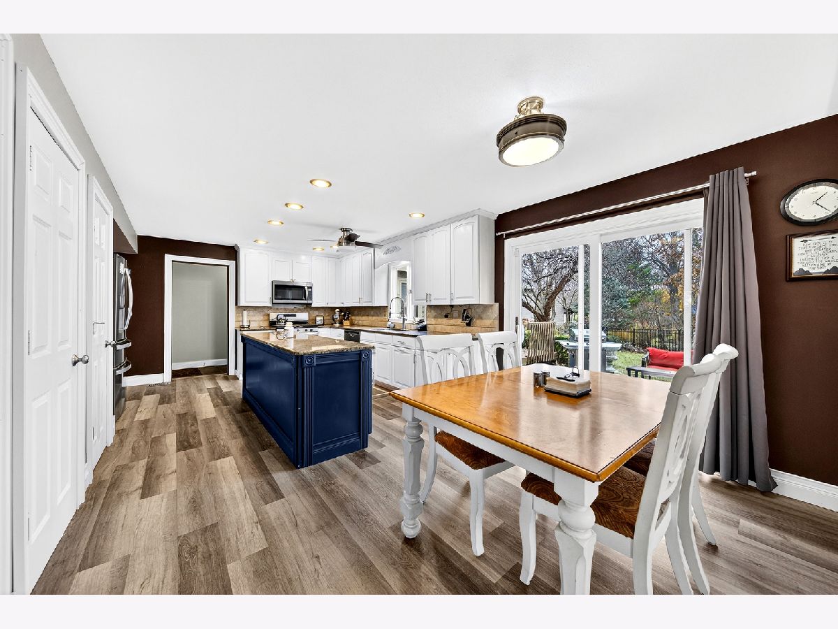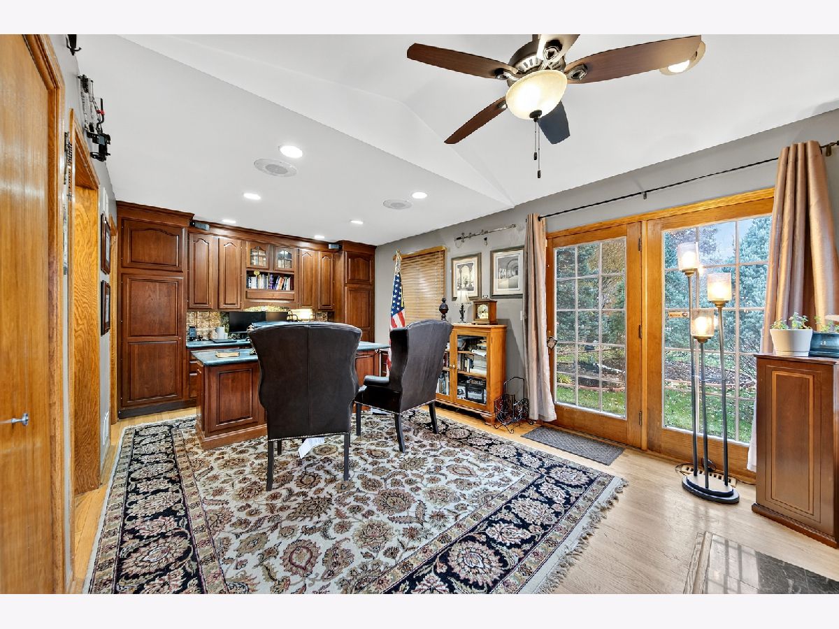 Welcome to Interlaken Meadows - one of Libertyville's most desirable neighborhoods, where timeless Colonial architecture meets modern comfort on a quiet cul-de-sac. This perfectly situated home offers over 3,300 square feet of living space, blending classic character with high-end updates throughout. Enjoy peace of mind with a new front door (2026); Freshly painted front hallway (2026); Andersen windows (2025); serviced chimneys with updated flashing (2024), garage door (2022); light fixtures and recessed lighting (2024) enhance the home's warm, inviting atmosphere, water heater (2025); AC system (2024), & a refinished brick patio (2024). Spacious kitchen-the true heart of the home-includes luxury vinyl plank flooring (2024), stainless-steel appliances (2022), an oversized island, and ample space for gathering and entertaining. Mechanicals are in excellent condition, including an Airease furnace (2015 & recently serviced 2025) with humidifier, water softener (2013). The main level welcomes you with slate-tile entryways (2025), original hardwood floors throughout the living, dining, and family rooms, and two wood-burning fireplaces-one in the family room and another in a versatile bedroom-turned-office (convertible with included parts). Two convenient half baths complete the first floor, and the piano remains, adding a distinctive focal point. Upstairs, four spacious bedrooms provide comfortable living space. The expansive 4-room primary suite with a massive, newly renovated en-suite bath (2025 - final phase of renovation to be completed by close) features a high-end Thomasville vanity with double sinks, Moen fixtures, and three sunlit windows facing east for beautiful morning light. A thoughtfully expanded walk-in closet provides direct access to the laundry area, complete with washer, dryer, and utility sink-a rare and convenient layout blending comfort and functionality. The 2nd full bath is fully renovated featuring modern Italian tile, a Moen deep-soak tub & fixtures, and an inch-and-a-quarter Italian granite vanity top-a perfect blend of style and durability. The full, partially finished basement expands your living options, ideal for recreation, storage, etc. Outside, enjoy the charming front porch for sunset views and a private backyard retreat with open porch, brick patio, perfect in summer & early fall for outdoor entertaining. Classic brick and aluminum siding complement the home's timeless curb appeal. Convenient bus stop right next door, located within the highly acclaimed Libertyville School Districts and close to downtown Libertyville shops, parks, dining, and commuter routes. This Interlaken Meadows Colonial offers a perfect combination of elevated living, everyday comfort, and can't-beat location. Homes in this sought-after subdivision rarely stay on the market long, and this one is strategically priced for today's market.
