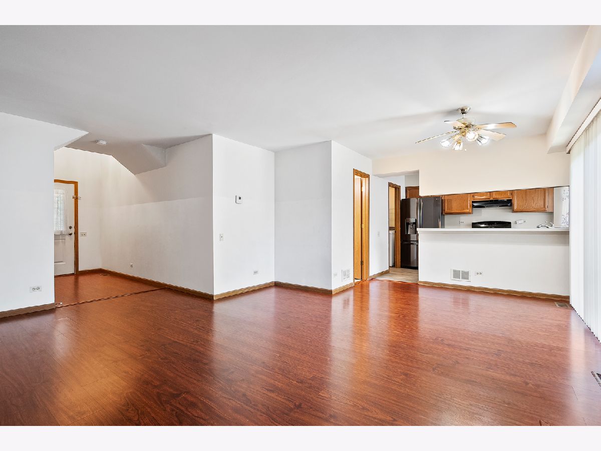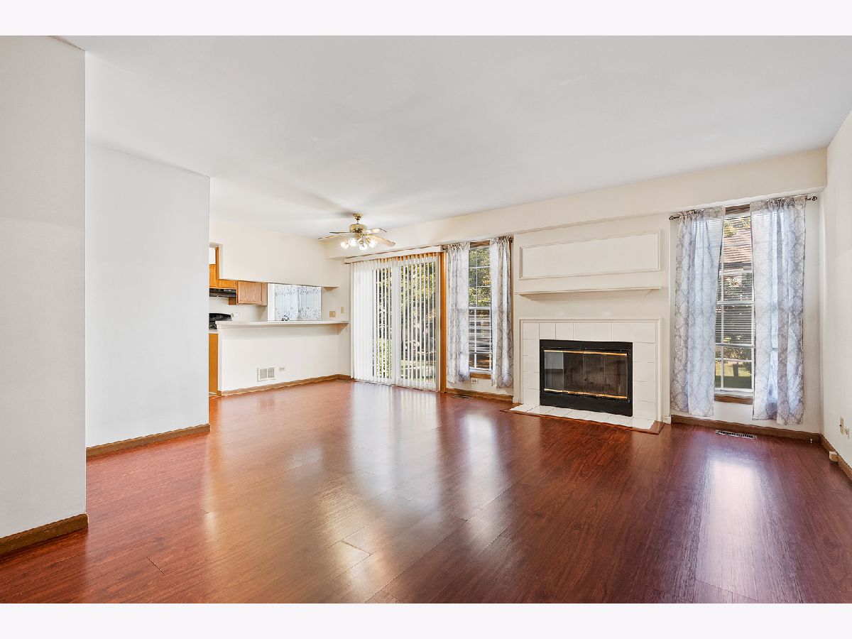 Great location and great townhouse features laminate wood floors throughout. Spacious 3 bedrooms, 2.1 Baths, 2 car garage and finished basement. New washer and new refrigerator. Living room with cozy fireplace. Dining room with sliders to patio. Master suite with deep soaking tub, separate shower and double sinks. Excellent Fremd schools! Walk to shopping, restaurants., grocery, childcare and bank.