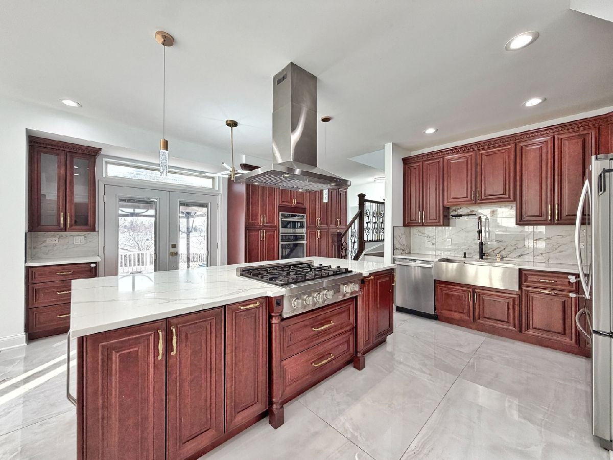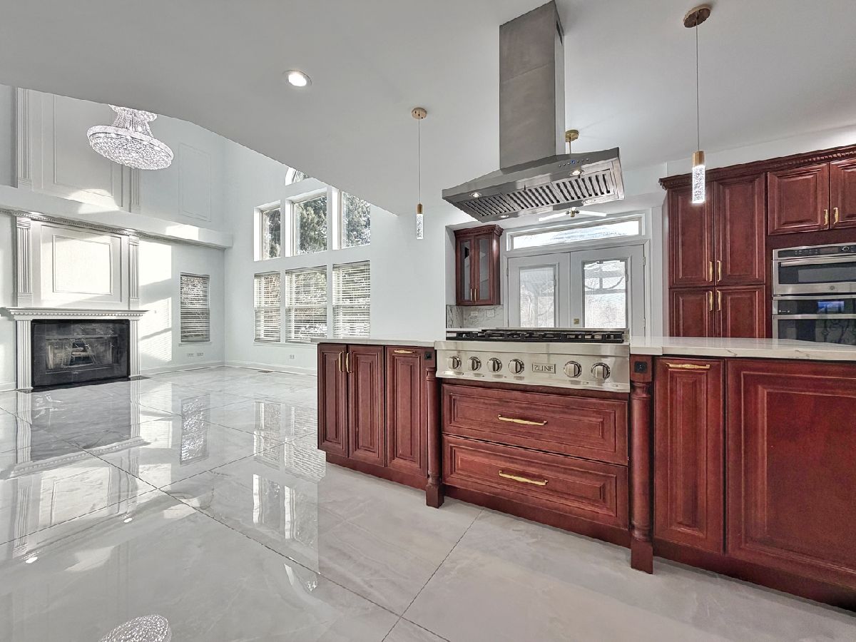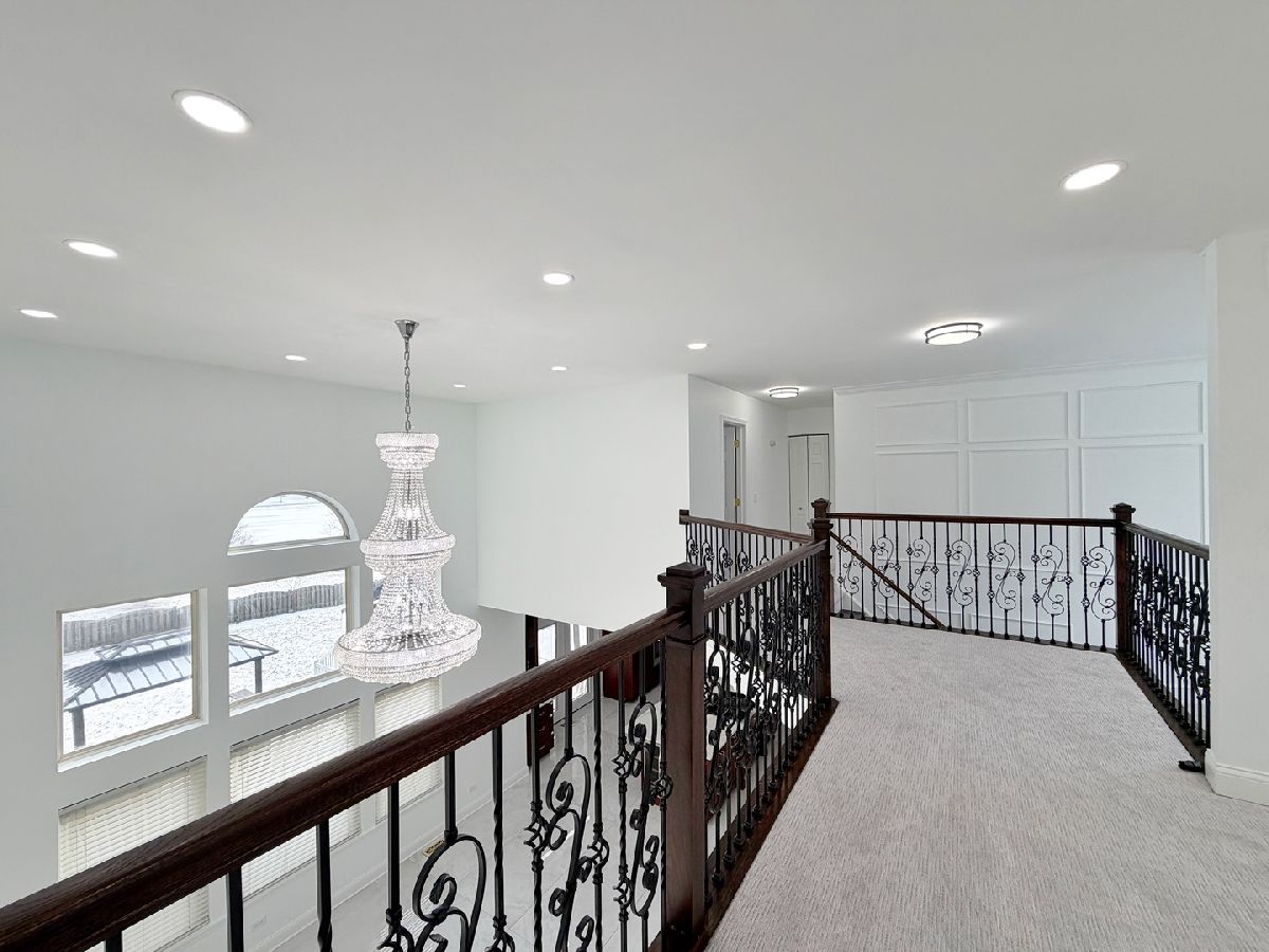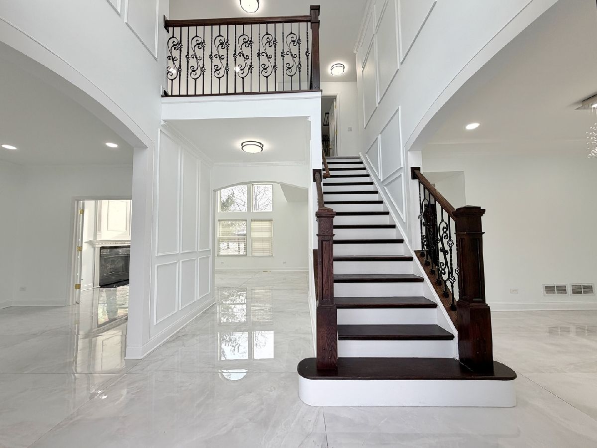 Complete top to bottom renovation offering a truly refined living experience. This exceptional home has quite the presence, which features a brand new massive kitchen, beautifully updated bathrooms, and elegant finishes throughout. The first floor is adorned with large format tile, creating a seamless and sophisticated look that enhances both style and durability. With all components less than 10 year old, this residence is a solid, move in ready, inside and out. Roof and windows 2017, AC 2017, sump pump 2020, tankless water heater ~2024, and new furnace ~2023. The home boasts a timeless brick facade, adding both curb appeal and peace of mind. The first floor includes a private ensuite bedroom with a walk in shower, ideal for guests or multi generational living. This home offers four bedrooms plus an expansive loft that can easily be converted into a fifth bedroom should the next family require it. The designer kitchen is a true showstopper, featuring high end appliances, a statement island, and quartz countertops. Elegant glass French doors lead from the family room into the living room, where a two story foyer, gas fireplace, stunning chandelier, and oversized windows create a dramatic yet inviting atmosphere filled with natural light. The second level can be accessed from both the front staircase and the kitchen staircase and features three spacious bedrooms and a large loft overlooking the family room. The luxurious primary suite is massive, offering a private spa inspired bath with a freestanding soaking tub, separate shower, dual vanities, and an impressive custom built closet. A convenient second floor laundry chute adds thoughtful functionality. The fully finished basement extends the living space and is ideal for entertaining, complete with a stunning oak bar and a full bathroom with a walk in shower. Outdoors, enjoy serene water views from the concrete patio with a beautiful gazebo, a fenced yard for added privacy, and a gas hookup ready for your grill, perfect for effortless outdoor entertaining. This is the home you have been waiting for, offering elegance, comfort, and true move in readiness with a peace of mind!