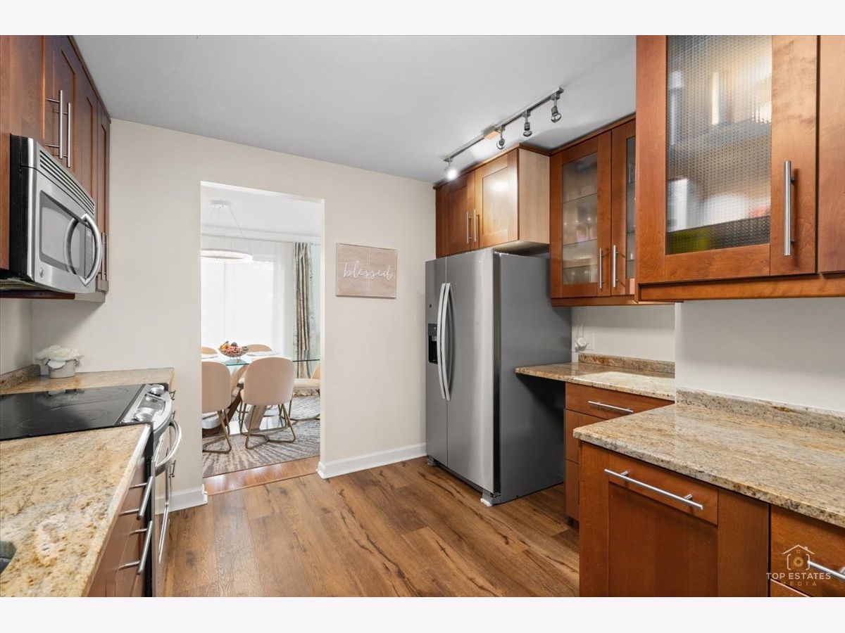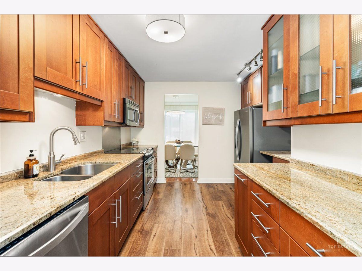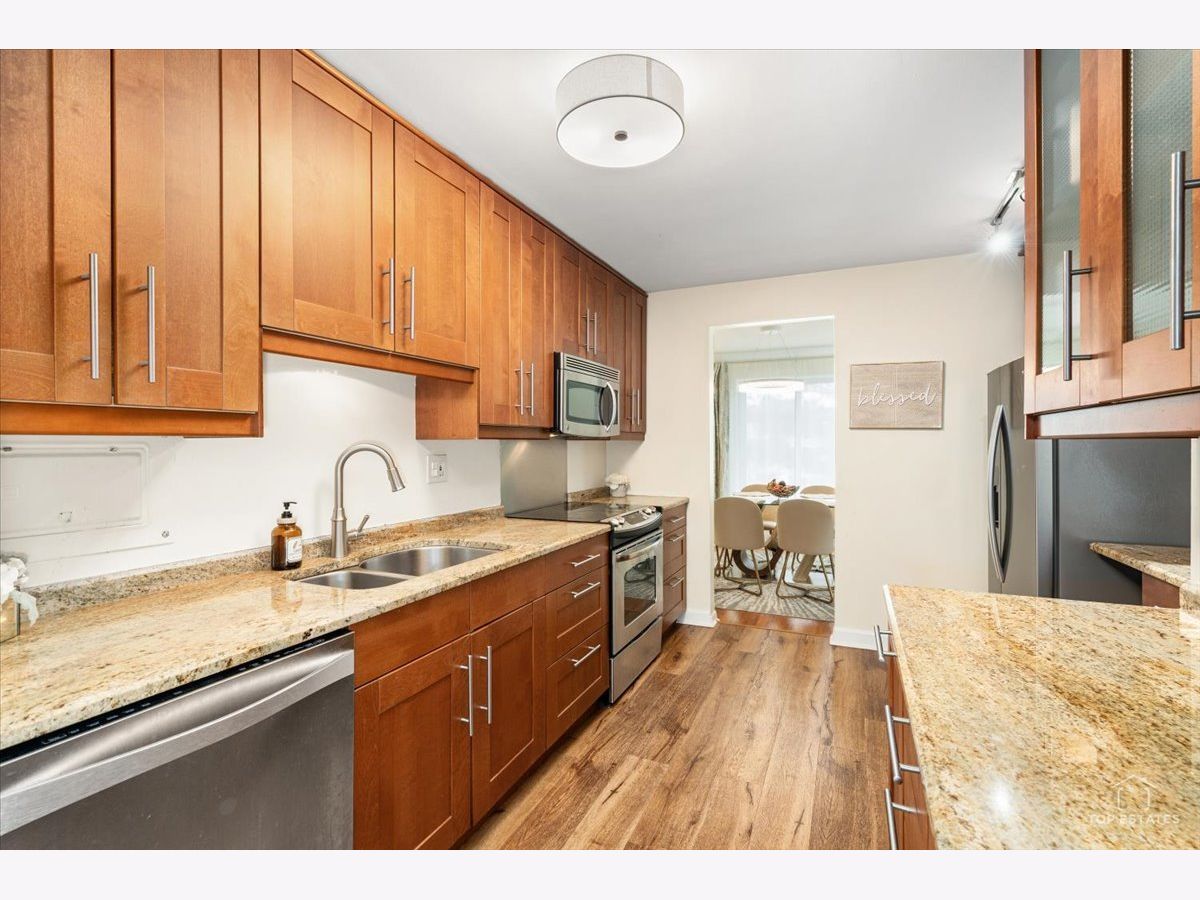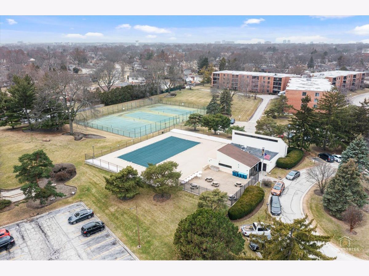 This is the one you've been waiting for! Beautifully updated and spacious 3-bedroom, 2-bath end unit (third bedroom currently used as a den/office) offering privacy, style, and impressive upgrades throughout. The remodeled kitchen features 42" soft-close cabinetry, granite countertops, stainless steel appliances, and newer flooring-perfect for everyday living and entertaining. The generous primary suite (19x11) includes a walk-in closet and private balcony access, while the spa-inspired primary bath boasts an oversized walk-in shower with handheld rain head, body jets, and built-in linen closet. The expansive living and dining area showcases newer engineered wood flooring, elegant crown molding, updated light fixtures. Two sliding doors open to a large balcony overlooking a serene, park-like setting, complete with an enclosed dry bar and mini fridge-ideal for entertaining. Additional updates include newer refrigerator, dishwasher, and disposal. Enjoy resort-style amenities including an exercise facility, outdoor pool, clubhouse, party room, tennis courts, extra storage, and underground garage parking. Prime location just minutes from vibrant downtown Arlington Heights dining, shopping, and entertainment, all within award-winning school districts-welcome home! **Home is being sold as-is**