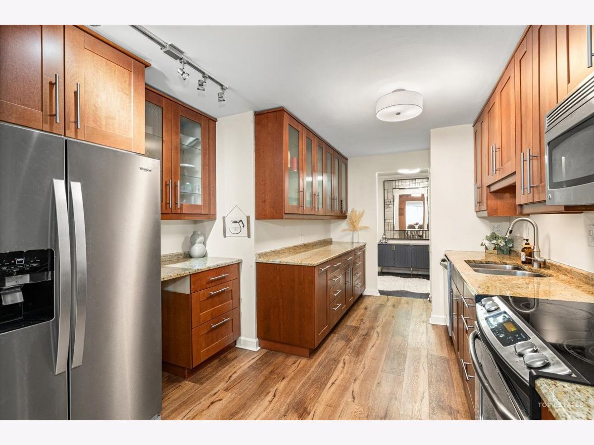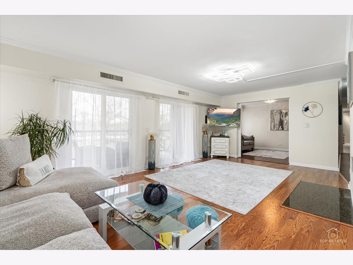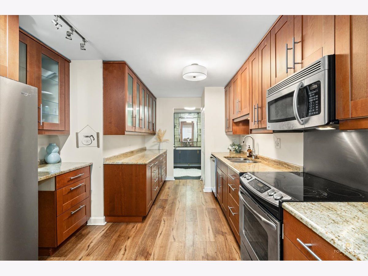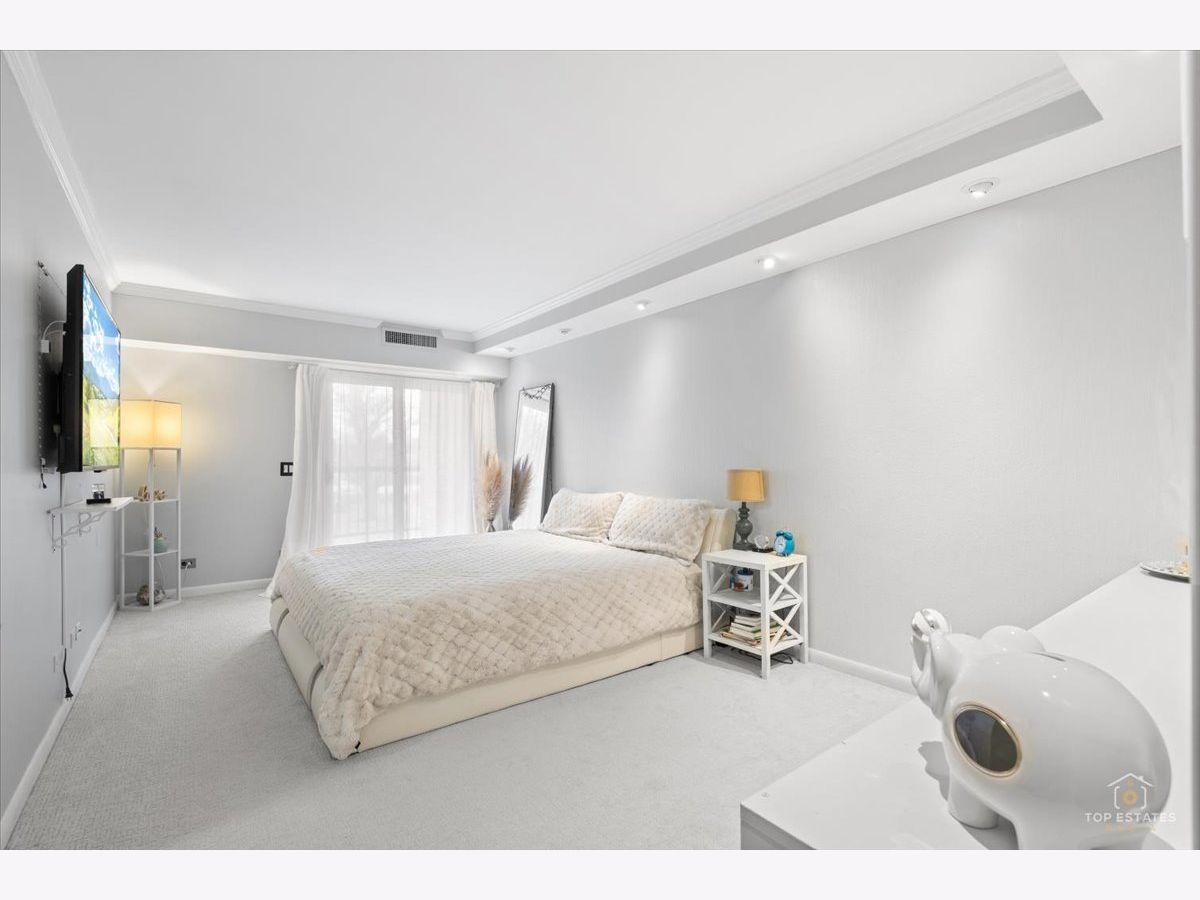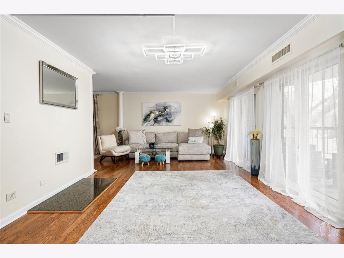 This is the one you've been waiting for! Beautifully updated and spacious 3-bedroom, 2-bath end unit (third bedroom currently used as a den/office) offering privacy, style, and impressive upgrades throughout. The remodeled kitchen features 42" soft-close cabinetry, granite countertops, stainless steel appliances, and newer flooring-perfect for everyday living and entertaining. The generous primary suite (19x11) includes a walk-in closet and private balcony access, while the spa-inspired primary bath boasts an oversized walk-in shower with handheld rain head, body jets, and built-in linen closet. The expansive living and dining area showcases newer engineered wood flooring, elegant crown molding, updated light fixtures. Two sliding doors open to a large balcony overlooking a serene, park-like setting, complete with an enclosed dry bar and mini fridge-ideal for entertaining. Additional updates include newer refrigerator, dishwasher, and disposal. Enjoy resort-style amenities including an exercise facility, outdoor pool, clubhouse, party room, tennis courts, extra storage, and underground garage parking. Prime location just minutes from vibrant downtown Arlington Heights dining, shopping, and entertainment, all within award-winning school districts-welcome home! **Home is being sold as-is**
