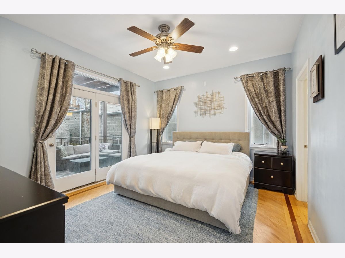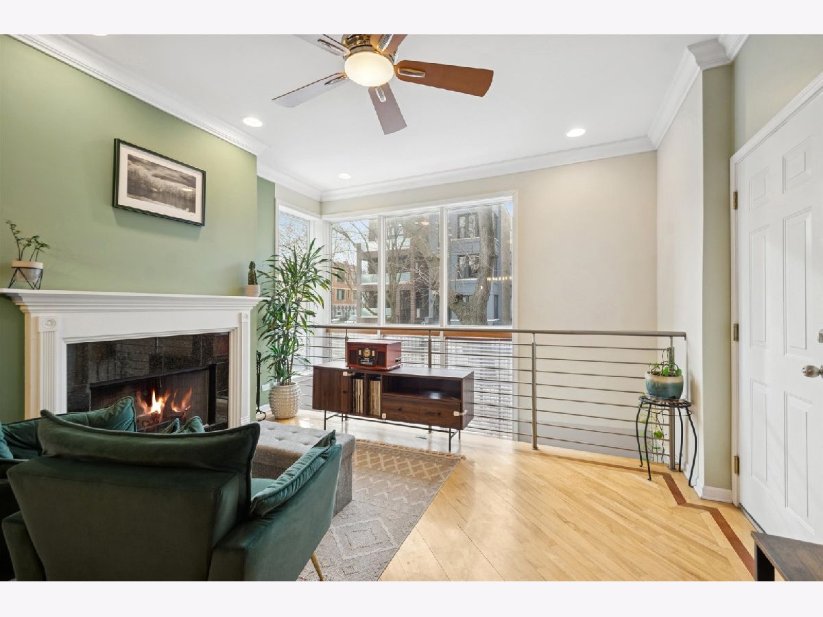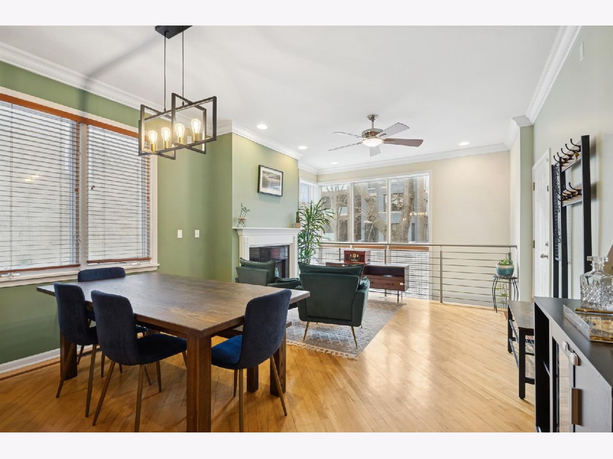 The home you have been waiting for! Beautiful 3 bed / 3 bath duplex down. This expansive, light-filled home welcomes you with a dramatic two-story wall of windows that floods the main level with natural light. The living and dining area features a cozy fireplace that flows seamlessly into the large, open kitchen with peninsula seating. The generously sized primary suite offers a walk-in closet with Elfa closet system, bathroom with dual vanity, jet tub, shower, and direct access to a large private deck overlooking the backyard. A second bedroom and a full hall bath complete the main level. The bright and oversized lower-level family room provides exceptional flexible living space that includes a second fireplace and access to a private front patio. A third bedroom, full bath, and dedicated laundry room with side-by-side washer and dryer make this level ideal for guests, a home office, or additional recreation space. Extensive recent updates include newer mechanicals and appliances - including furnace (2022), AC (2023), washer and dryer (2023), refrigerator (2023), dishwasher (2023), new sump pump with backup battery and ejector pump (2025) - offering true move-in-ready peace of mind. One garage parking space and additional storage closet included. All of this in an unbeatable location that is walking distance to multiple Blue Line stops, with easy access to Wicker Park, Bucktown, neighborhood parks, top-rated dining, coffee shops, and shopping.