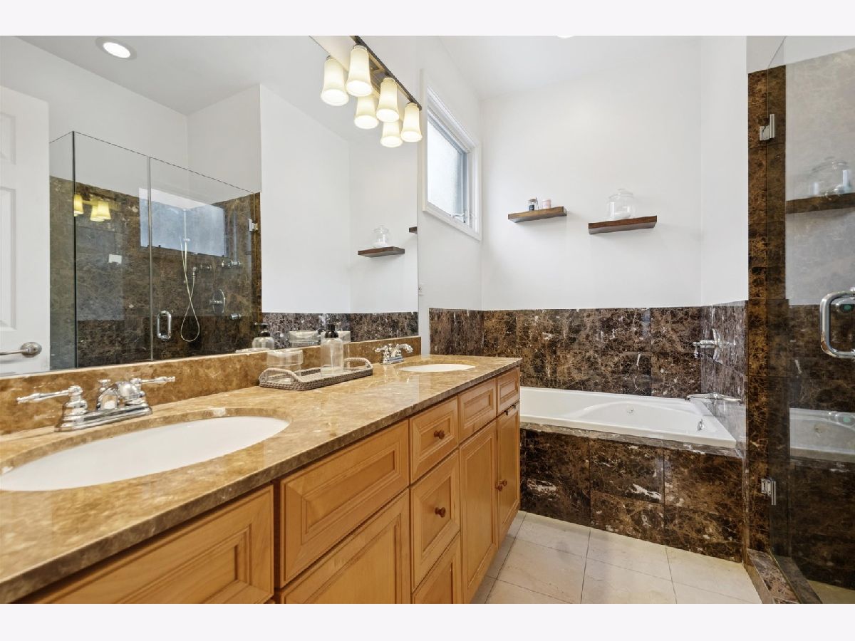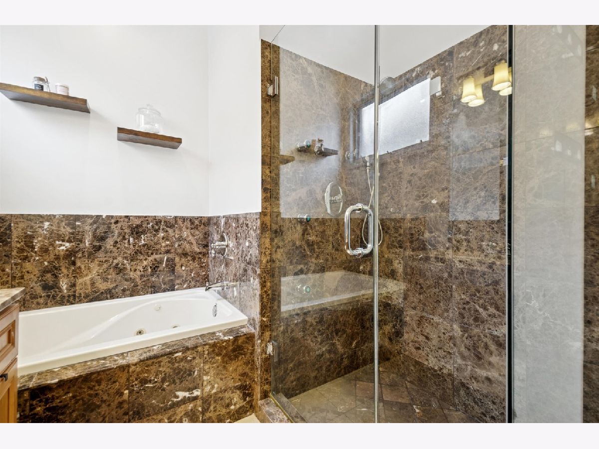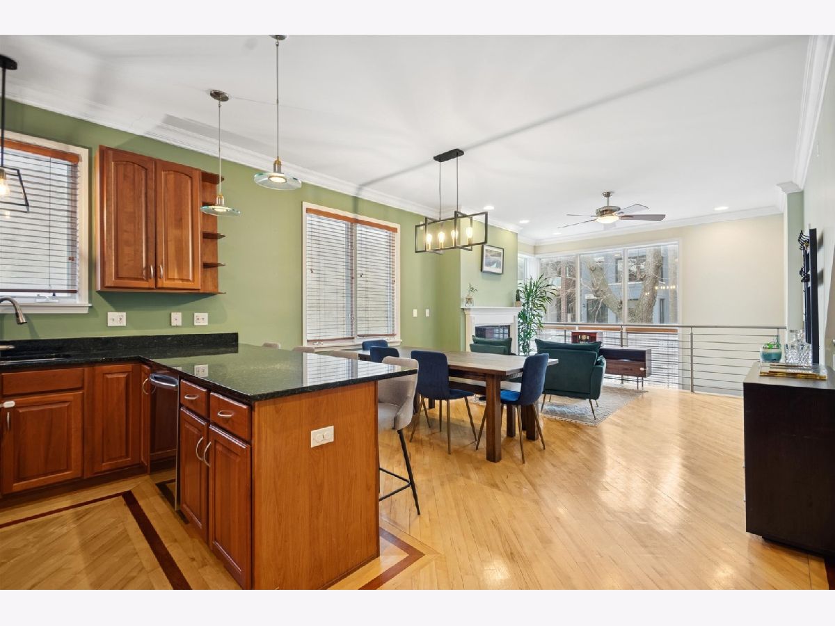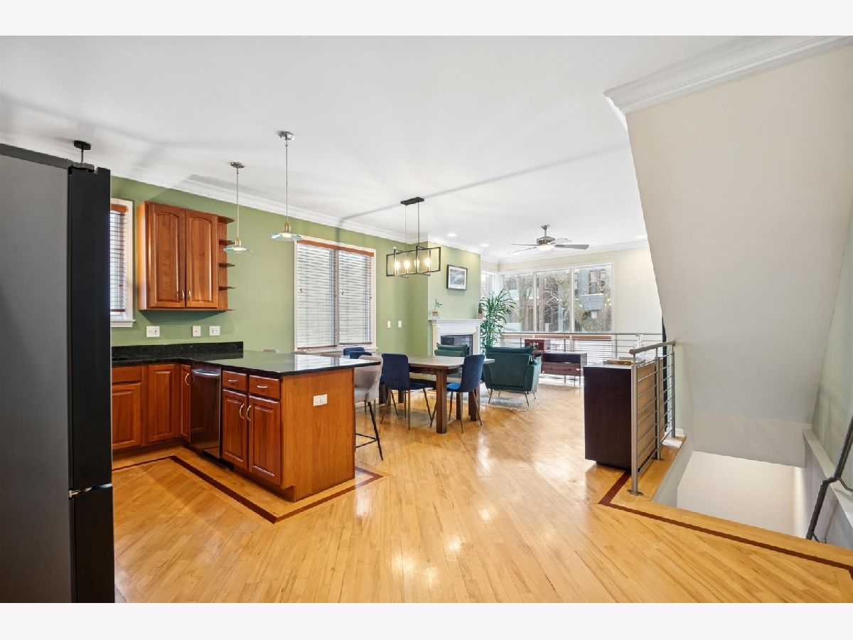 The home you have been waiting for! Beautiful 3 bed / 3 bath duplex down. This expansive, light-filled home welcomes you with a dramatic two-story wall of windows that floods the main level with natural light. The living and dining area features a cozy fireplace that flows seamlessly into the large, open kitchen with peninsula seating. The generously sized primary suite offers a walk-in closet with Elfa closet system, bathroom with dual vanity, jet tub, shower, and direct access to a large private deck overlooking the backyard. A second bedroom and a full hall bath complete the main level. The bright and oversized lower-level family room provides exceptional flexible living space that includes a second fireplace and access to a private front patio. A third bedroom, full bath, and dedicated laundry room with side-by-side washer and dryer make this level ideal for guests, a home office, or additional recreation space. Extensive recent updates include newer mechanicals and appliances - including furnace (2022), AC (2023), washer and dryer (2023), refrigerator (2023), dishwasher (2023), new sump pump with backup battery and ejector pump (2025) - offering true move-in-ready peace of mind. One garage parking space and additional storage closet included. All of this in an unbeatable location that is walking distance to multiple Blue Line stops, with easy access to Wicker Park, Bucktown, neighborhood parks, top-rated dining, coffee shops, and shopping.