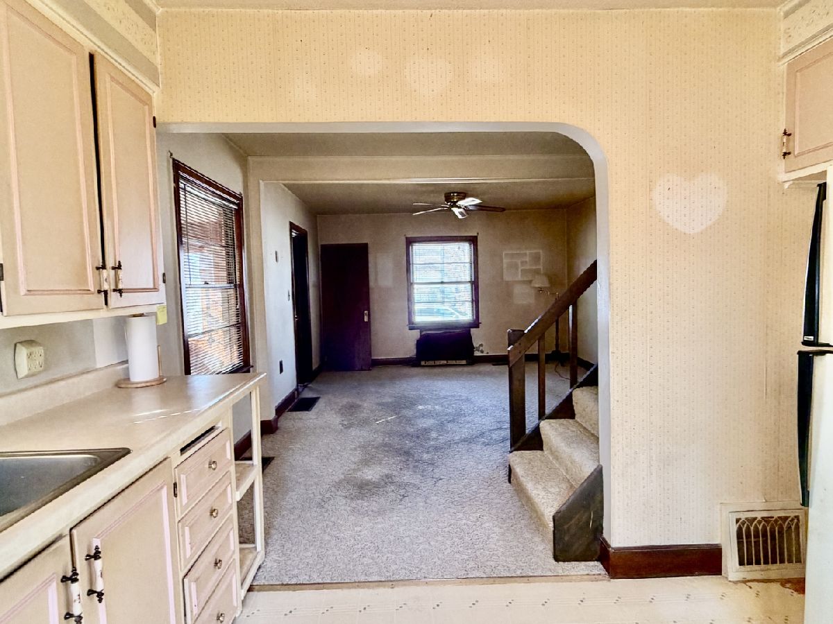 Bring your paint brush and tool! What a great house to rehab! Enclosed front porch, 6'4x15'3 - not heated. Nice sized living room open to the kitchen. Appliances can stay but not warranted. Both main bedrooms have big closets. Upper level finished room, 6'x25' could be 3rd bedroom, family room, office, or whatever you need it to be! Full basement with laundry. Furnace - 2016. Roof - 2011. Water heater - 2010. Newer 1 1/2 car garage. Fenced yard. Patio. Being sold AS-IS (electrical updates needed). Good solid house, ready for your improvements!