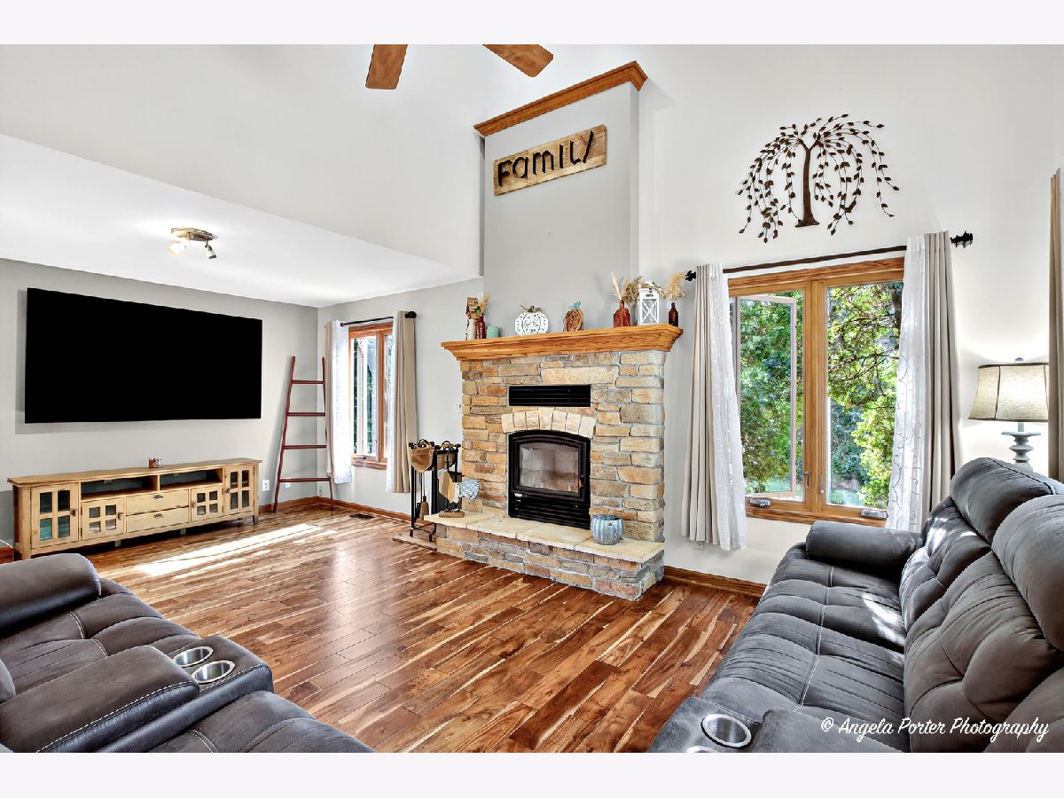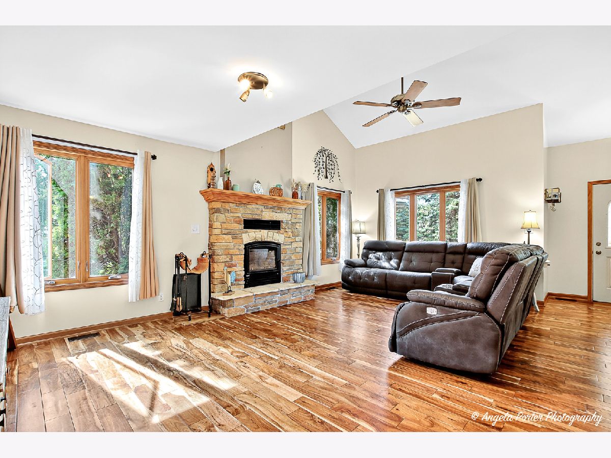 Discover this stunning home featuring vaulted ceilings, a striking stone fireplace, & gleaming hardwood floors. The light-filled kitchen boasts stone countertops, SS appliances, a double oven/range, & opens to a spacious deck & hot tub overlooking peaceful country views. Convenient main-floor laundry offers built-ins, a sink, & plenty of storage. The primary suite includes a walk-in closet & jetted tub for relaxation. The walk-out basement expands your living space with high ceilings, barn-wood accents, & abundant storage. Additional highlights include a water softener, reverse osmosis system, and whole-house humidifier. The oversized 2.5-car attached garage & heated 4-car shop with 10' doors provide room for vehicles, tools, & toys alike. Perfect blend of comfort, craftsmanship, & charm.