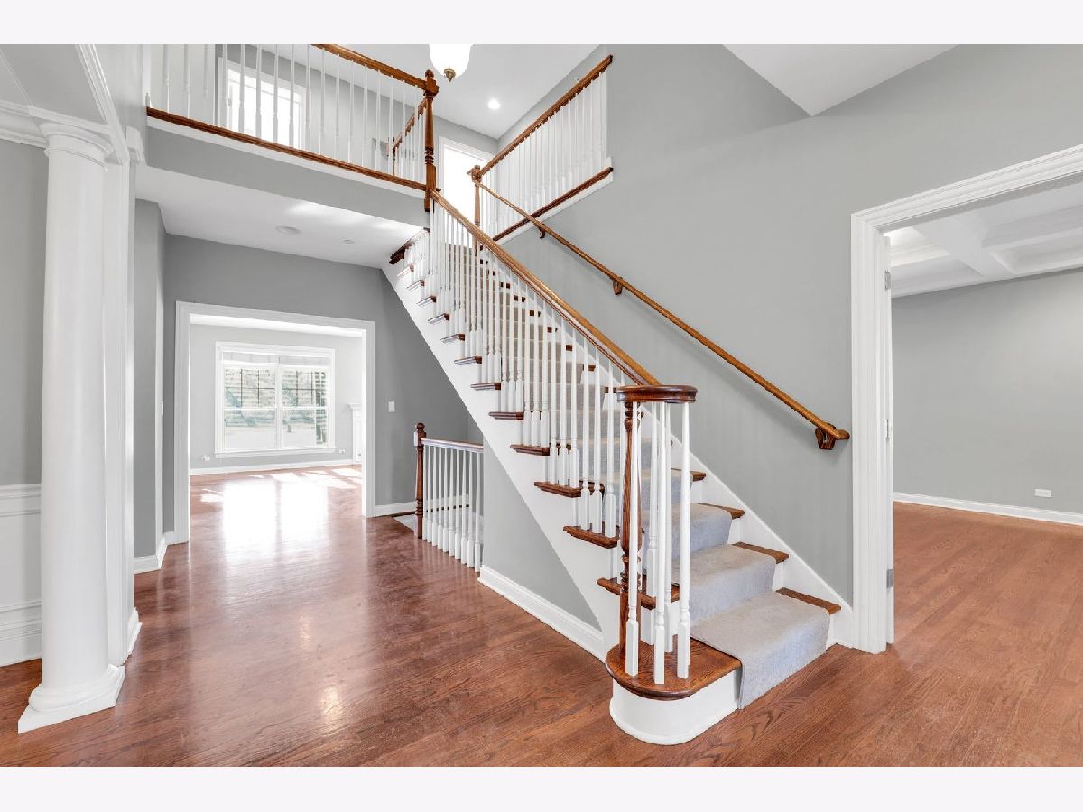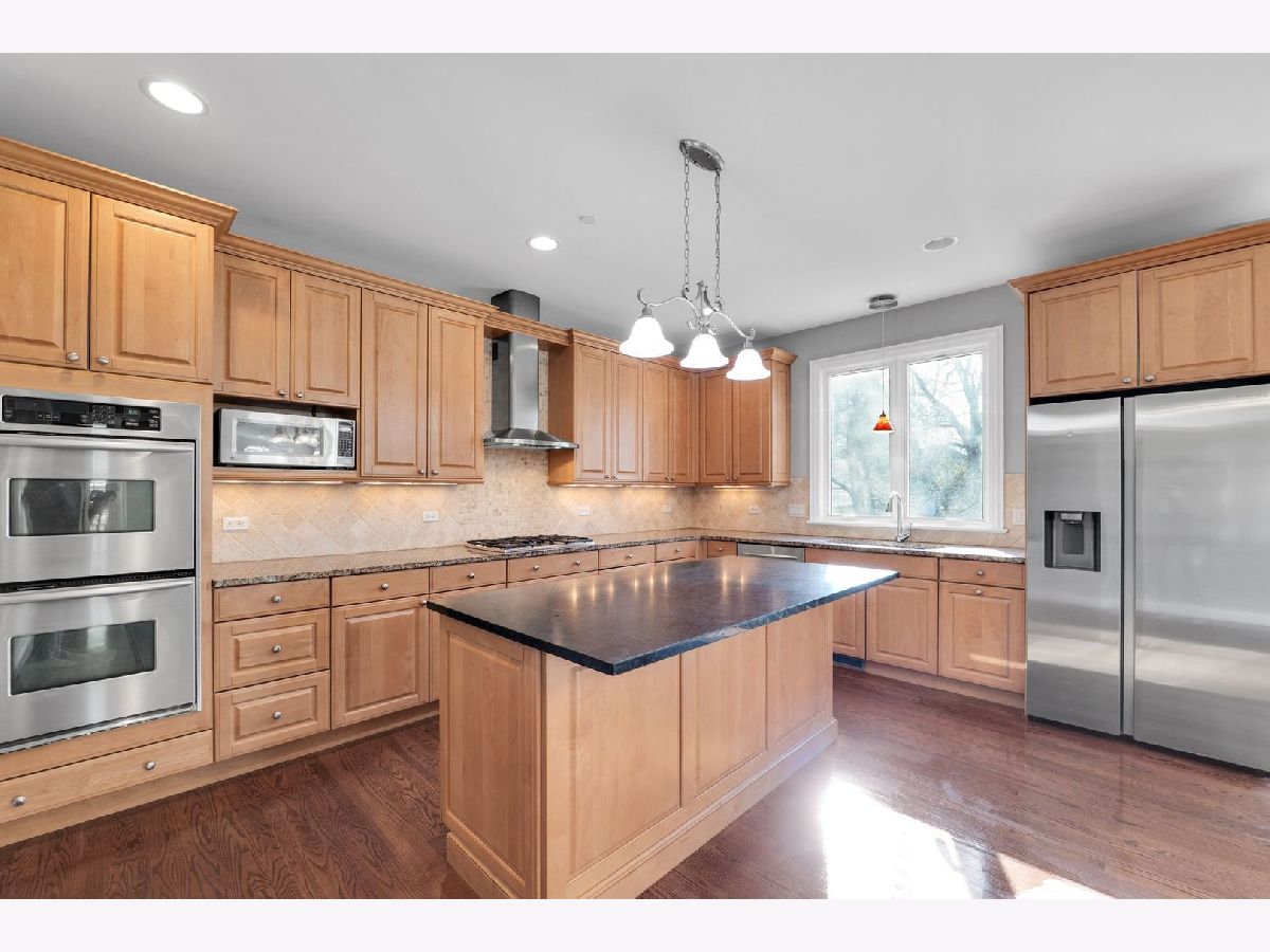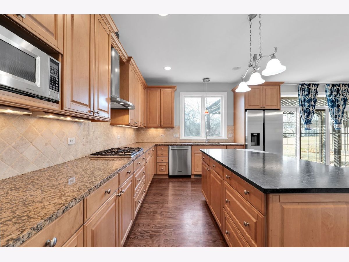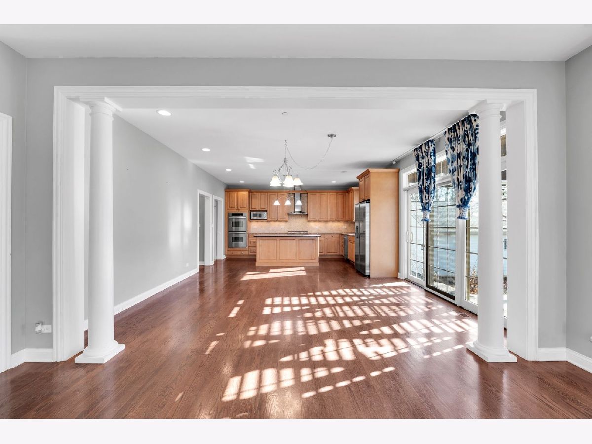 A rare opportunity just steps from the heart of downtown Libertyville-this spectacular custom-built two-story home offers the space, yard, privacy, and convenience that are nearly impossible to find so close to it all. Walk to dining, shopping, entertainment, Adler Park, Lake Minear Beach, and the Metra, with I-94 just minutes away for effortless commuting. Set on an expansive .57 acre wooded lot, this 4-bedroom, 3.5-bath home with a 3.5-car garage delivers incredible living space, both inside and out. The main level features beautiful hardwood floors throughout, an open-concept family room and spacious eat-in kitchen designed for everyday living and entertaining alike. The gourmet kitchen is equipped with granite countertops, travertine backsplash, double ovens, high-end stainless steel appliances, and 42" custom maple cabinetry. The formal dining room with butler's pantry sits just off the kitchen, while the front-facing study-highlighted by a striking coffered ceiling-offers an ideal work-from-home option. Upstairs, all four bedrooms are thoughtfully placed, including two connected by a Jack-and-Jill bath. The expansive primary suite impresses with a tray ceiling, spa-like bath featuring double sinks, jetted tub, oversized shower, and a massive walk-in closet with custom cabinetry. The second-floor bonus room is approximately 500 sf of extra space that makes for a great playroom, workout room, or guest room that feels more like their own apartment. Additional highlights include second-floor laundry, custom wood pergola on the patio, outdoor shed, durable Hardie Board exterior siding, nearly 2,000sf of wide-open unfinished basement space with bathroom plumbing rough-in, and access to highly sought after Libertyville schools. Opportunities this close to downtown with this much land and square footage are incredibly rare. Don't miss your chance to live one of Libertyville's most desirable locations.