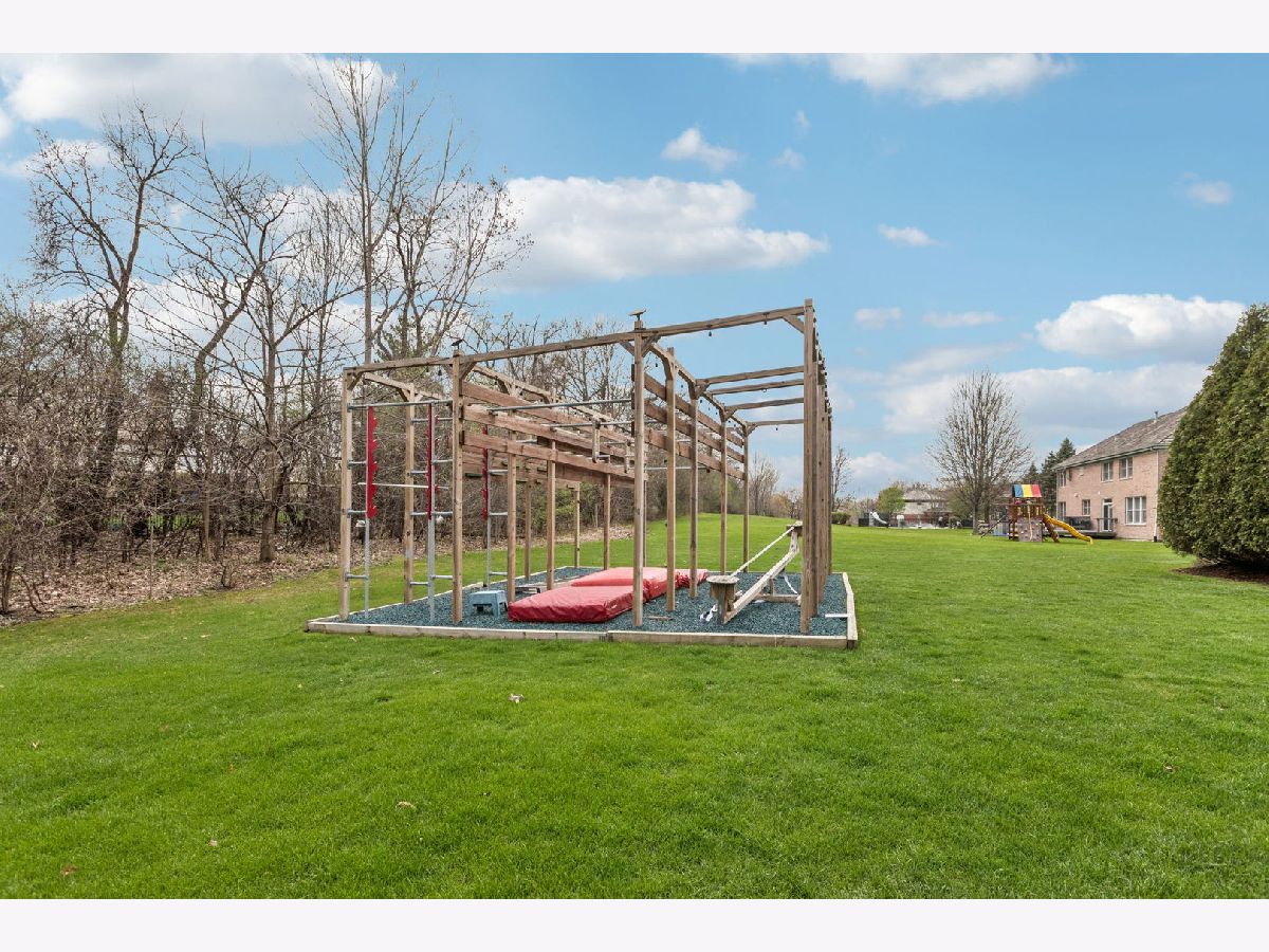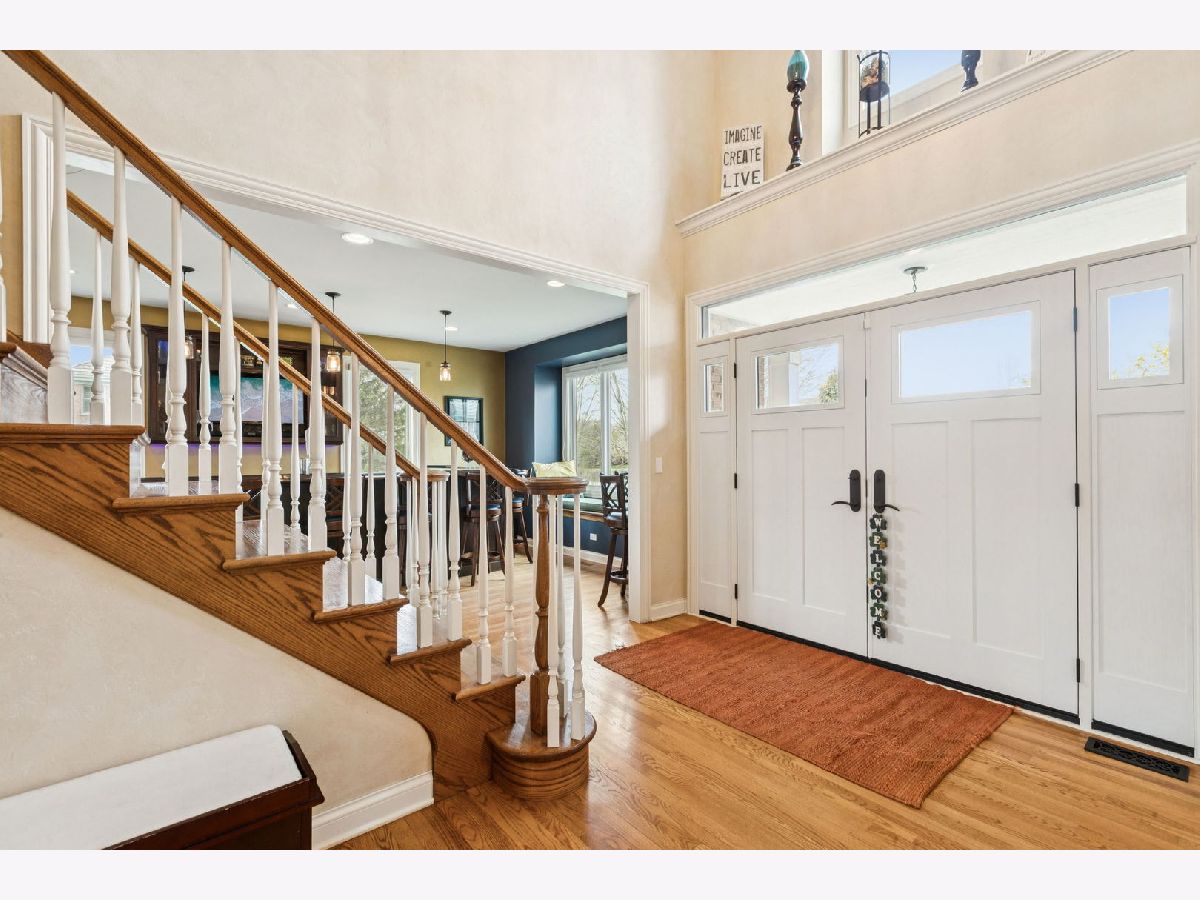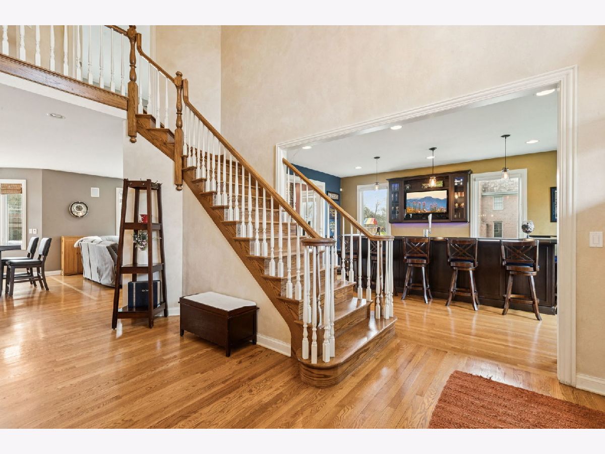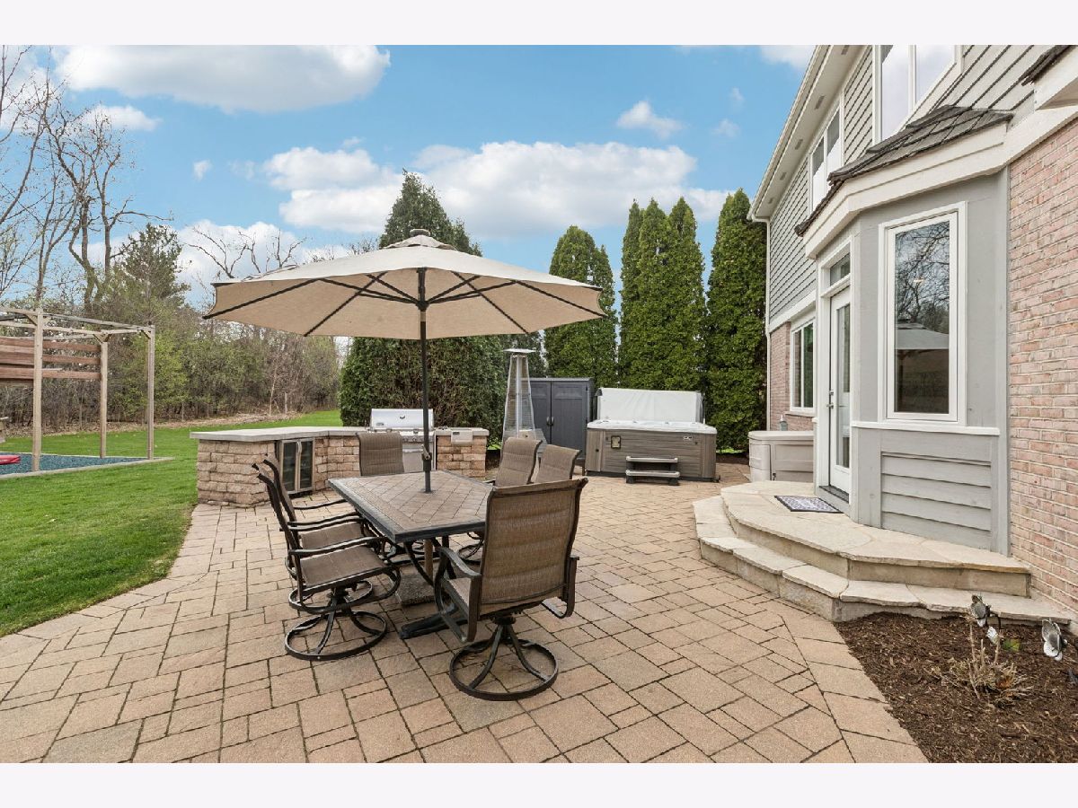 A place where there's room to spread out and settle in. This 5 BEDROOM, 4.5 BATH brick home sits on nearly an acre on a CUL-DE-SAC IN REIGATE WOODS with a comfortable, functional flow throughout. Offering a balanced layout and meaningful recent improvements, the main level features hardwood flooring throughout and updated lighting in key living areas, with a kitchen designed for efficiency including granite countertops, double ovens, cooktop, and stainless steel appliances. Major mechanical and structural updates include a water heater, washer, dryer, and ovens all replaced within the last year, along with all new windows and exterior doors completed in 2020. Dual staircases support functional flow to well-sized bedrooms with Jack and Jill bath configurations, while the primary suite includes two walk-in closets and a large bath accessed through French doors. The finished basement adds flexible living space with a full bath, gym, storage, and a BUILT-IN ROCK CLIMBING WALL. A dedicated wet bar with kegerator, beverage refrigerator, and ice machine enhances usability for gatherings. Exterior updates include full repainting, and the backyard is equipped with a paver patio, hot tub, outdoor kitchen, and additional NINJA GYM. Convenient location to I-94, Metra, Independence Grove, downtown Libertyville, and miles of scenic trails and ponds.