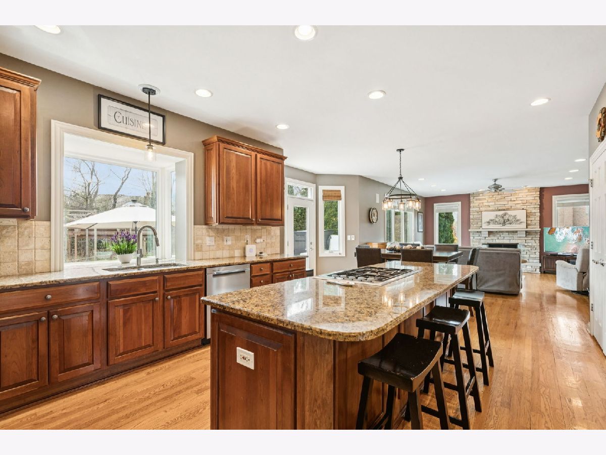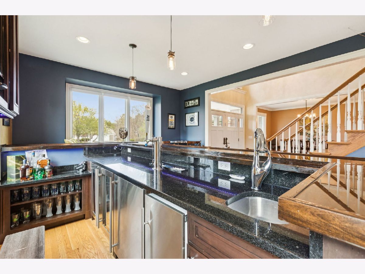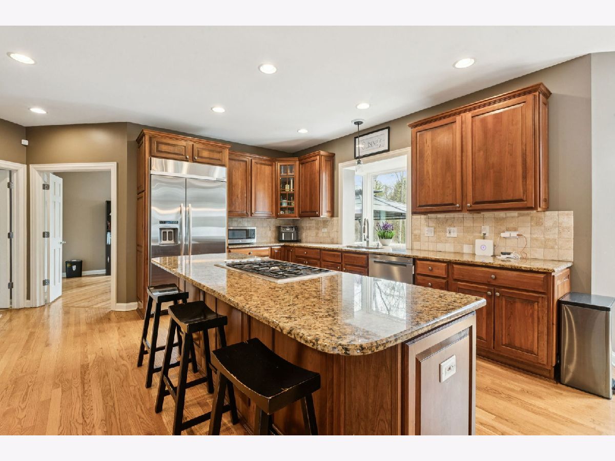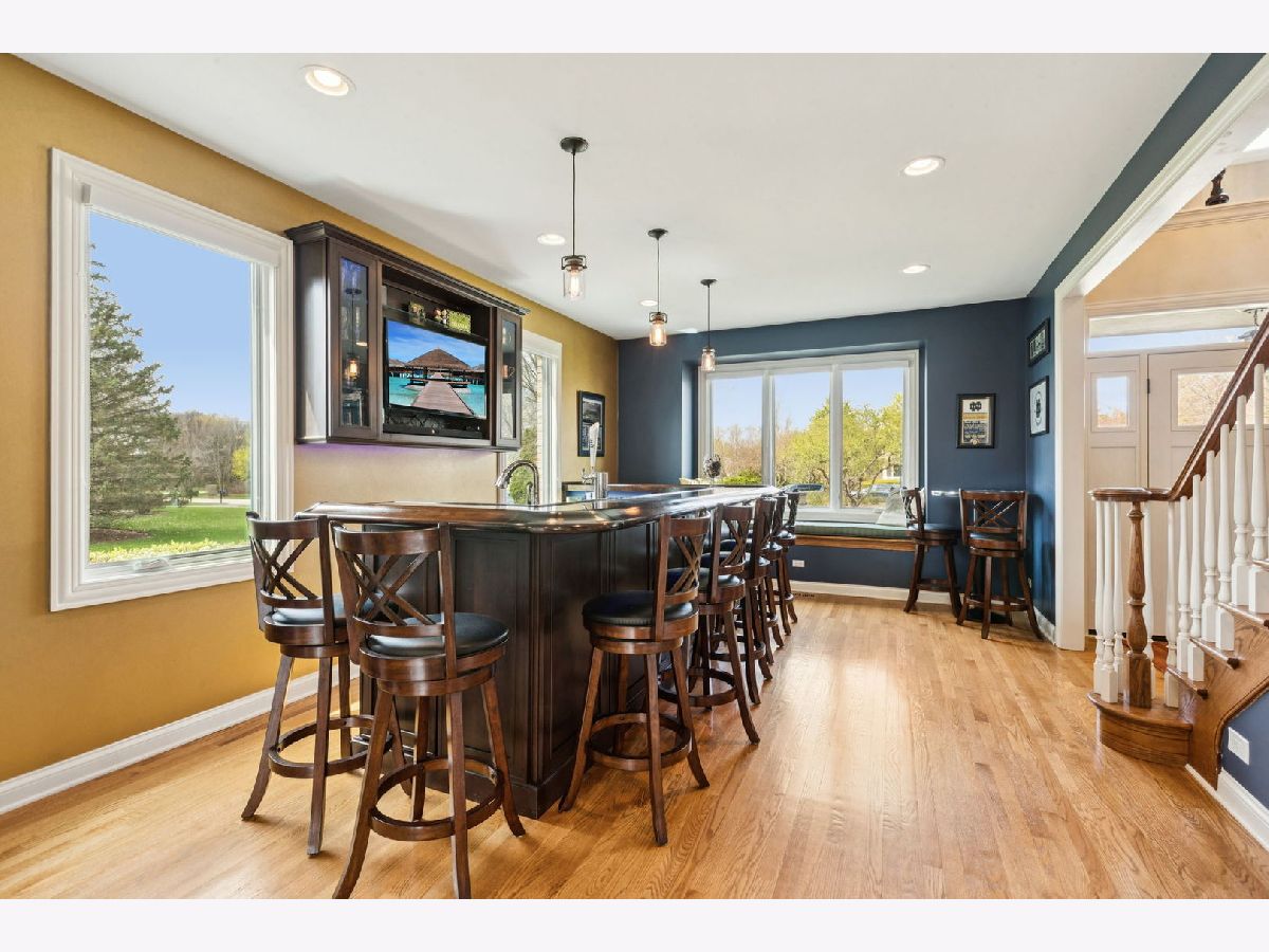 A place where there's room to spread out and settle in. This 5 BEDROOM, 4.5 BATH brick home sits on nearly an acre on a CUL-DE-SAC IN REIGATE WOODS with a comfortable, functional flow throughout. Offering a balanced layout and meaningful recent improvements, the main level features hardwood flooring throughout and updated lighting in key living areas, with a kitchen designed for efficiency including granite countertops, double ovens, cooktop, and stainless steel appliances. Major mechanical and structural updates include a water heater, washer, dryer, and ovens all replaced within the last year, along with all new windows and exterior doors completed in 2020. Dual staircases support functional flow to well-sized bedrooms with Jack and Jill bath configurations, while the primary suite includes two walk-in closets and a large bath accessed through French doors. The finished basement adds flexible living space with a full bath, gym, storage, and a BUILT-IN ROCK CLIMBING WALL. A dedicated wet bar with kegerator, beverage refrigerator, and ice machine enhances usability for gatherings. Exterior updates include full repainting, and the backyard is equipped with a paver patio, hot tub, outdoor kitchen, and additional NINJA GYM. Convenient location to I-94, Metra, Independence Grove, downtown Libertyville, and miles of scenic trails and ponds.