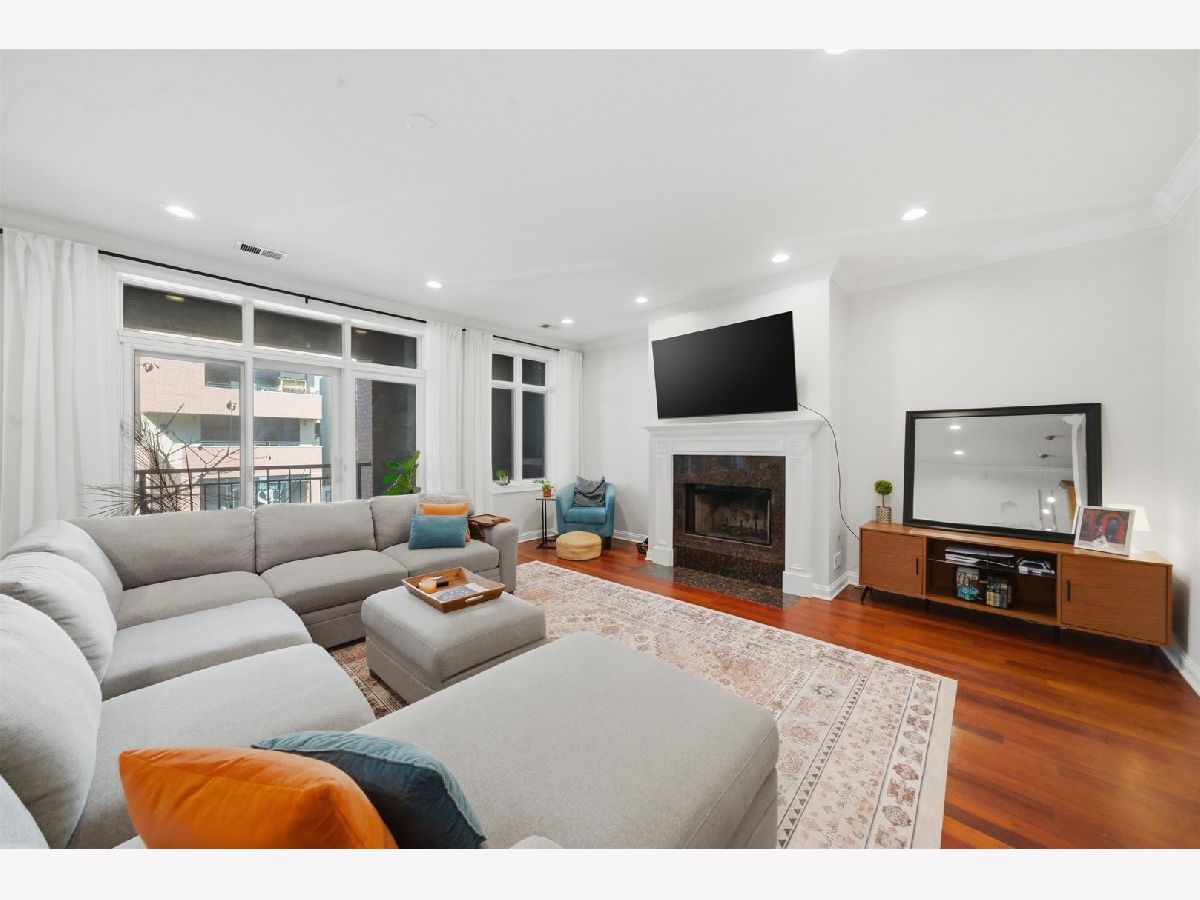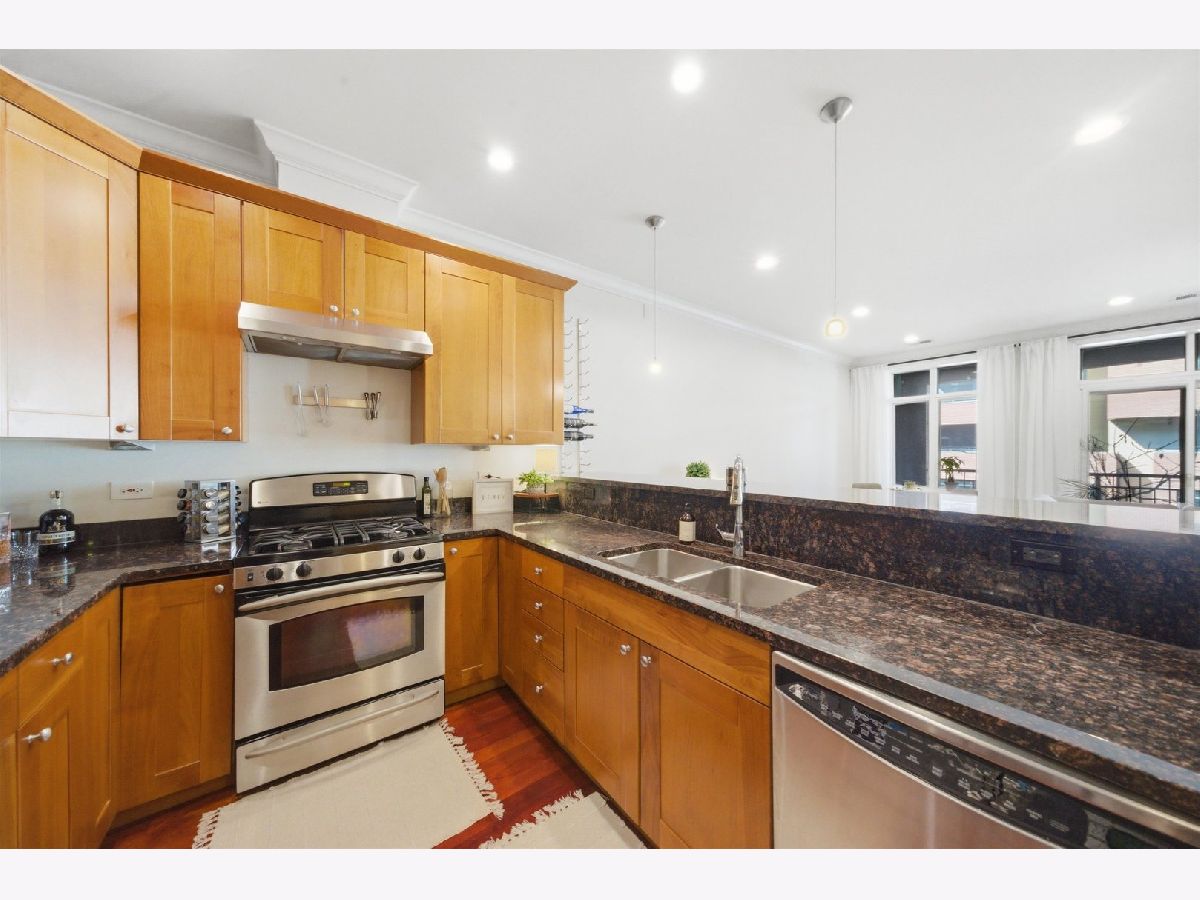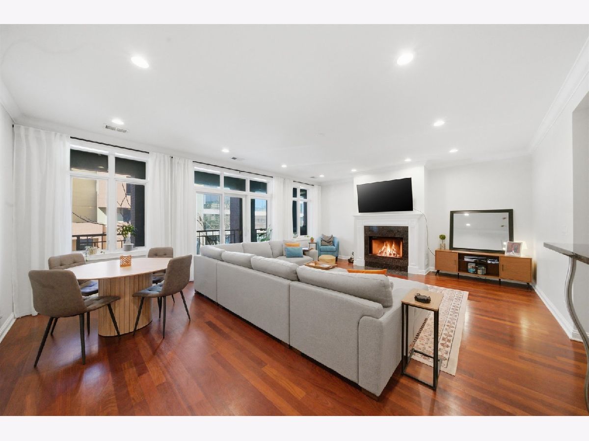 Fabulous Extra-Wide 3 Bedroom, 2 Bath in Highly Sought-After West Town/Noble Square! This rare 23 foot wide home features an open-concept floor plan with the kitchen seamlessly flowing into the living and dining areas, anchored by a gas-starting wood-burning fireplace. A large, full-width outdoor balcony off the living room, provides an ideal space for entertaining or relaxing. Gorgeous Brazilian cherrywood floors extend throughout the main living space and primary bedroom, complemented by crown molding and recessed lighting for a warm, elegant ambiance. The chef's kitchen boasts stainless steel appliances, granite countertops, 42" custom cabinets, and pendant lighting over a two-tier breakfast bar. The spacious primary suite includes a large, professionally organized walk-in closet and a spa-like Italian marble ensuite with double sinks, steam shower, bench, multiple shower heads, and body sprays. Two additional bedrooms and a second full bathroom offers a marble rain shower and Jacuzzi tub. Additional highlights include in-unit laundry, large parking space for two smaller cars, a coffered foyer with under-lighting, and extra storage space. The building is well maintained, and both pet & investor friendly. Enjoy an extremely convenient West Town/Noble Square location, just a few blocks from the Blue Line, 90/94 expressway, Chicago Avenue's shops, restaurants, and bars, and Eckhart Park. A must-see!