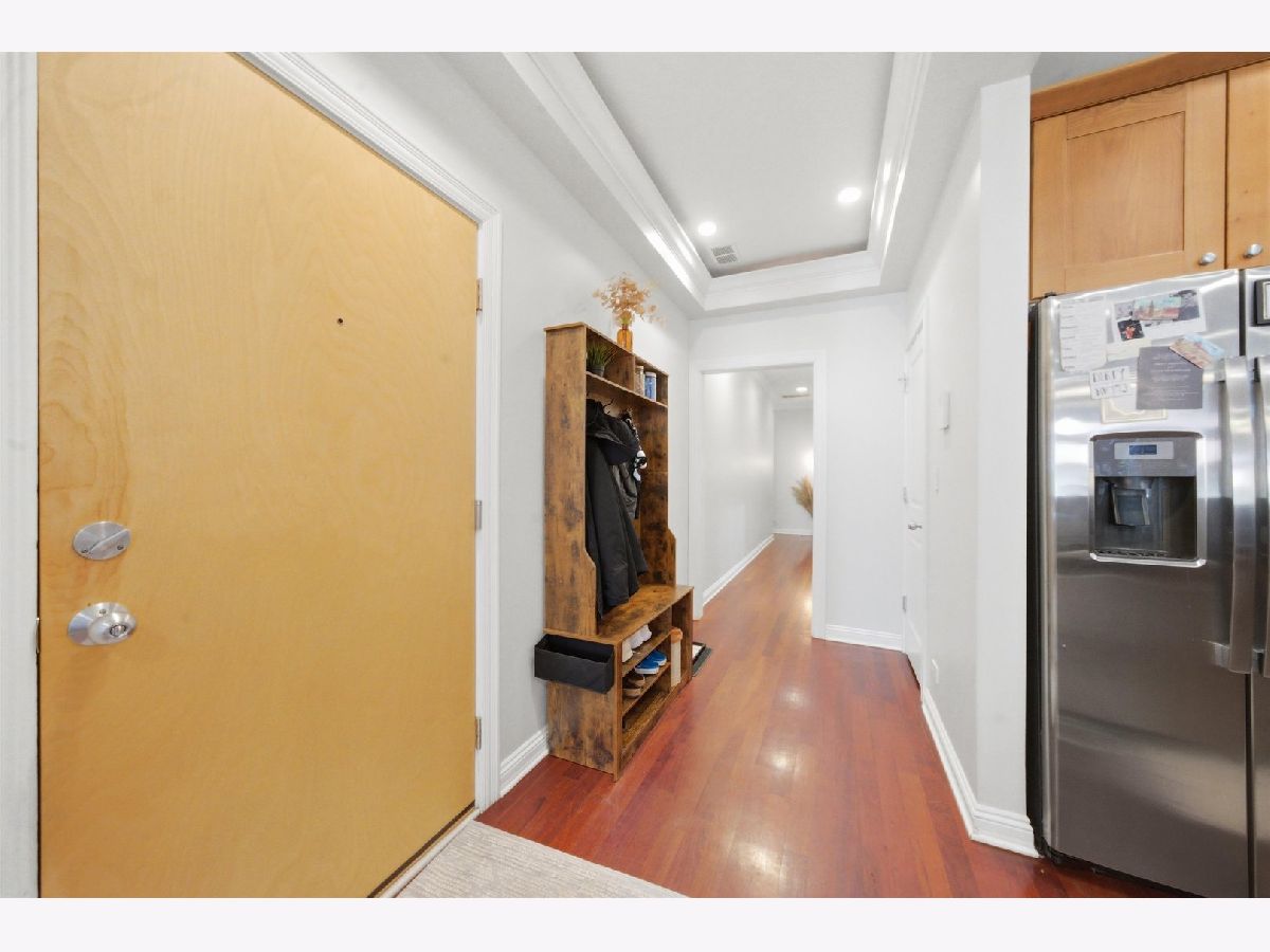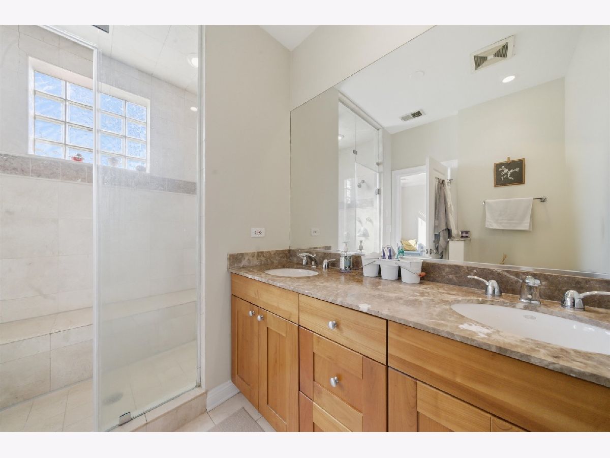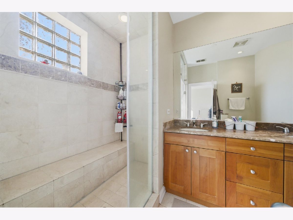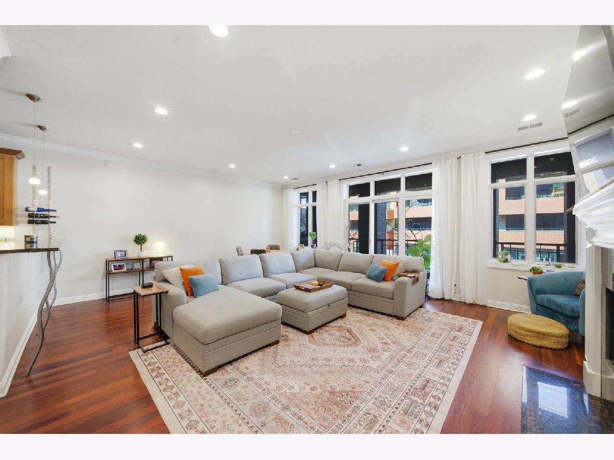 Fabulous Extra-Wide 3 Bedroom, 2 Bath in Highly Sought-After West Town/Noble Square! This rare 23 foot wide home features an open-concept floor plan with the kitchen seamlessly flowing into the living and dining areas, anchored by a gas-starting wood-burning fireplace. A large, full-width outdoor balcony off the living room, provides an ideal space for entertaining or relaxing. Gorgeous Brazilian cherrywood floors extend throughout the main living space and primary bedroom, complemented by crown molding and recessed lighting for a warm, elegant ambiance. The chef's kitchen boasts stainless steel appliances, granite countertops, 42" custom cabinets, and pendant lighting over a two-tier breakfast bar. The spacious primary suite includes a large, professionally organized walk-in closet and a spa-like Italian marble ensuite with double sinks, steam shower, bench, multiple shower heads, and body sprays. Two additional bedrooms and a second full bathroom offers a marble rain shower and Jacuzzi tub. Additional highlights include in-unit laundry, large parking space for two smaller cars, a coffered foyer with under-lighting, and extra storage space. The building is well maintained, and both pet & investor friendly. Enjoy an extremely convenient West Town/Noble Square location, just a few blocks from the Blue Line, 90/94 expressway, Chicago Avenue's shops, restaurants, and bars, and Eckhart Park. A must-see!