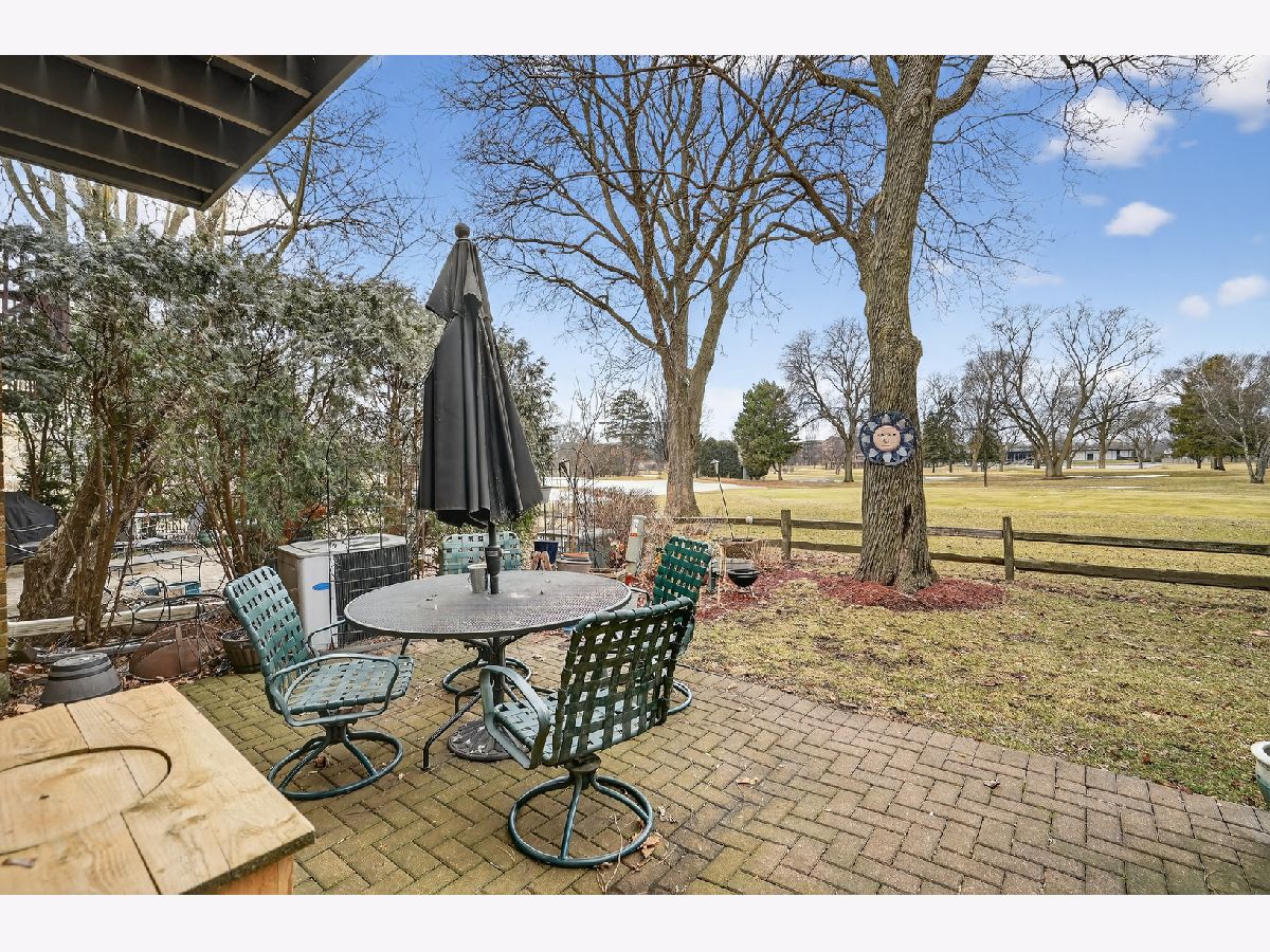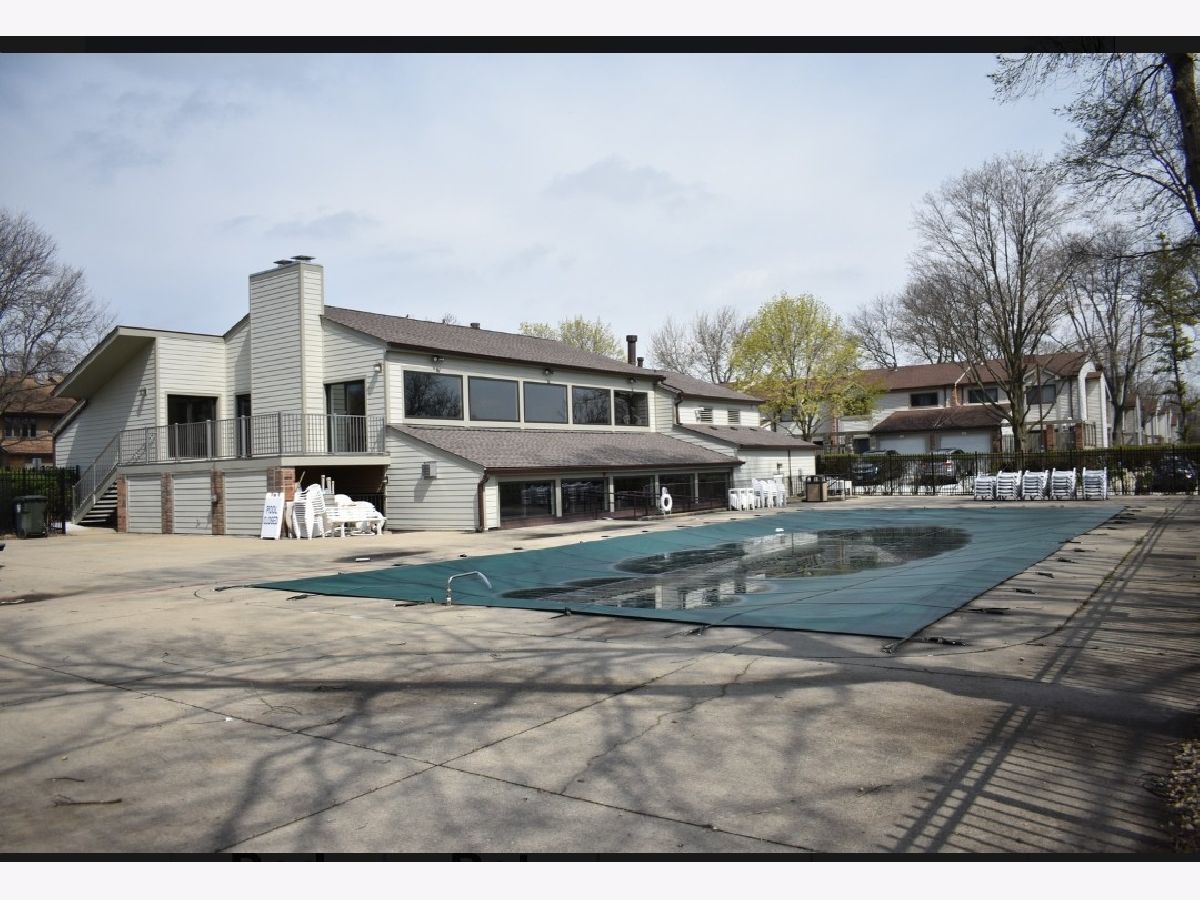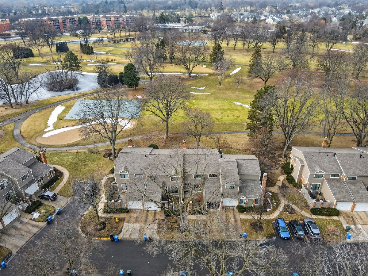 Beautiful townhome with mid century modern touches set on a gorgeous golf course location. Step into a spacious foyer with a large closet. Mid century modern wood and steel staircase highlights the entry. The Kitchen boasts custom 42 inch wood cabinets, lots of drawers, a potfiller by the stove, an extra deep stainless steel sink, under cabinet microwave and pull out racks next to the stove. All stainless steel appliances and vent hood are included. Dark granite counters. The blue green mosaic tile backsplash has a calming feeling. Under cabinet lighting, combined with in cabinet lighting in the glass front cabinets and the pendant lights above the counter seating/serving area is stunning . Plus find spot lighting in the kitchen, living room, dining room and basement. Real hardwood floors and 6 inch baseboard trim throughout the first and second floors. The kitchen dining area has sliding doors leading to the first brick patio 13x11.. The living room is highlighted by a wall of brick with a fireplace, another wall of windows and sliding doors overlooking the expansive golf course views. The back yard has a low wood fence, more privacy with mature trees, and landscape with flowering perennials plus a 17 x 24 brick patio to enjoy. 3 separate outdoor spaces to enjoy. Main floor has an upgraded powder room with unique fossil look type ceramic floor. Upstairs are 3 large bedrooms. 2nd and 3rd rooms each have two sets of double doors for 12 foot closets with wooden organizers and lighting, plus each room has a ceiling fan overhead. A hall full bath and linen closet serves those two bedrooms The Primary bedroom boasts a private 12x5 balcony overlooking the course and provides a view of the pond. There is a 10x5 walk in closet with shelves and hanging space. The primary bath has a floating wood vanity, granite counters and a stainless steel sink. The Basement is finished 27x13 and a great area to relax. 8'x 4' bar/storage area. The laundry room includes the washer & dryer and laundry sink with some store room but. do not miss the additional storage access to the 9 foot by 20 foot cement crawl space. New roof and fiber cement siding in 2024 through the association. Hot water heater replaced 2023. The lifestyle that this home provides is exceptional with a large, sparkling, indoor swimming pool, an big outdoor pool & sundeck, a Clubhouse with a party room is also available to reserve. All overlooking rolling landscaped views with mature trees. Peace, healthy activities, serenity, space, near so much, shopping, groceries, 3 mins to Metra. This is an estate the "as is" addendum is required. Lovely home located in a great school district. Fantastic Location! Location! Location!
