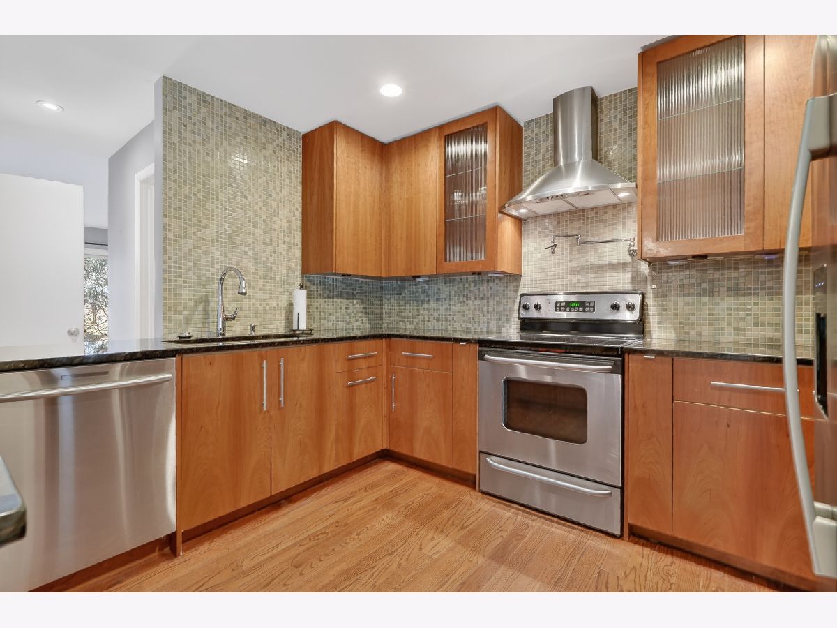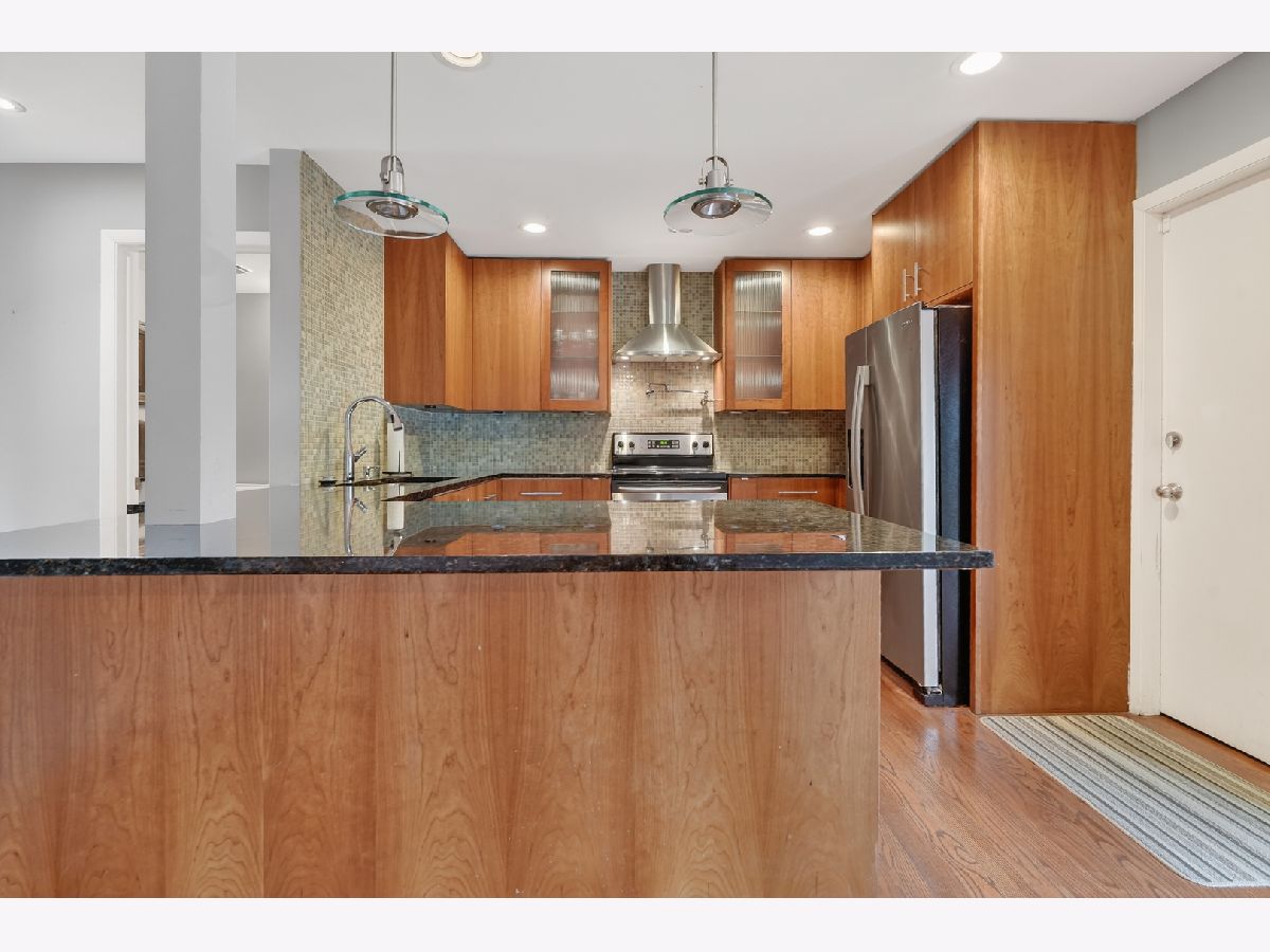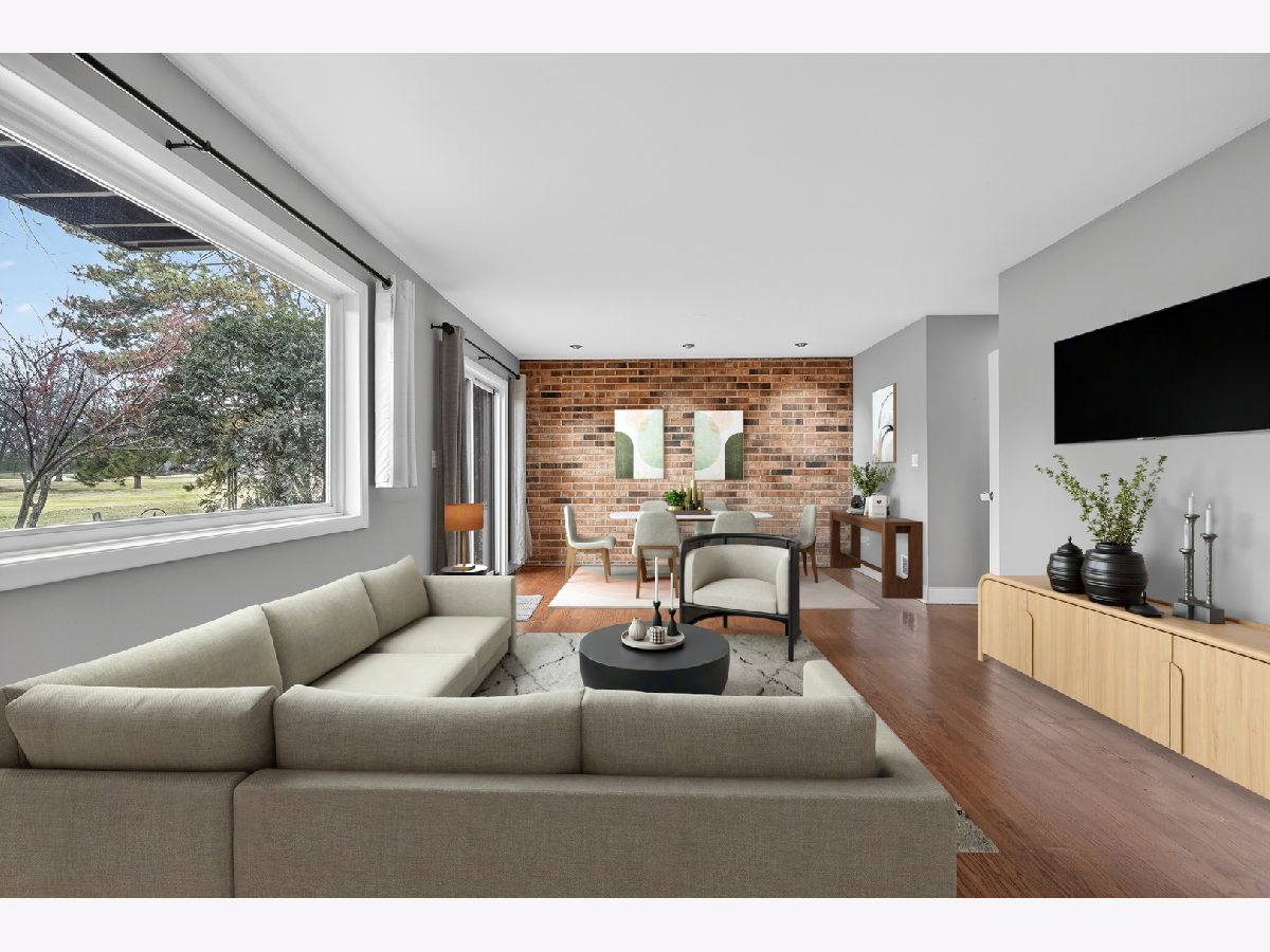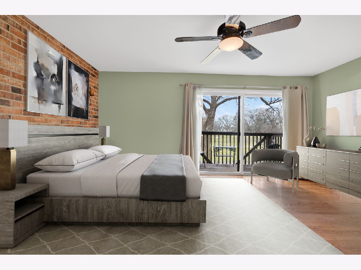 Beautiful townhome with mid century modern touches set on a gorgeous golf course location. Step into a spacious foyer with a large closet. Mid century modern wood and steel staircase highlights the entry. The Kitchen boasts custom 42 inch wood cabinets, lots of drawers, a potfiller by the stove, an extra deep stainless steel sink, under cabinet microwave and pull out racks next to the stove. All stainless steel appliances and vent hood are included. Dark granite counters. The blue green mosaic tile backsplash has a calming feeling. Under cabinet lighting, combined with in cabinet lighting in the glass front cabinets and the pendant lights above the counter seating/serving area is stunning . Plus find spot lighting in the kitchen, living room, dining room and basement. Real hardwood floors and 6 inch baseboard trim throughout the first and second floors. The kitchen dining area has sliding doors leading to the first brick patio 13x11.. The living room is highlighted by a wall of brick with a fireplace, another wall of windows and sliding doors overlooking the expansive golf course views. The back yard has a low wood fence, more privacy with mature trees, and landscape with flowering perennials plus a 17 x 24 brick patio to enjoy. 3 separate outdoor spaces to enjoy. Main floor has an upgraded powder room with unique fossil look type ceramic floor. Upstairs are 3 large bedrooms. 2nd and 3rd rooms each have two sets of double doors for 12 foot closets with wooden organizers and lighting, plus each room has a ceiling fan overhead. A hall full bath and linen closet serves those two bedrooms The Primary bedroom boasts a private 12x5 balcony overlooking the course and provides a view of the pond. There is a 10x5 walk in closet with shelves and hanging space. The primary bath has a floating wood vanity, granite counters and a stainless steel sink. The Basement is finished 27x13 and a great area to relax. 8'x 4' bar/storage area. The laundry room includes the washer & dryer and laundry sink with some store room but. do not miss the additional storage access to the 9 foot by 20 foot cement crawl space. New roof and fiber cement siding in 2024 through the association. Hot water heater replaced 2023. The lifestyle that this home provides is exceptional with a large, sparkling, indoor swimming pool, an big outdoor pool & sundeck, a Clubhouse with a party room is also available to reserve. All overlooking rolling landscaped views with mature trees. Peace, healthy activities, serenity, space, near so much, shopping, groceries, 3 mins to Metra. This is an estate the "as is" addendum is required. Lovely home located in a great school district. Fantastic Location! Location! Location!