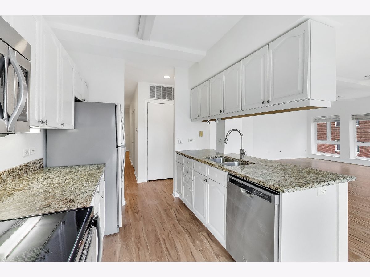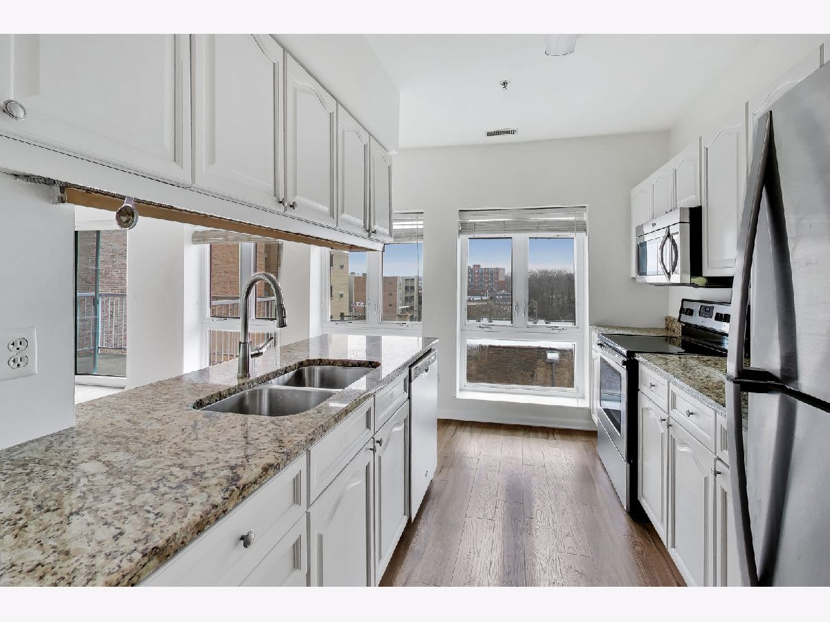Discover effortless living in this 2-bedroom, 2-bath corner unit at 1415 Sherman Avenue, in vibrant downtown Evanston. With 1,245 sq. ft. of beautifully maintained space, this home offers natural light throughout and a welcoming layout designed for comfort and style. The inviting living room features a cozy gas fireplace and opens to a private balcony, perfect for relaxing or entertaining. The modern kitchen boasts stainless steel appliances, granite countertops, and generous cabinet space. The spacious primary suite includes a private bath and large closets, while the second bedroom offers great versatility for guests, a home office, or creative pursuits. Convenient in-unit laundry, central air, and gas forced heat add to everyday ease. Additional features include heated garage parking and a large storage cage. Enjoy building amenities such as an elevator, fitness center, and an inviting common outdoor area. Pet-friendly building (with pet conditions). Exceptional location steps from shops, restaurants, and transit.